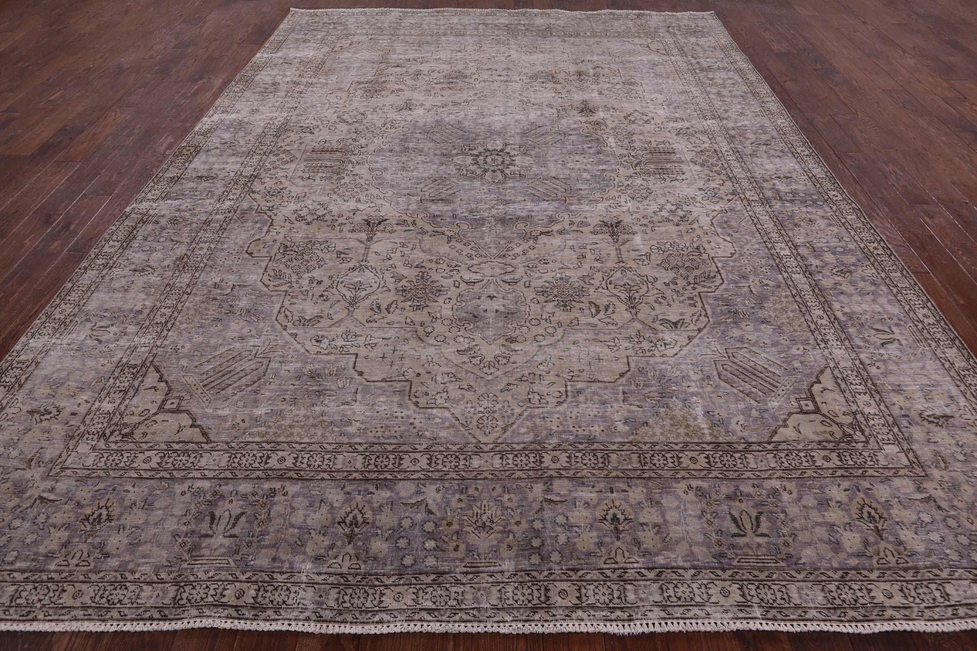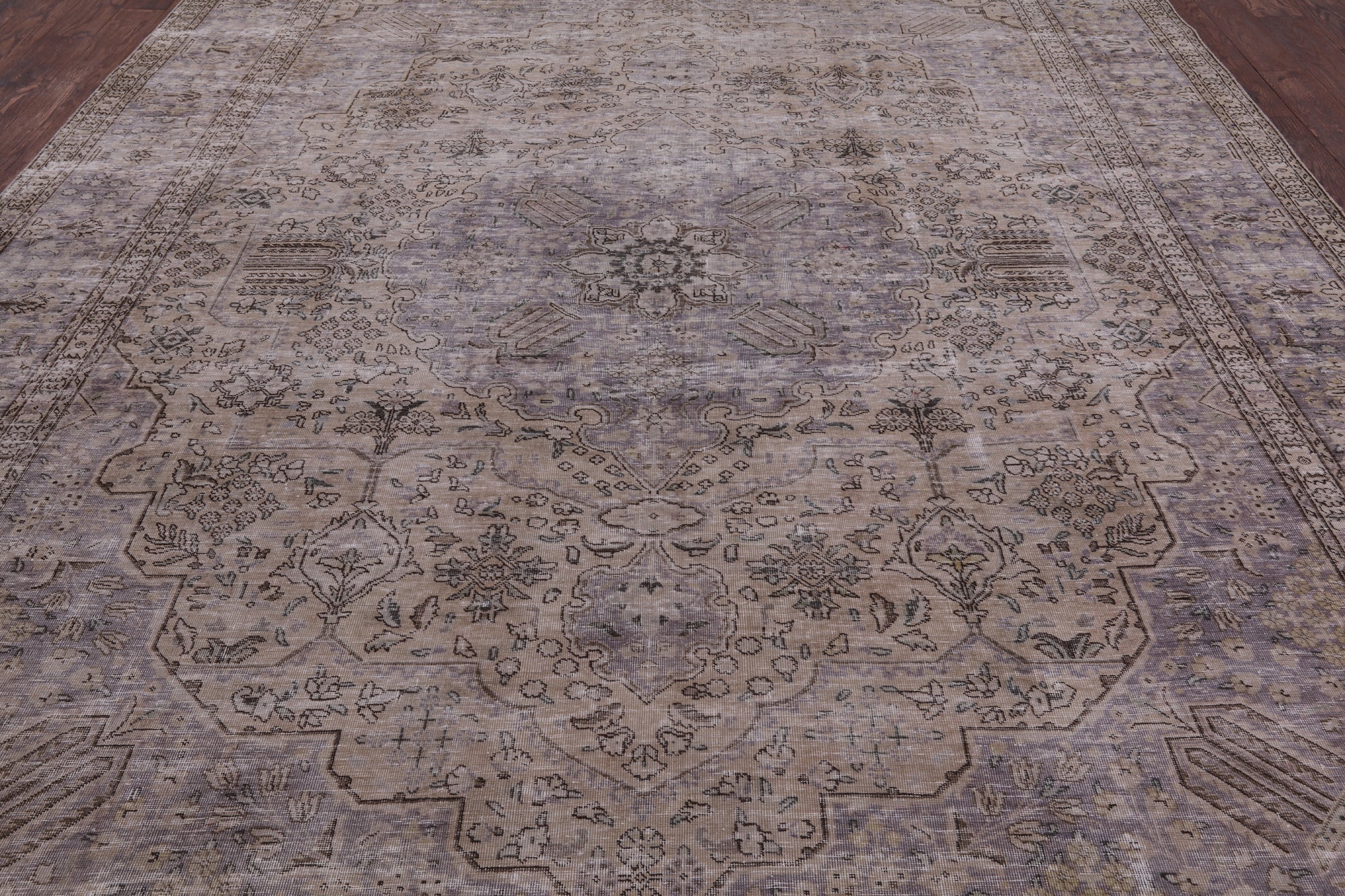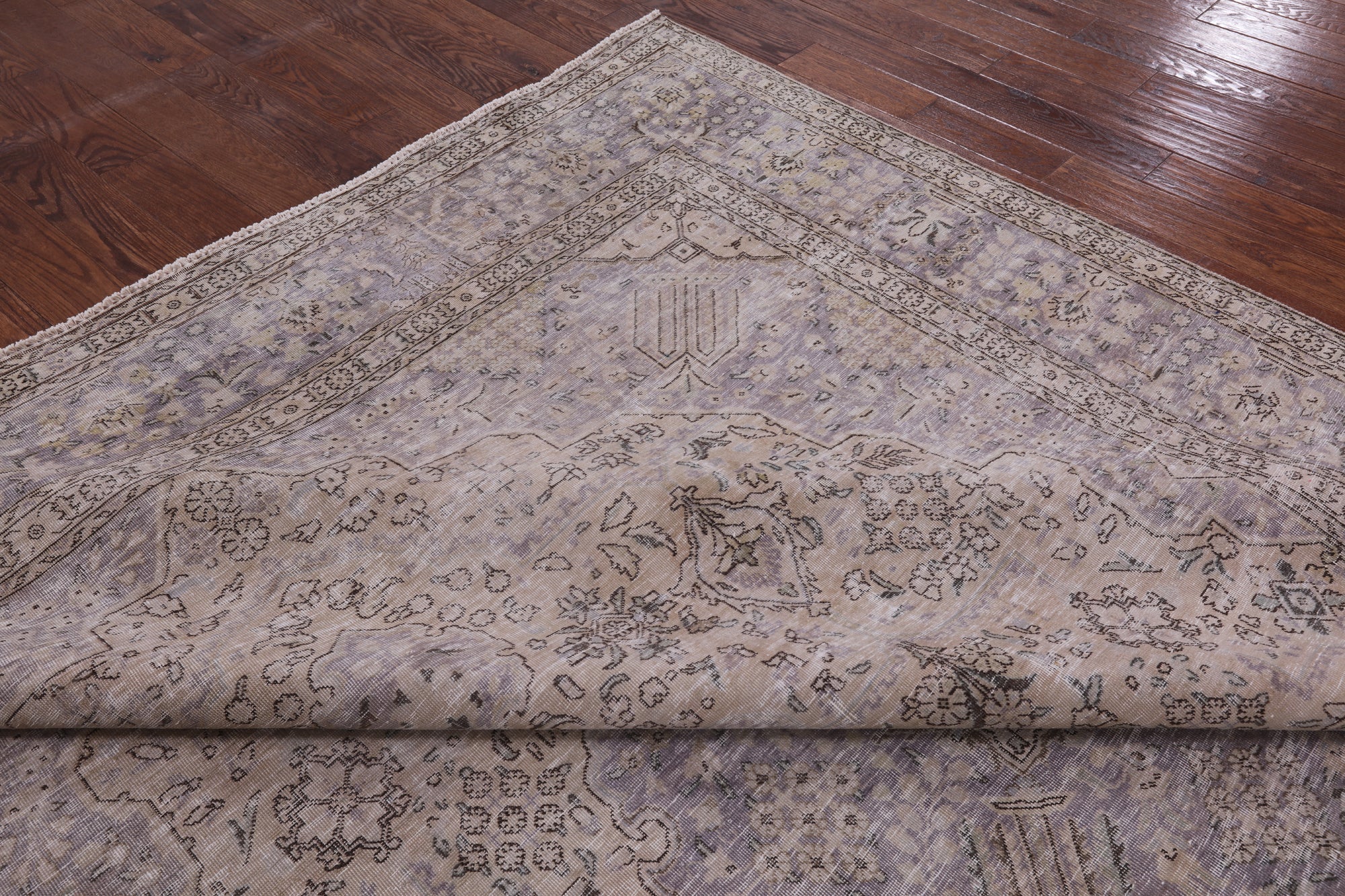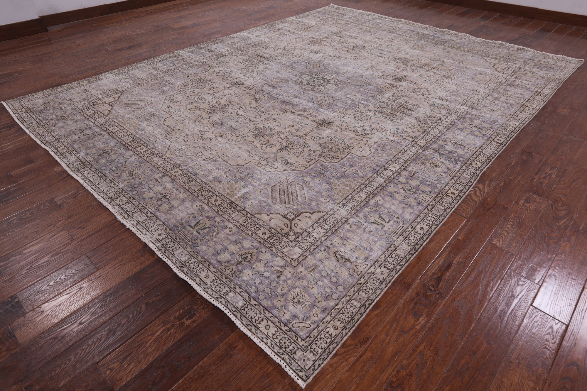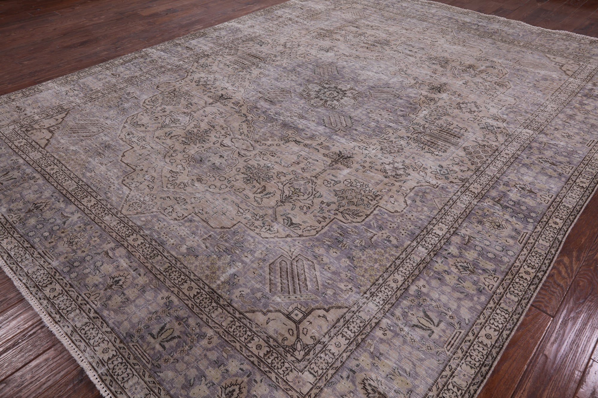 This Vintage looking rug is a Persian Rug that has been white washed. These kind of rugs demonstrate a process best described as 'The modern palette applied to classics'. It consists of an added step to the finishing process in which the rug is white washed, and sheared. The effect is quite stunning, adding a white overcast to the whole rug and blending seamlessly with the prior dyes.