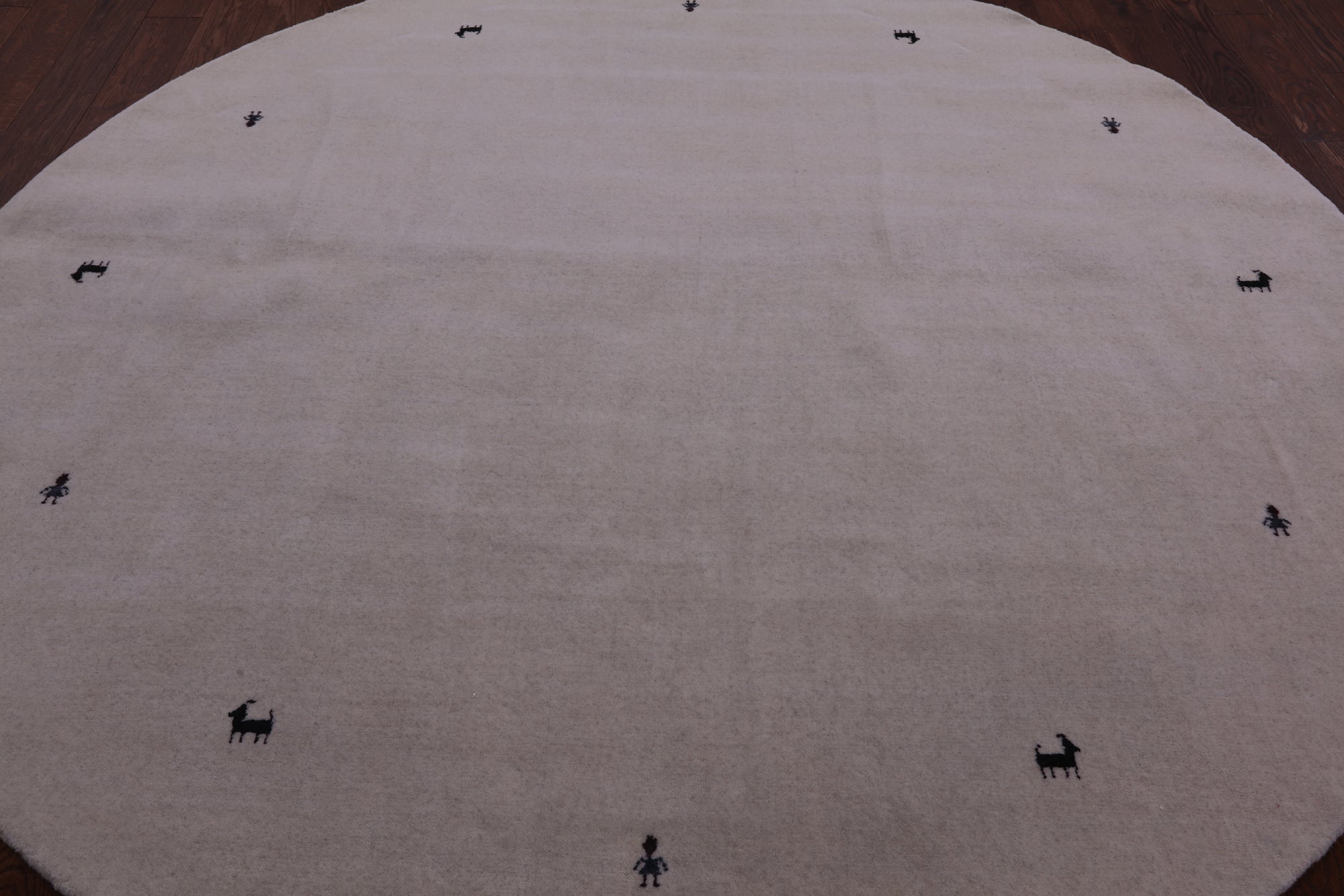 Ivory 8' Round Persian Gabbeh Handmade Wool Rug - Q15231