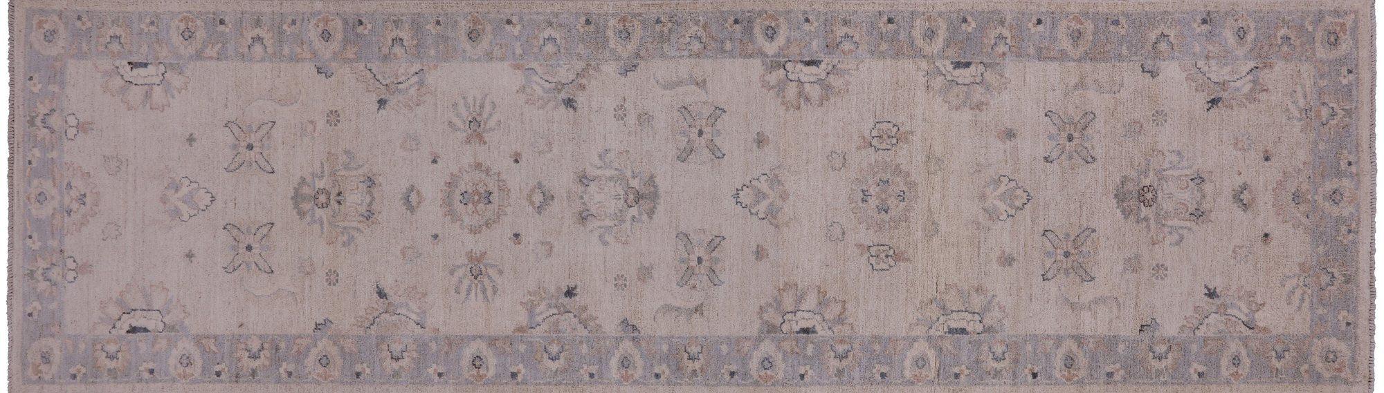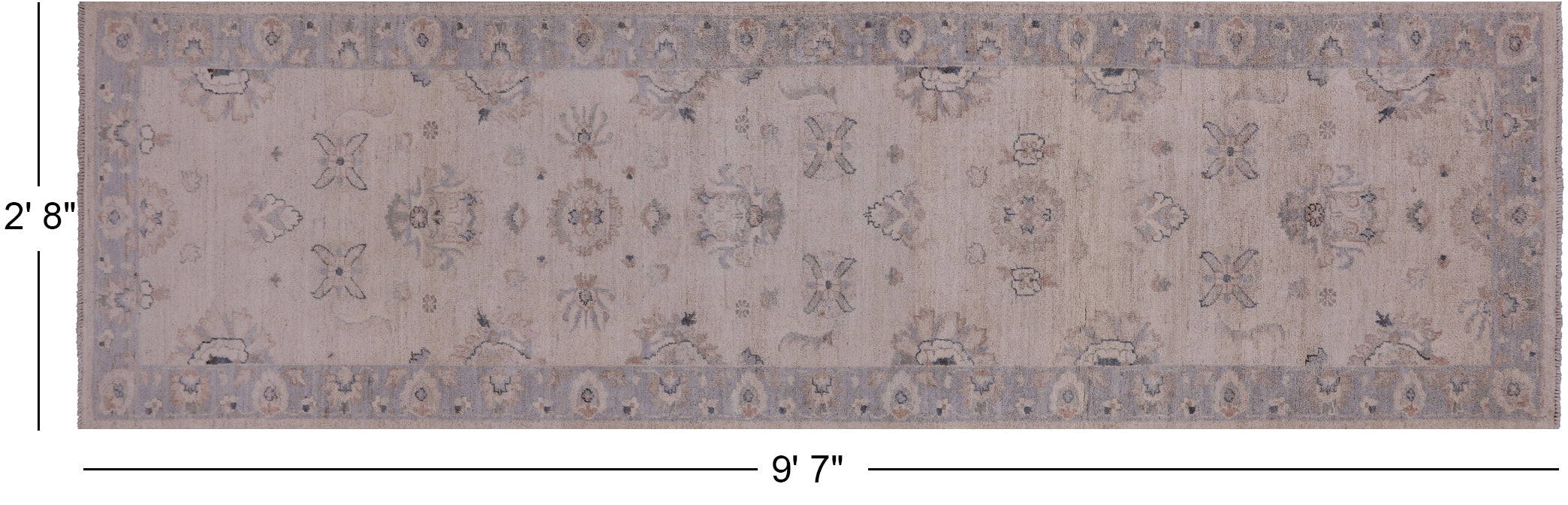 Ivory 2' 8" X 9' 7" Runner Turkish Oushak Hand Knotted Rug - P3601