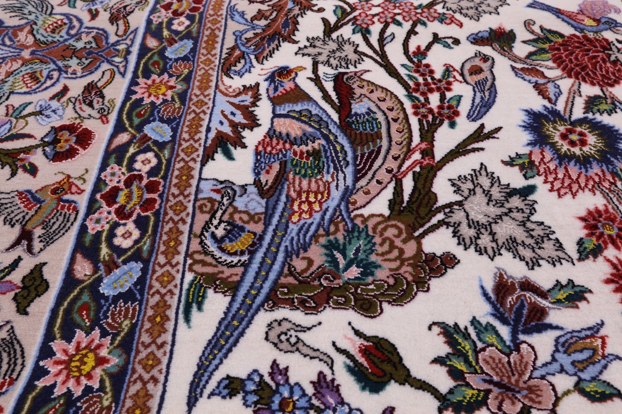 Isfahan rugs date back to the seventeenth century. Isfahan was then the capital of Persia. These rugs are known to be classic and are hand knotted with either silk or wool foundations. They use variety vegetable dye colors such as reds, blues, ivory, beige, black and much more. Isfahan rugs are one of the highest quality rugs in the world.