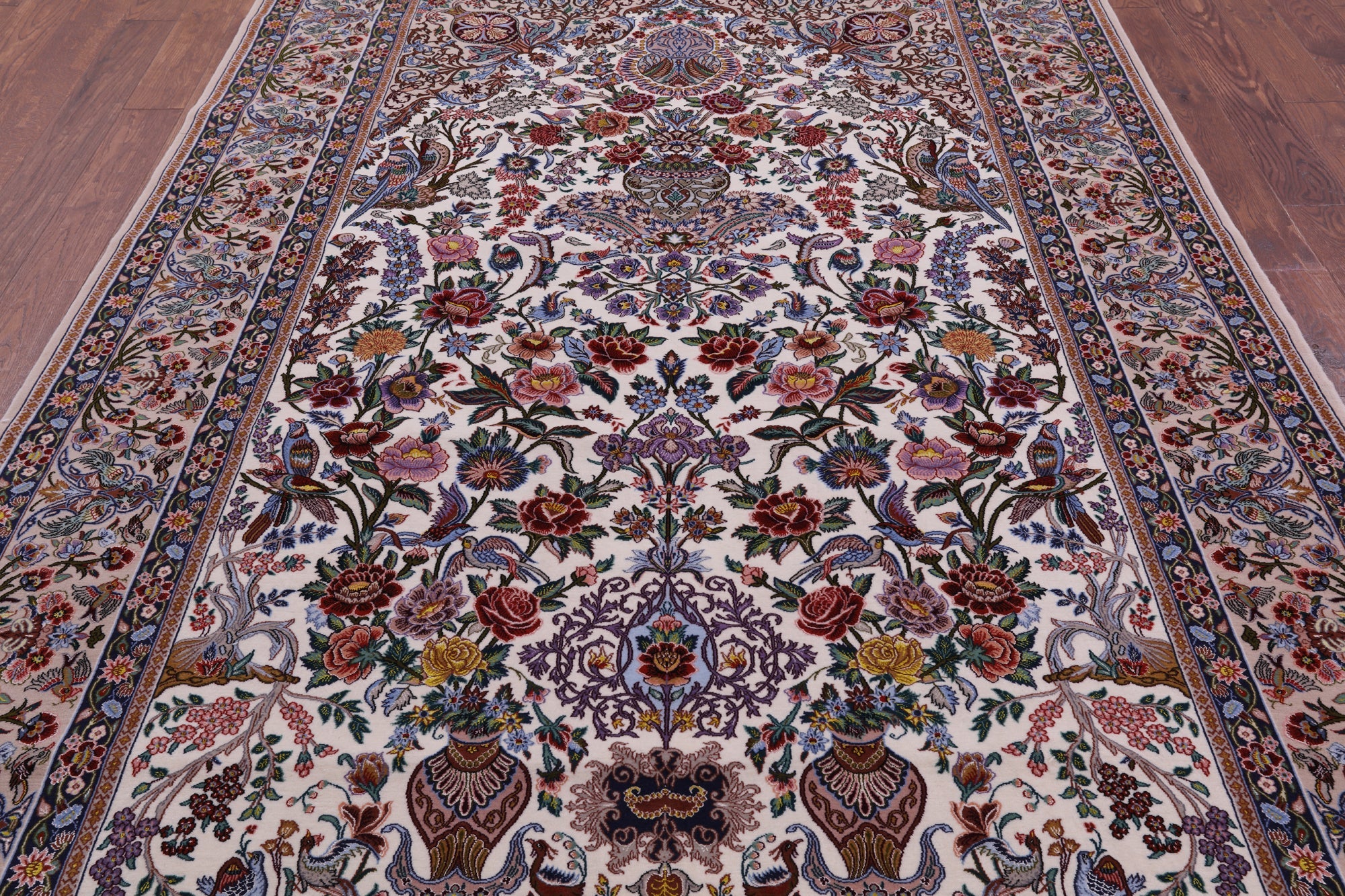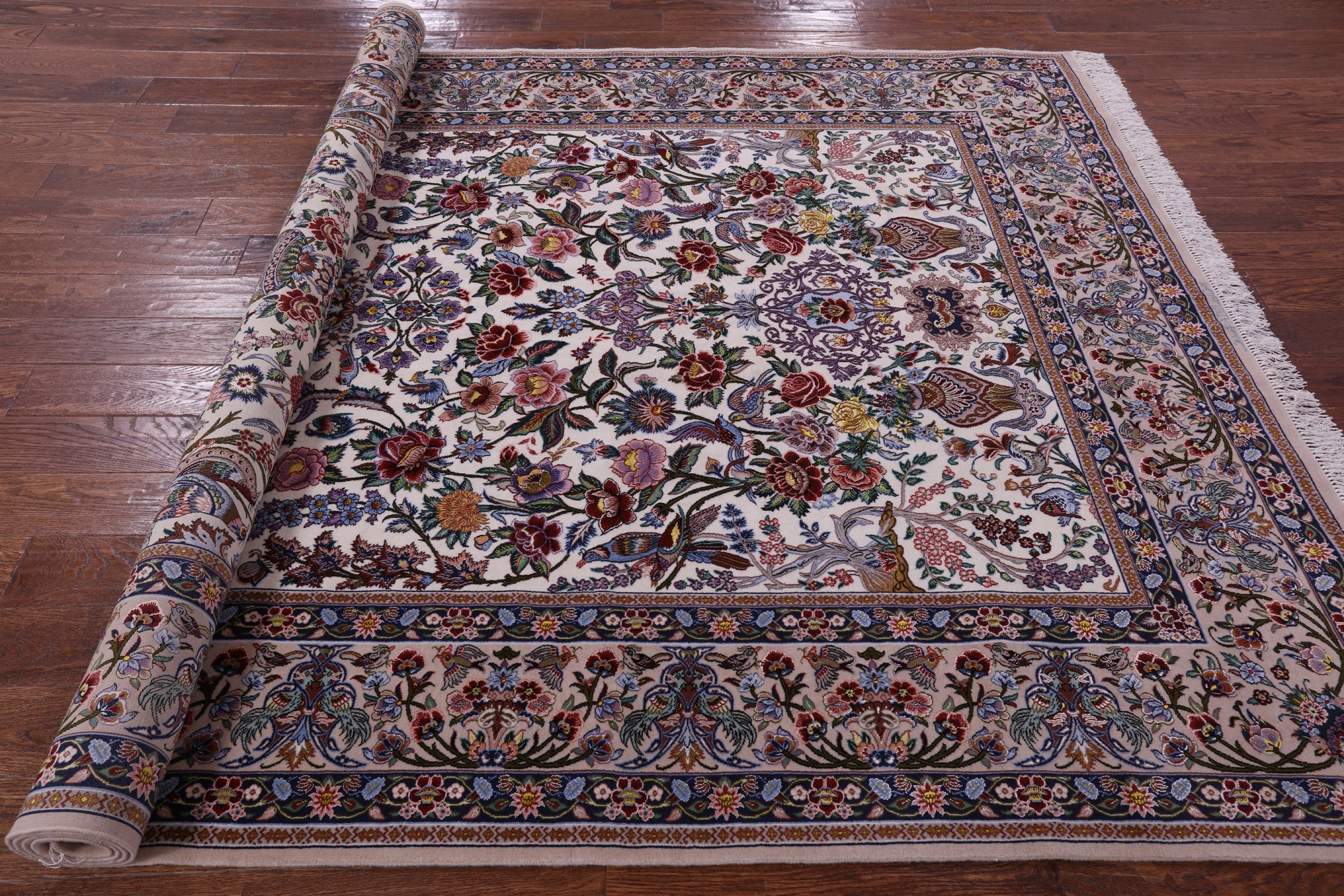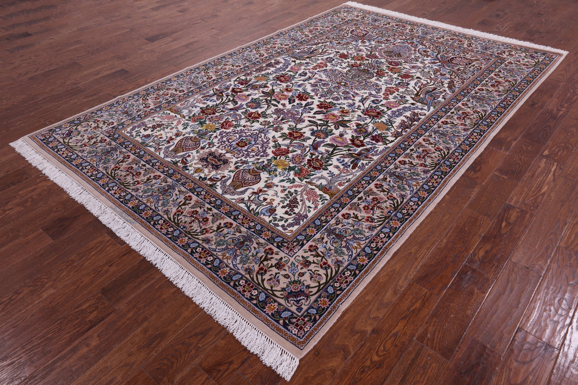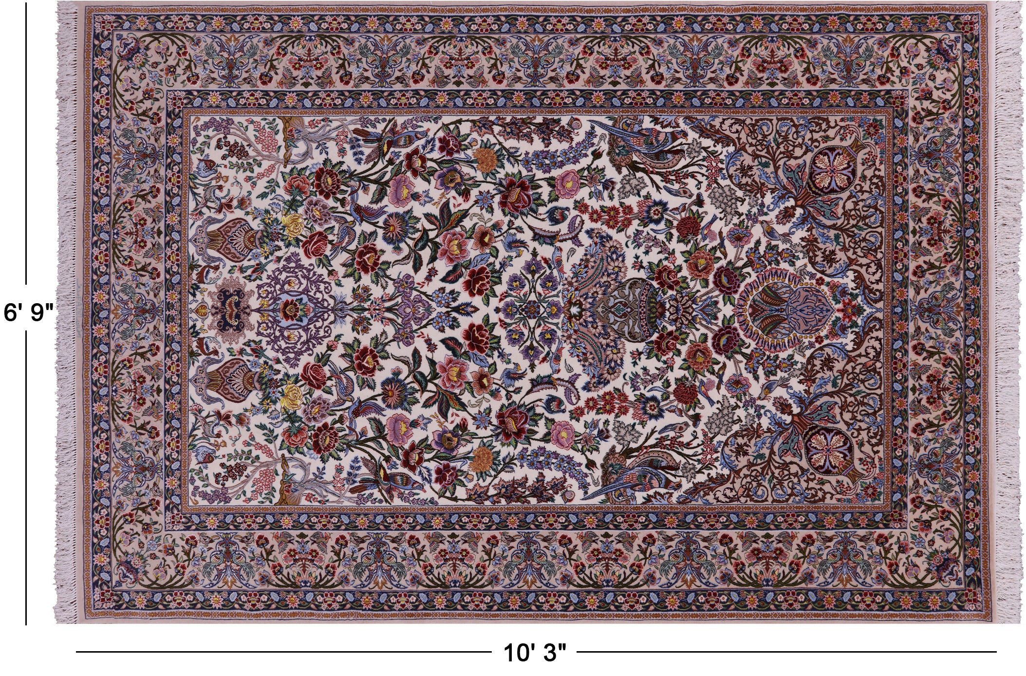 Ivory 6' 9" X 10' 3" Signed Persian Isfahan Wool & Silk Area Rug - SA2630 is backordered and will ship as soon as it is back in stock.