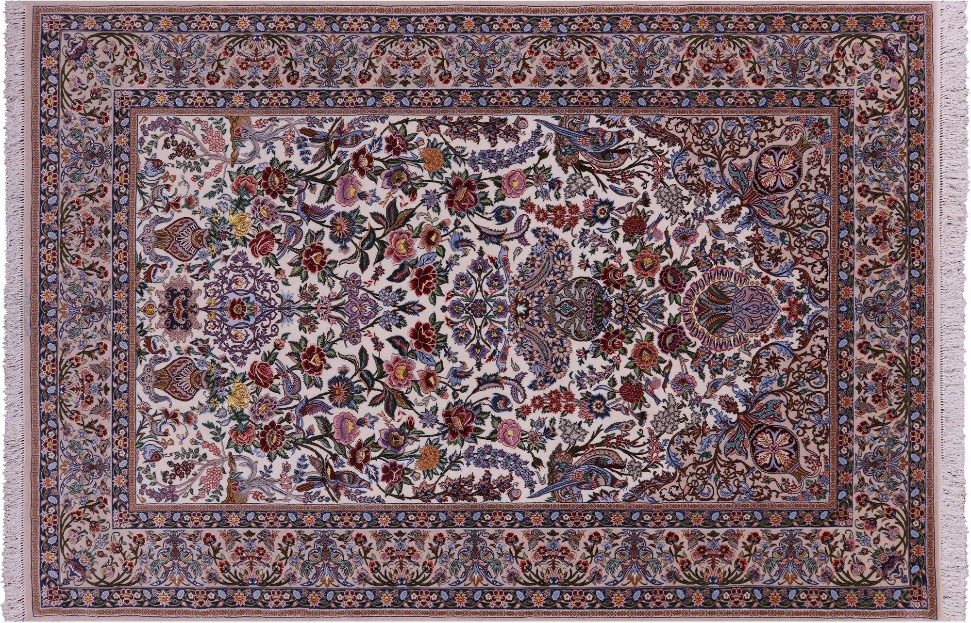 Ivory 6' 9" X 10' 3" Signed Persian Isfahan Wool & Silk Area Rug - SA2630