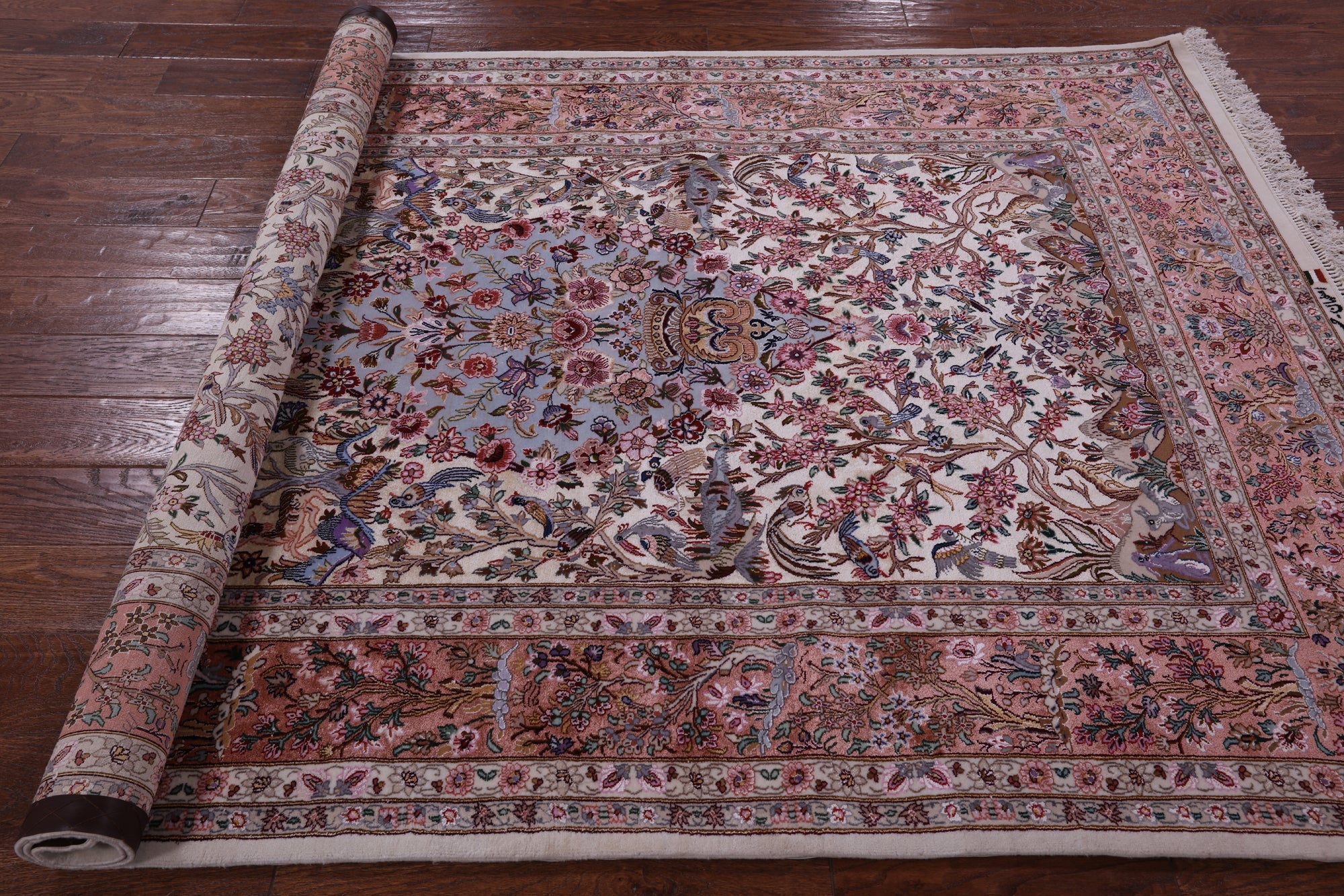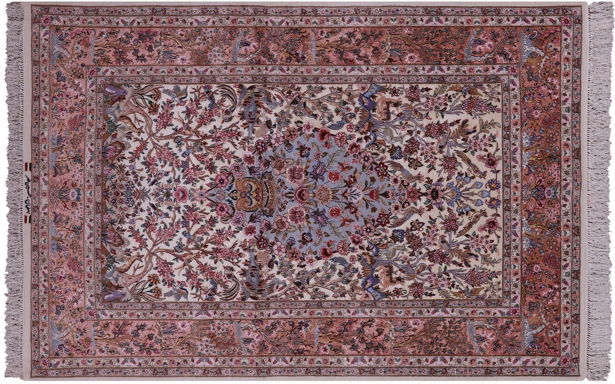 Ivory 5' 1" X 7' 7" Signed Wool & Silk Super Fine Persian Isfahan Hand Knotted Rug - SA2694 is backordered and will ship as soon as it is back in stock.