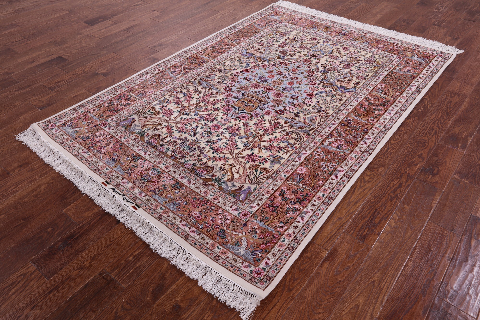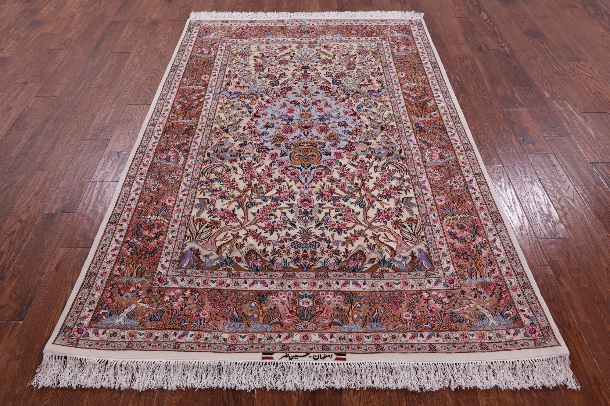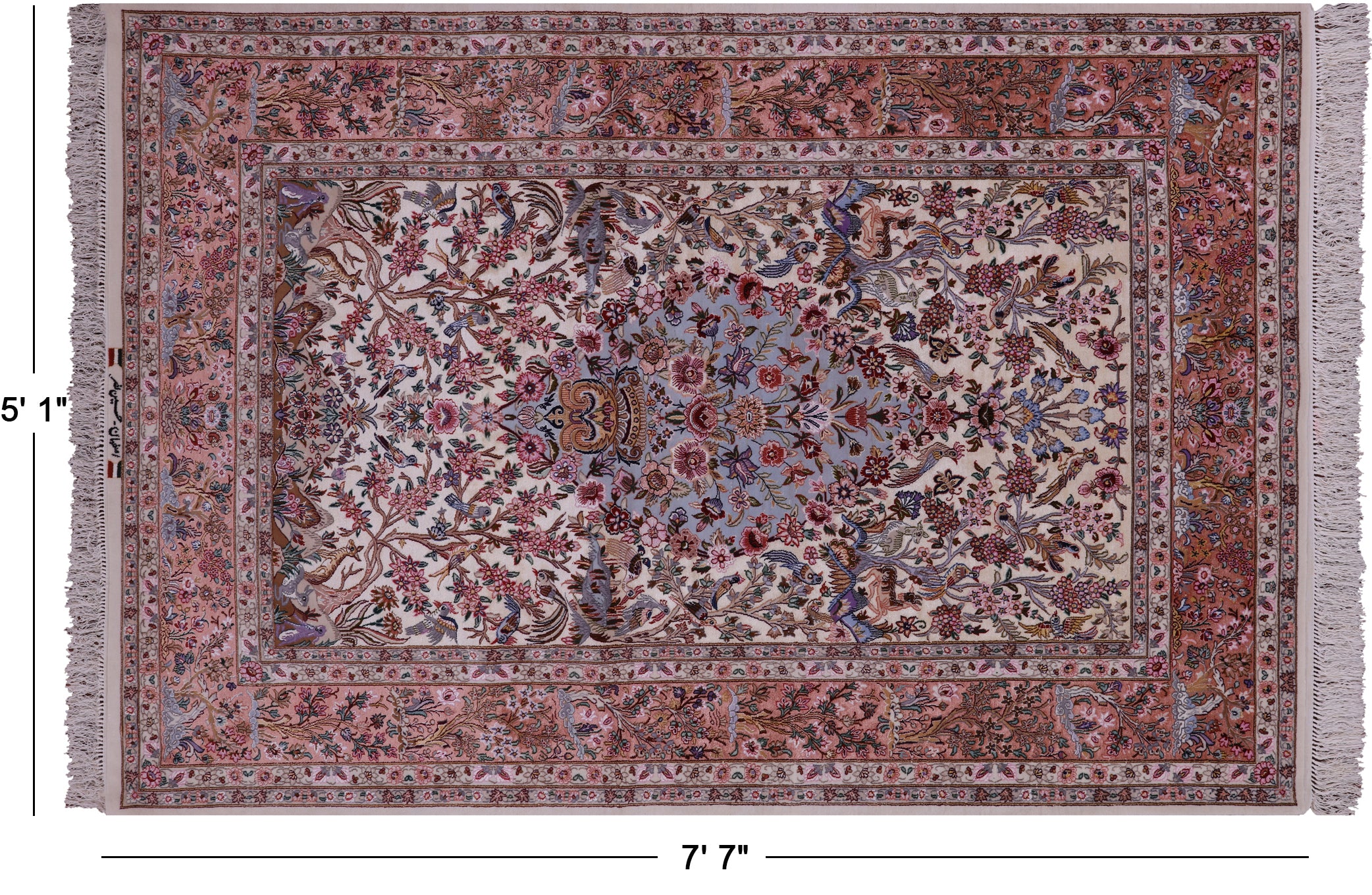 Ivory 5' 1" X 7' 7" Signed Wool & Silk Super Fine Persian Isfahan Hand Knotted Rug - SA2694