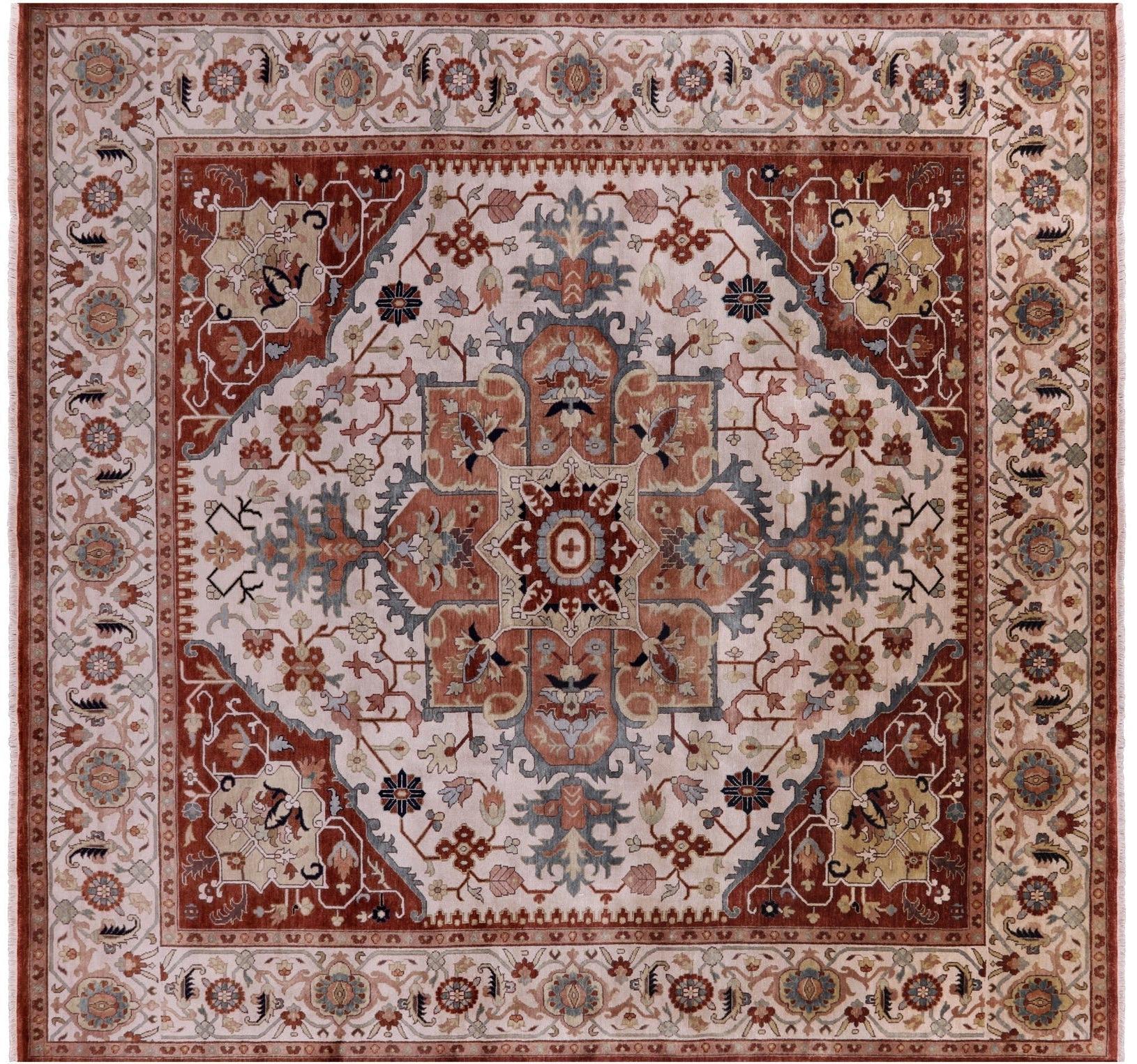 Ivory 12' Square Handmade Heriz Serapi Wool Rug - Q19691