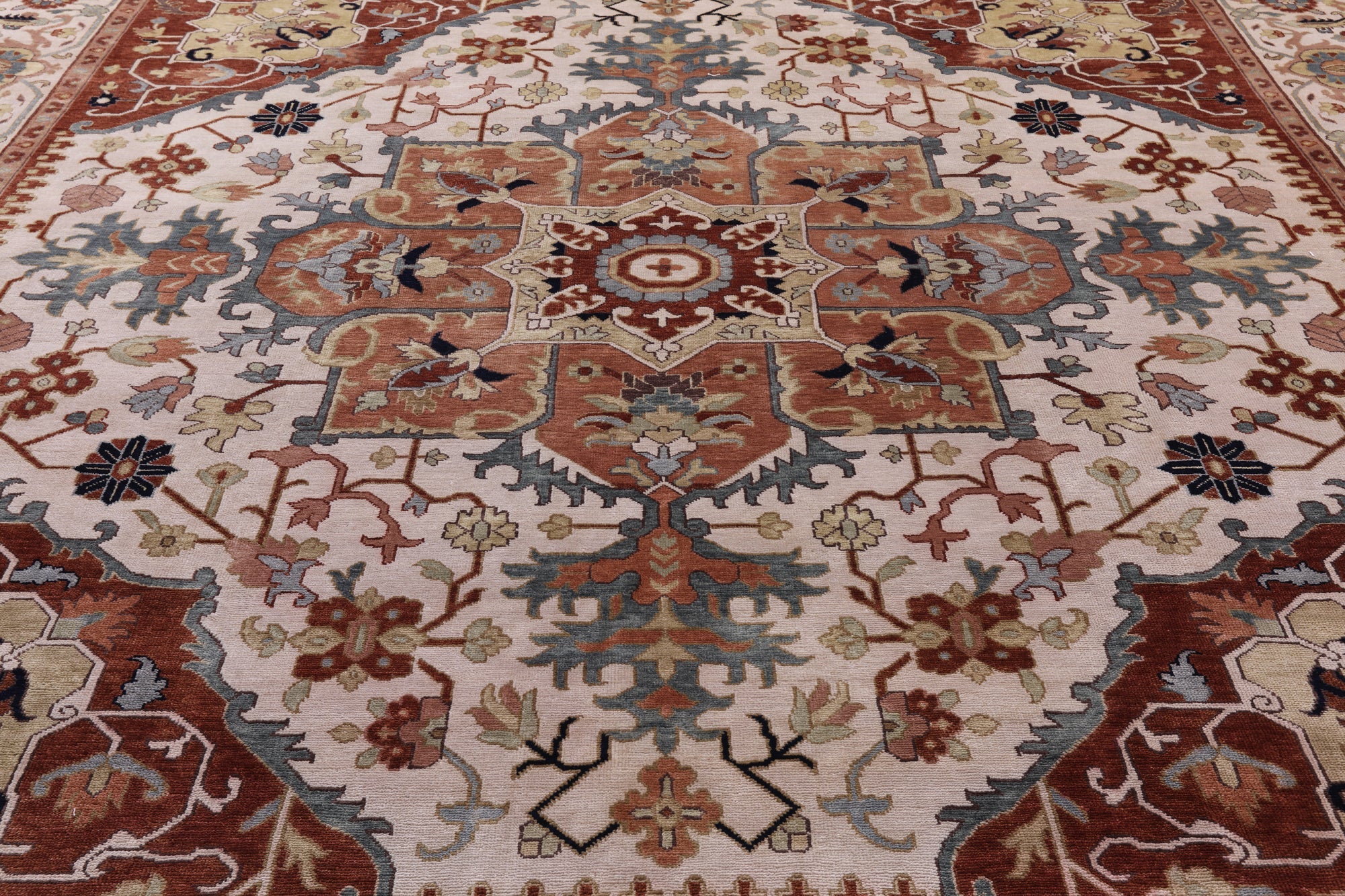 Ivory 12' Square Handmade Heriz Serapi Wool Rug - Q19691 is backordered and will ship as soon as it is back in stock.