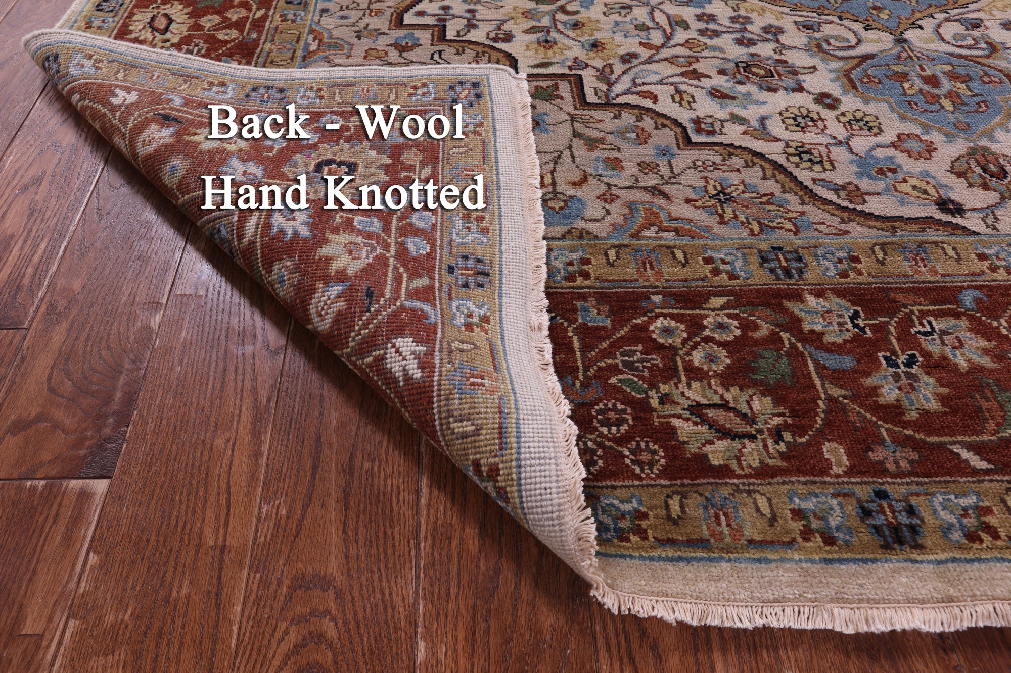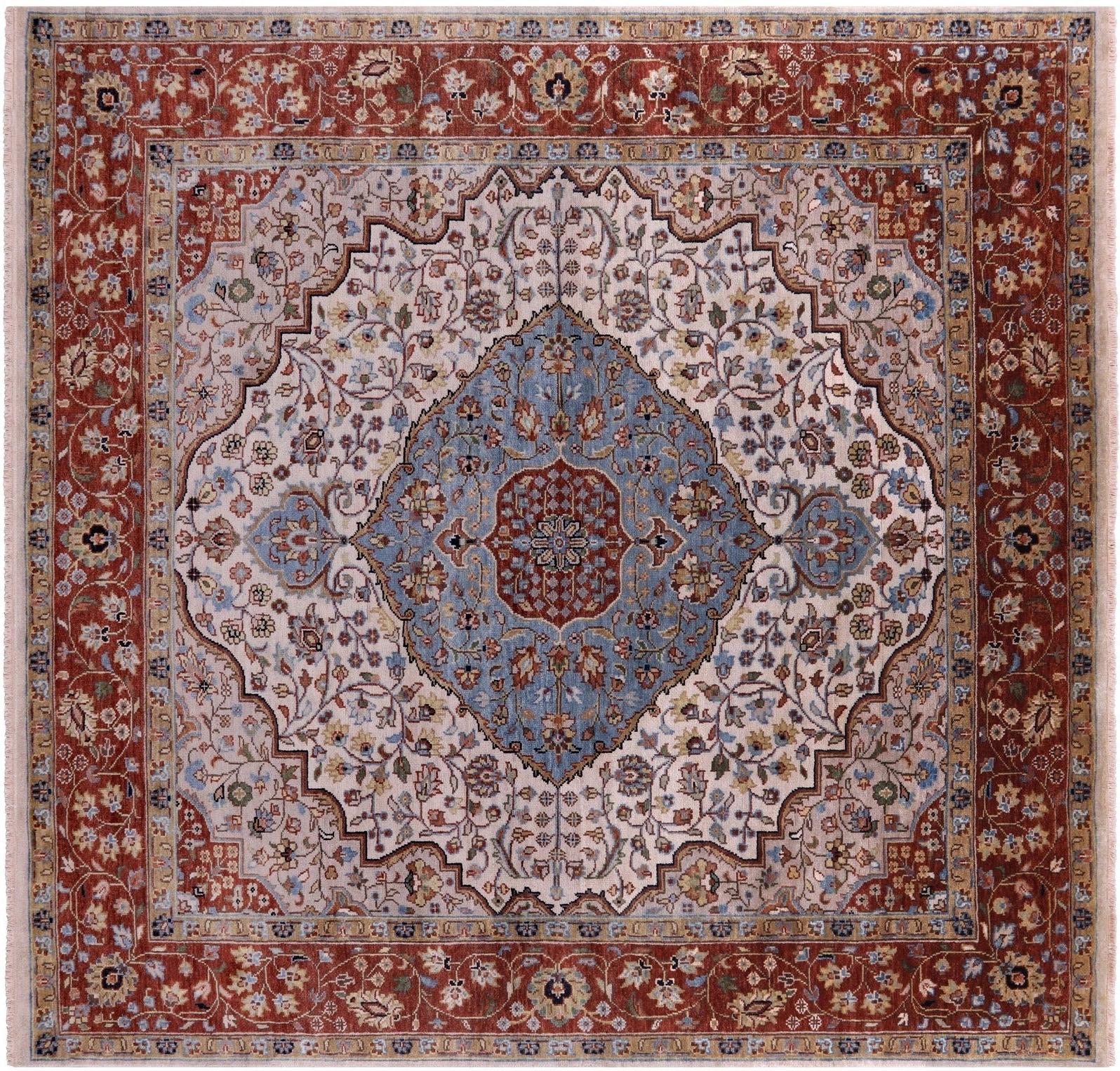 Ivory 9' Square Handmade Persian Heriz Serapi Wool Rug - Q22165