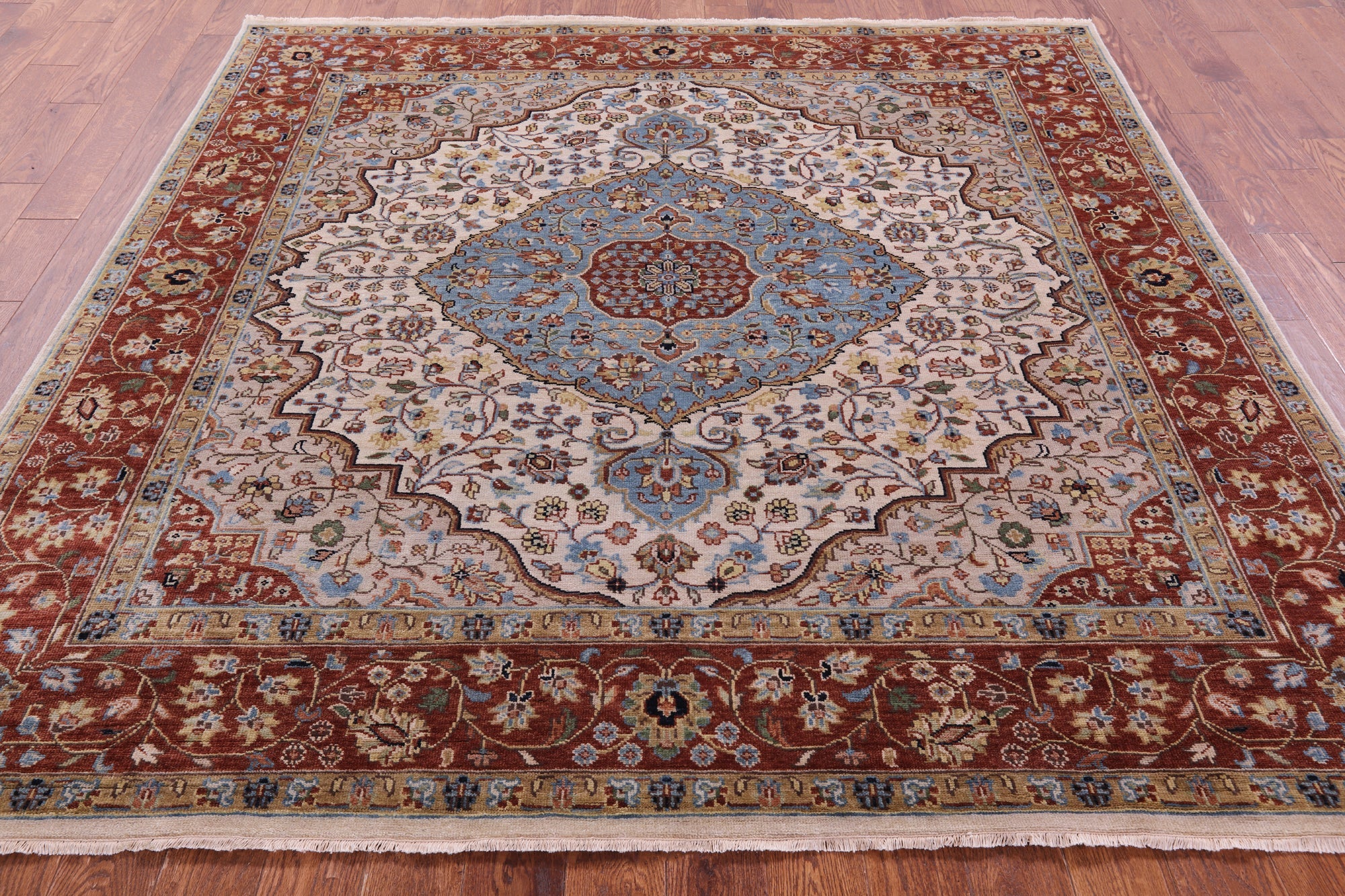 Ivory 9' Square Handmade Persian Heriz Serapi Wool Rug - Q22165 is backordered and will ship as soon as it is back in stock.