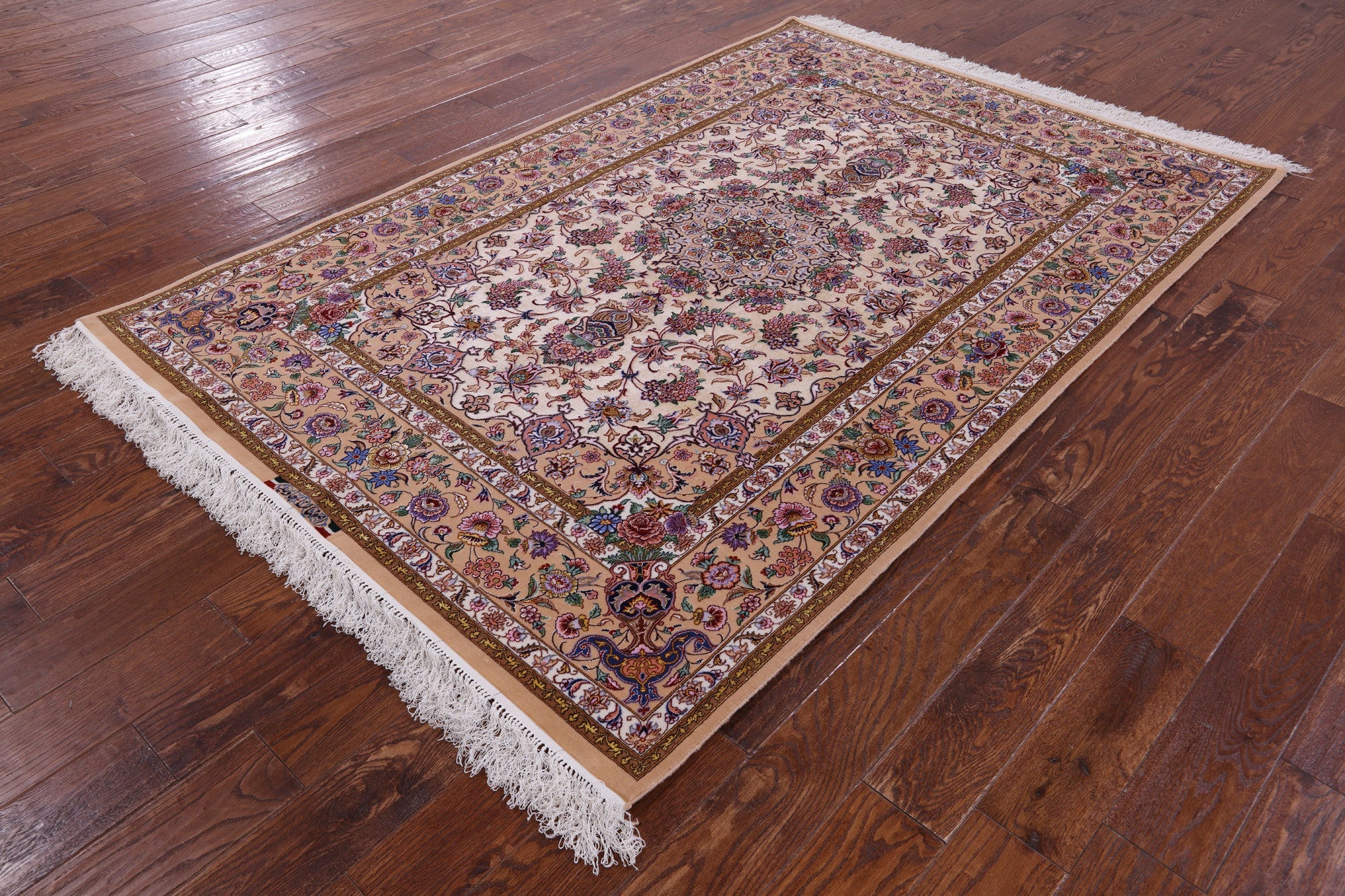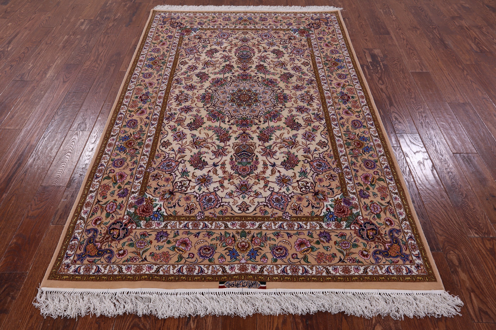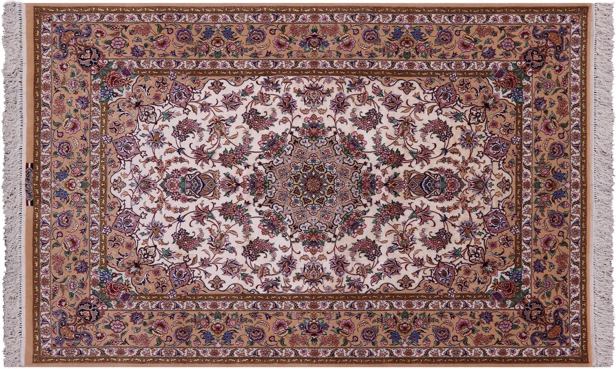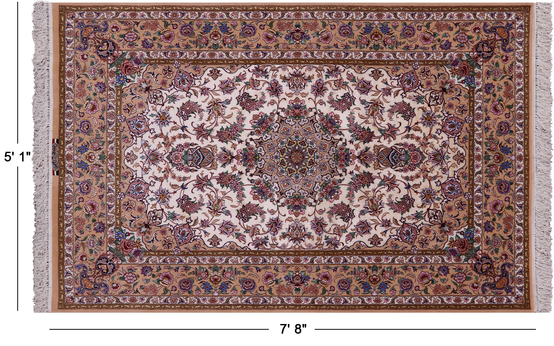 Ivory Super Fine Signed Persian Isfahan Silk Handmade Rug 5' 1" X 7' 8" - SA2712