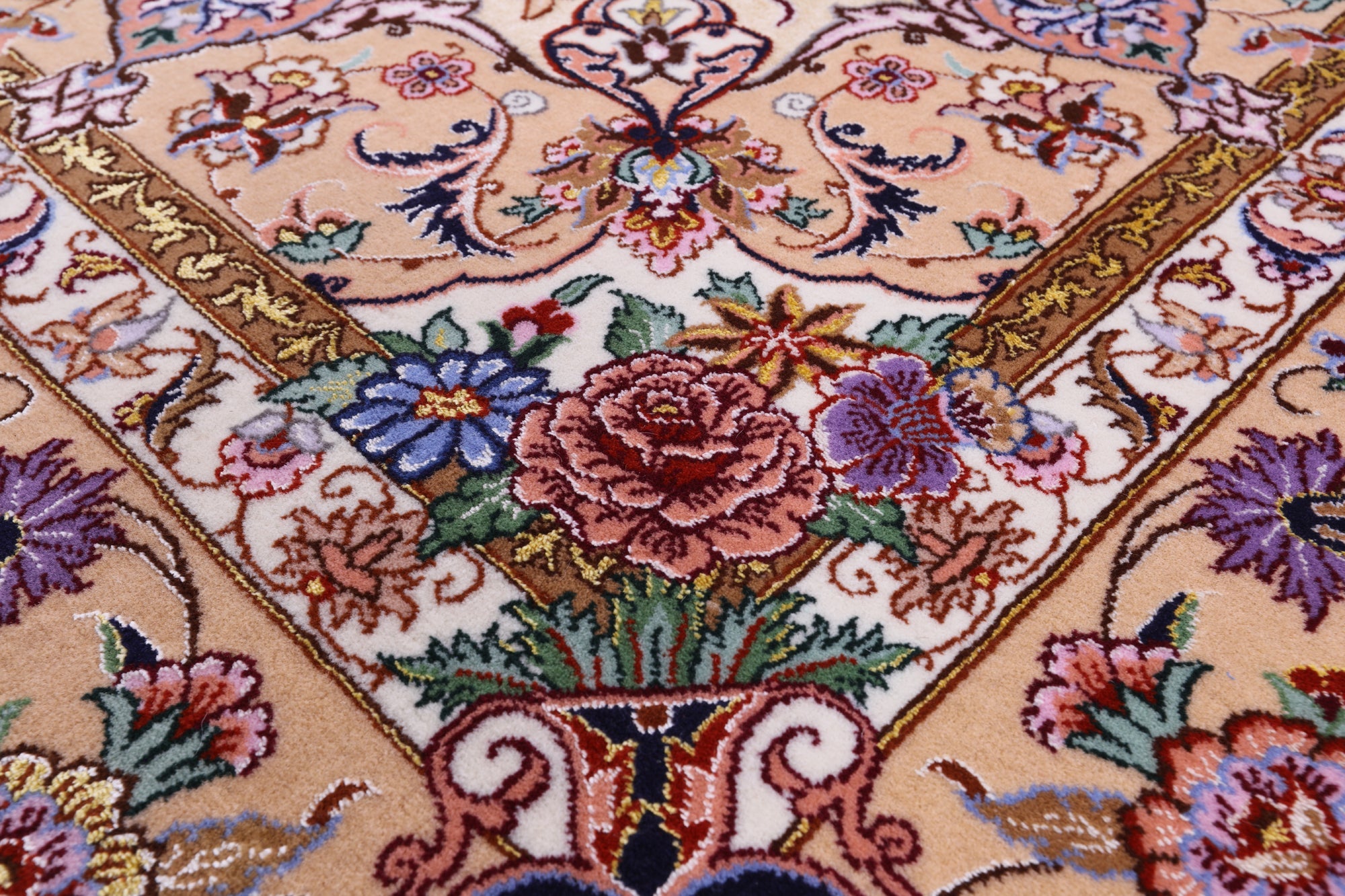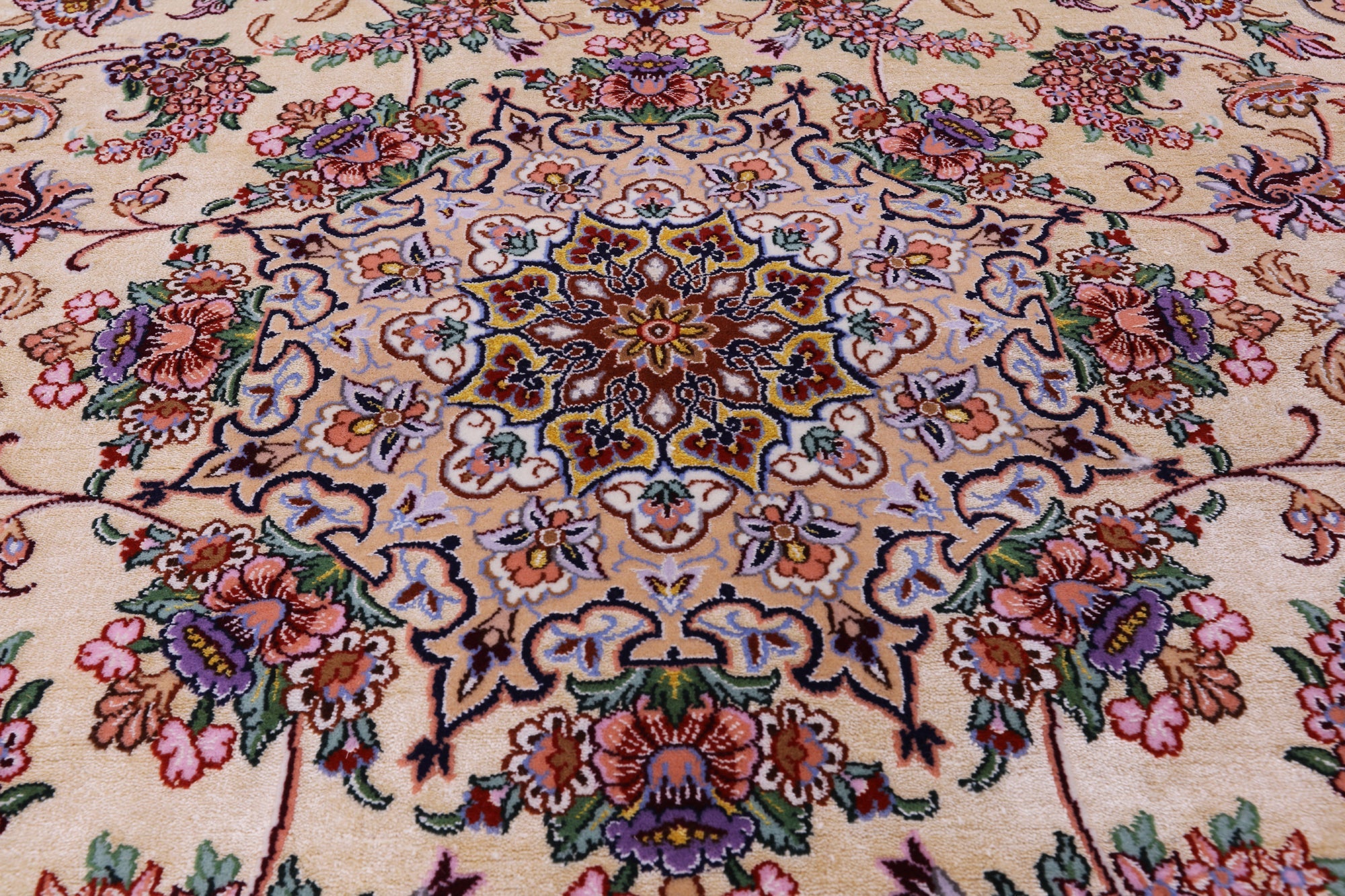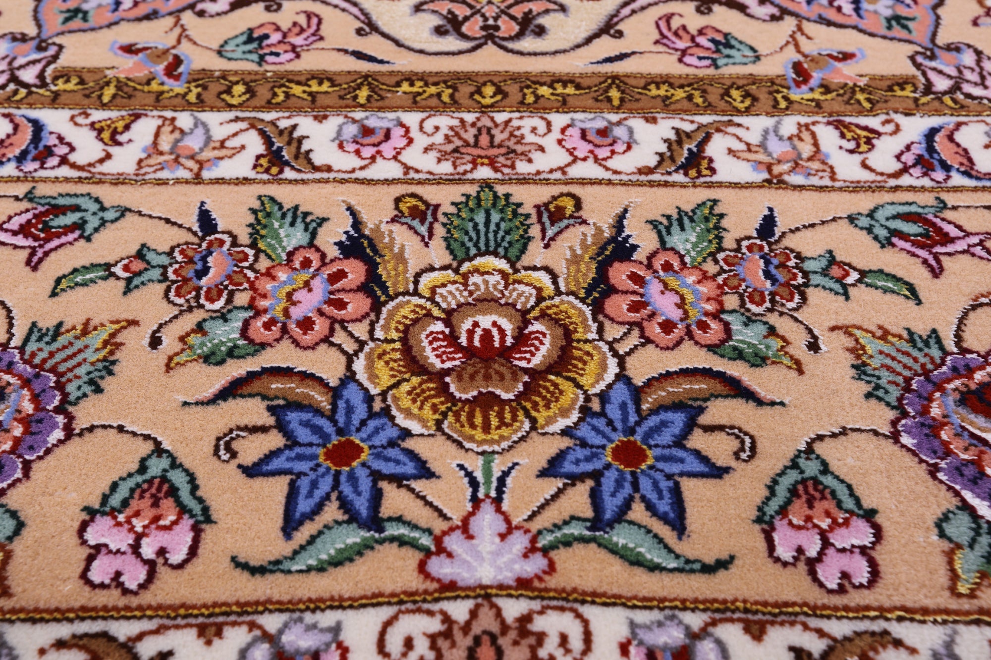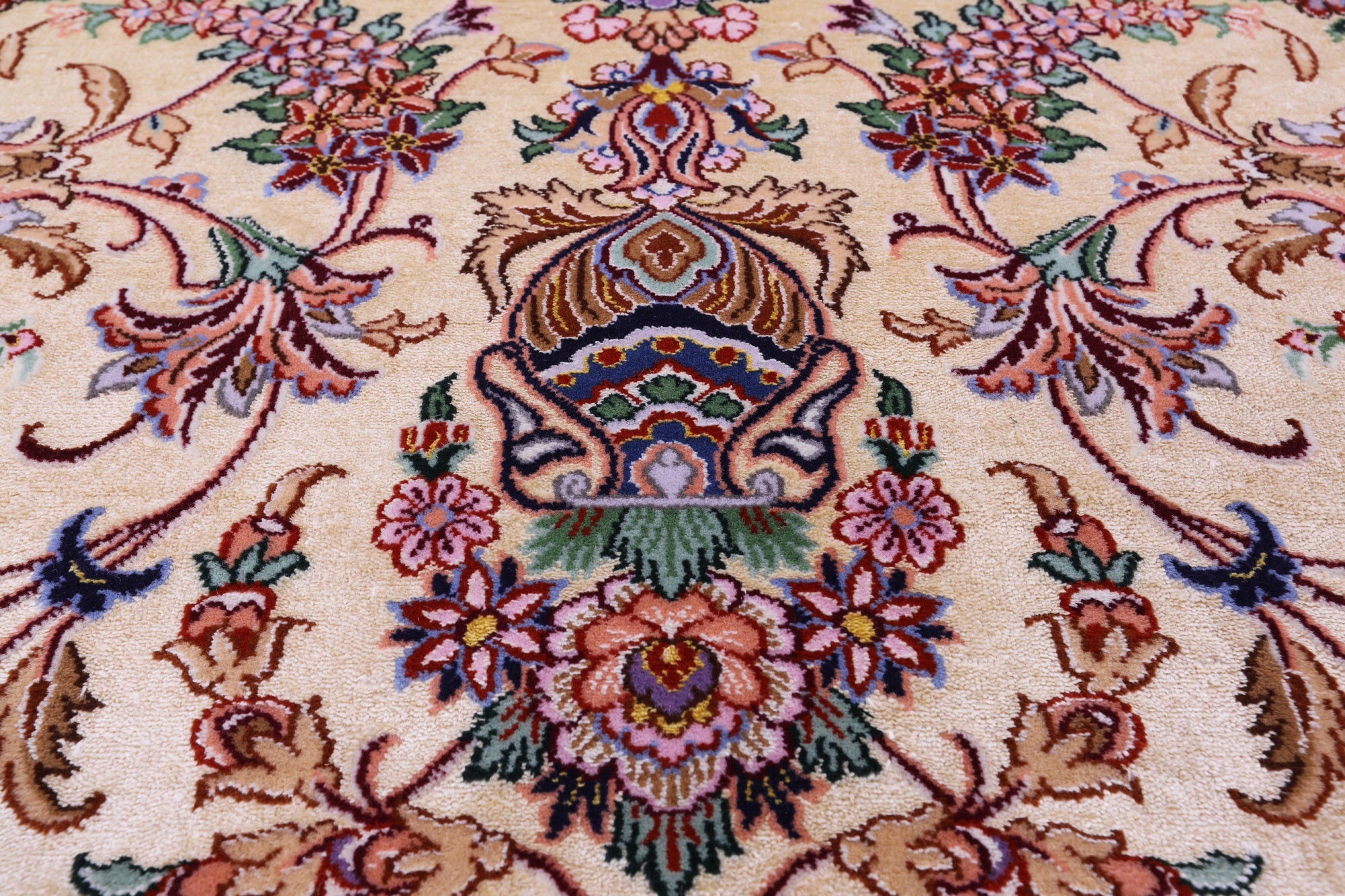 Ivory Super Fine Signed Persian Isfahan Silk Handmade Rug 5' 1" X 7' 8" - SA2712