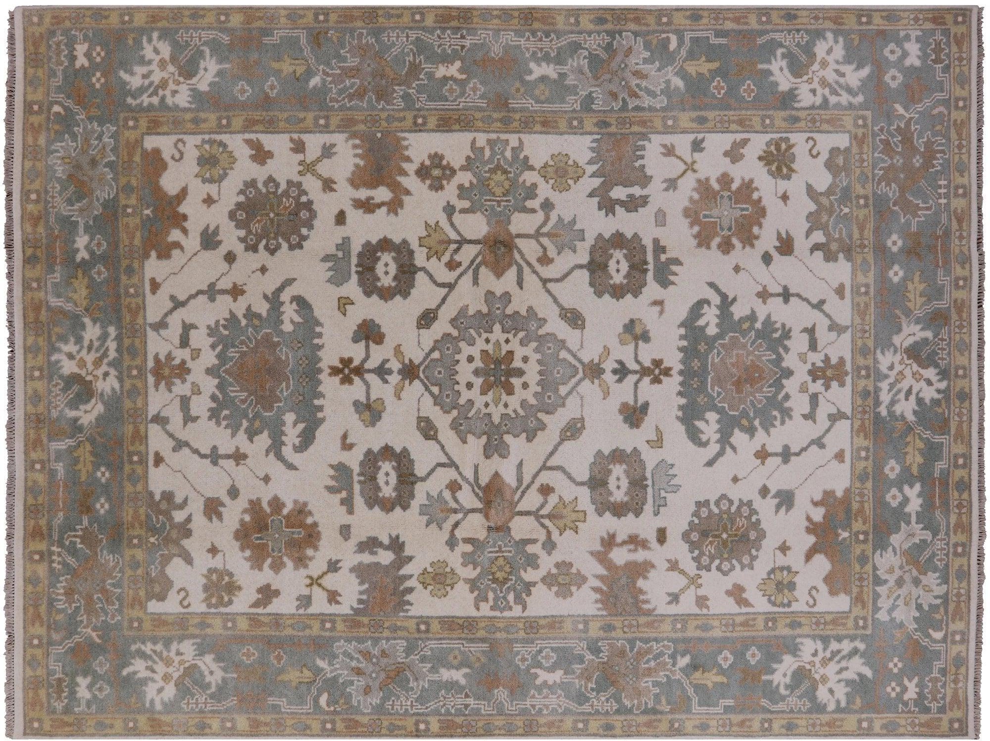 Ivory Turkish Oushak Handmade Wool Area Rug 7' 7" X 9' 11" - P8310