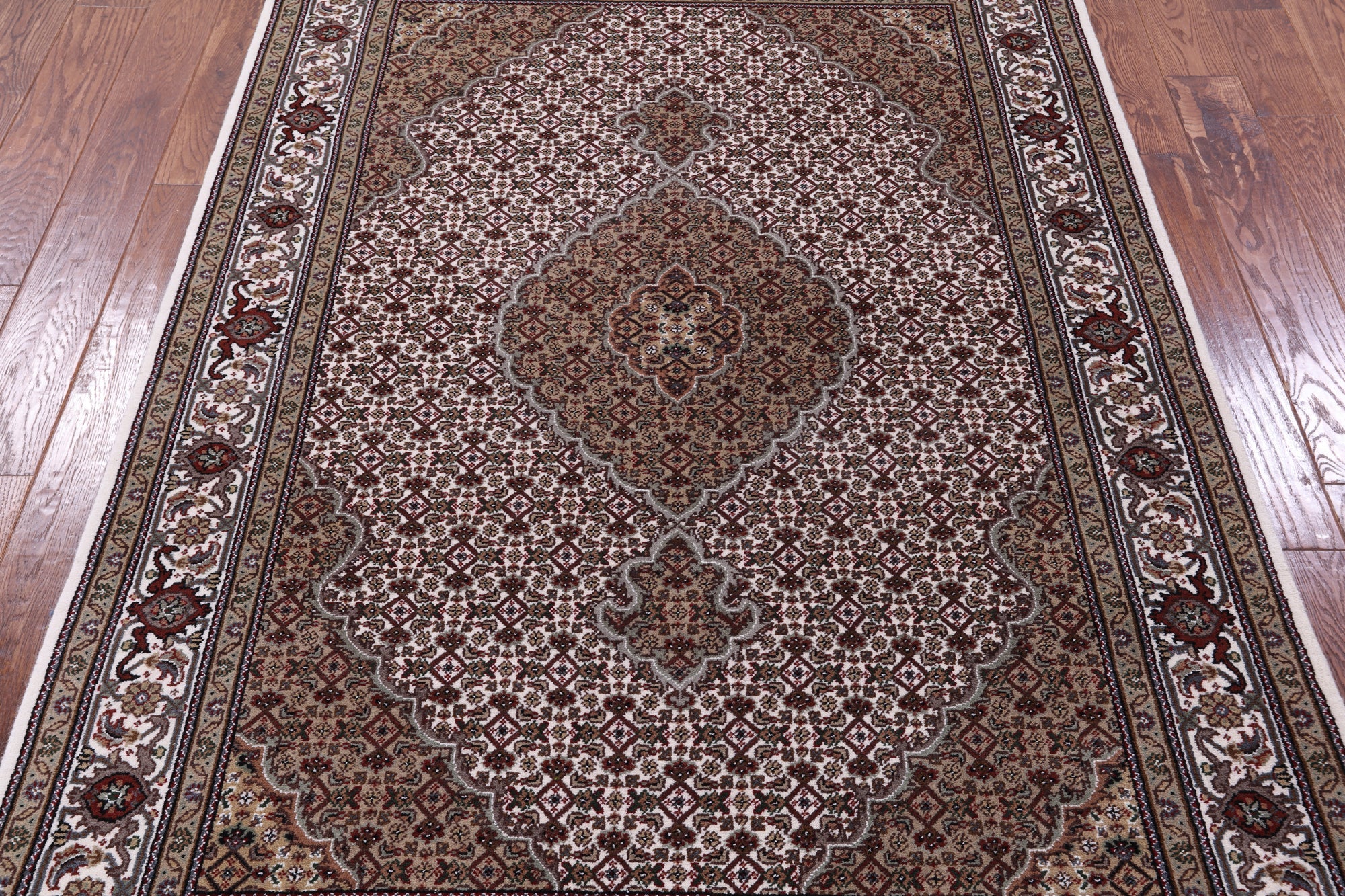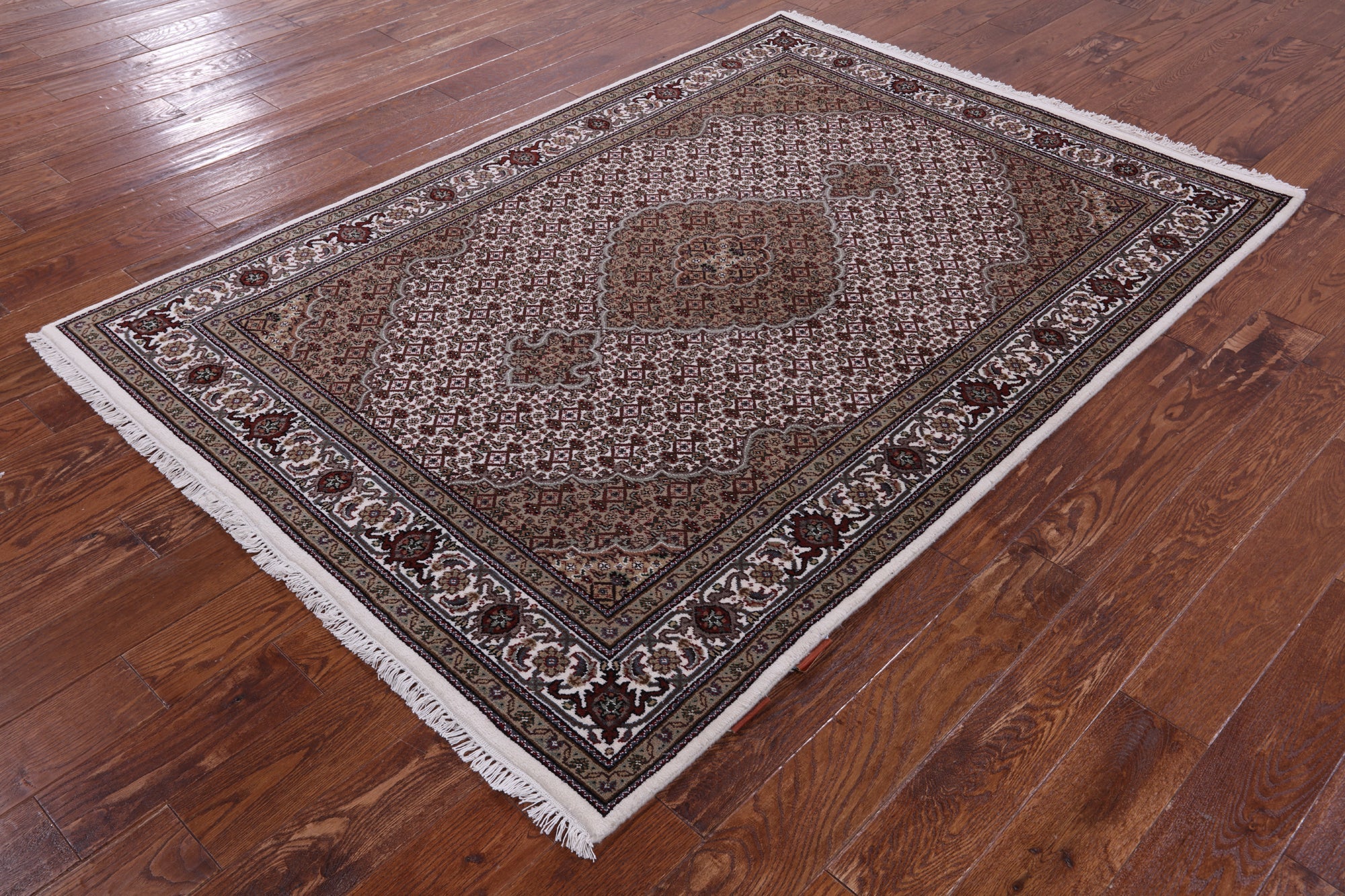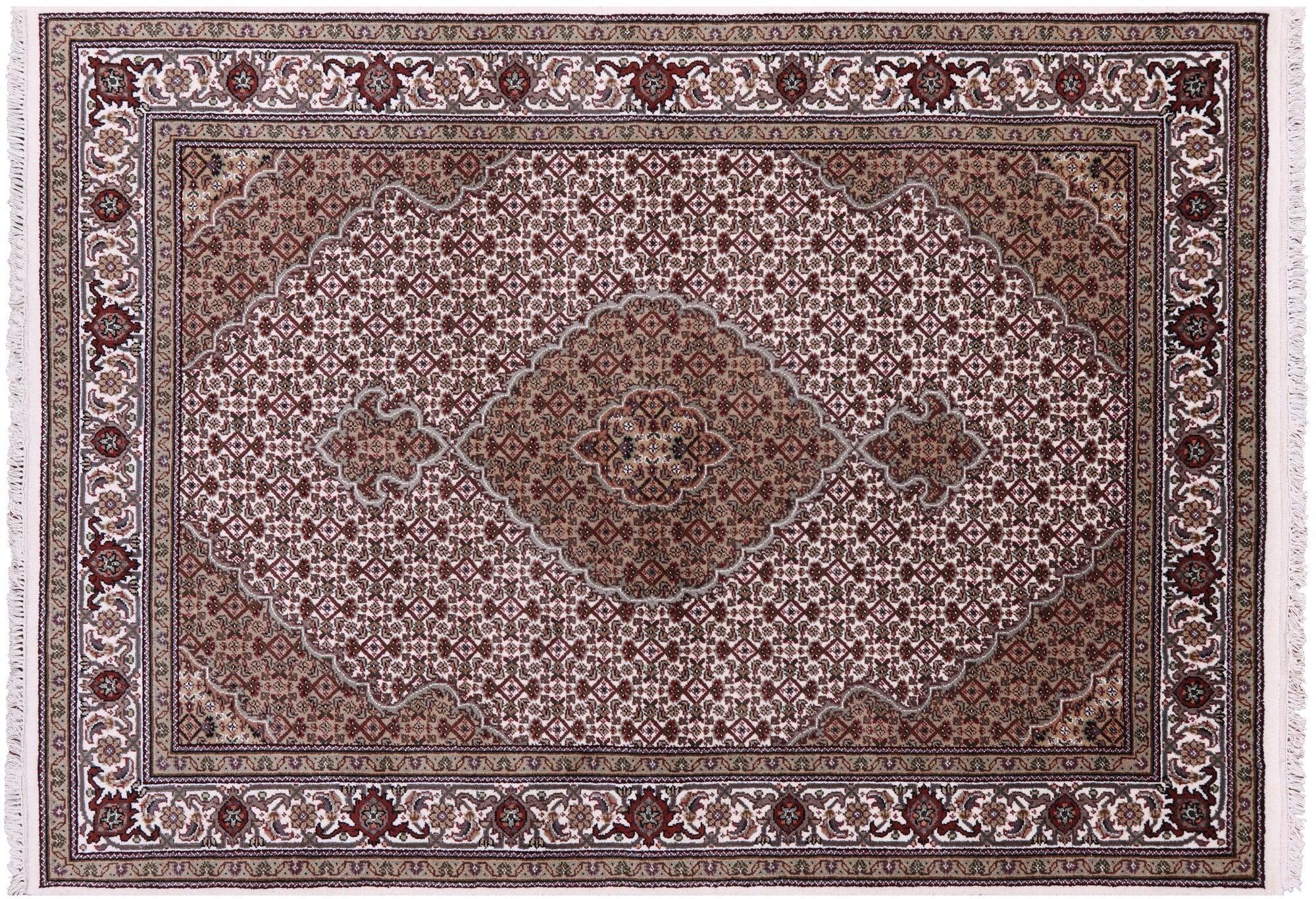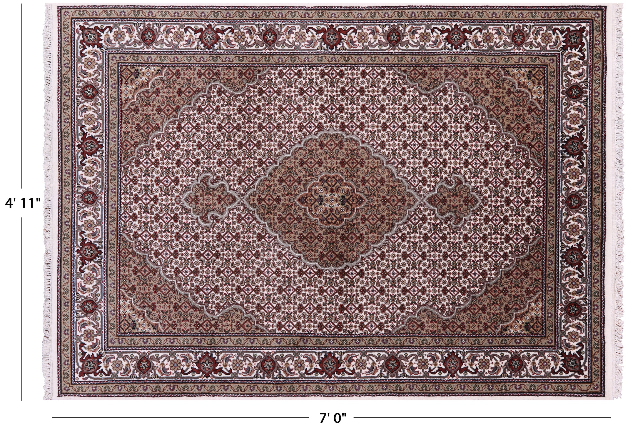 Ivory 4' 11" X 7' 0" Wool & Silk Persian Tabriz Hand Knotted Rug - Q13017
