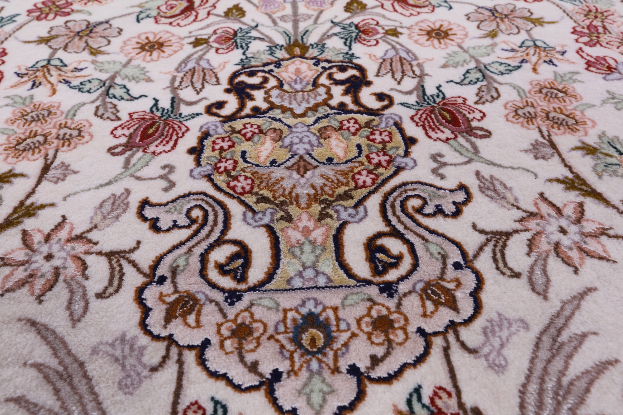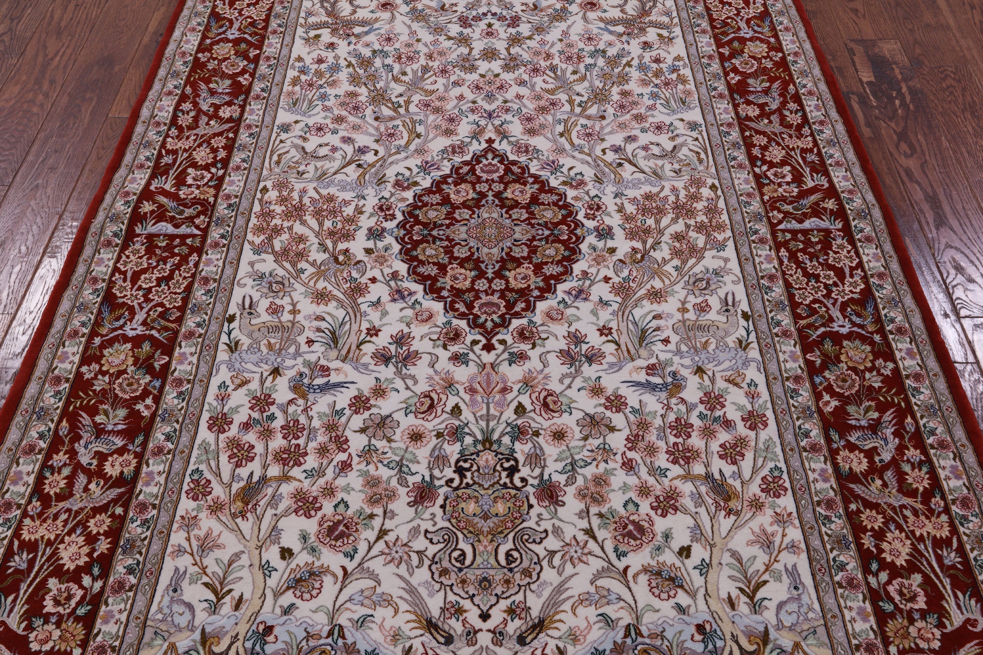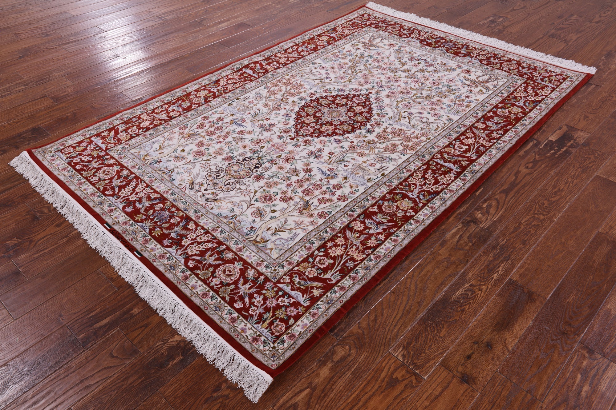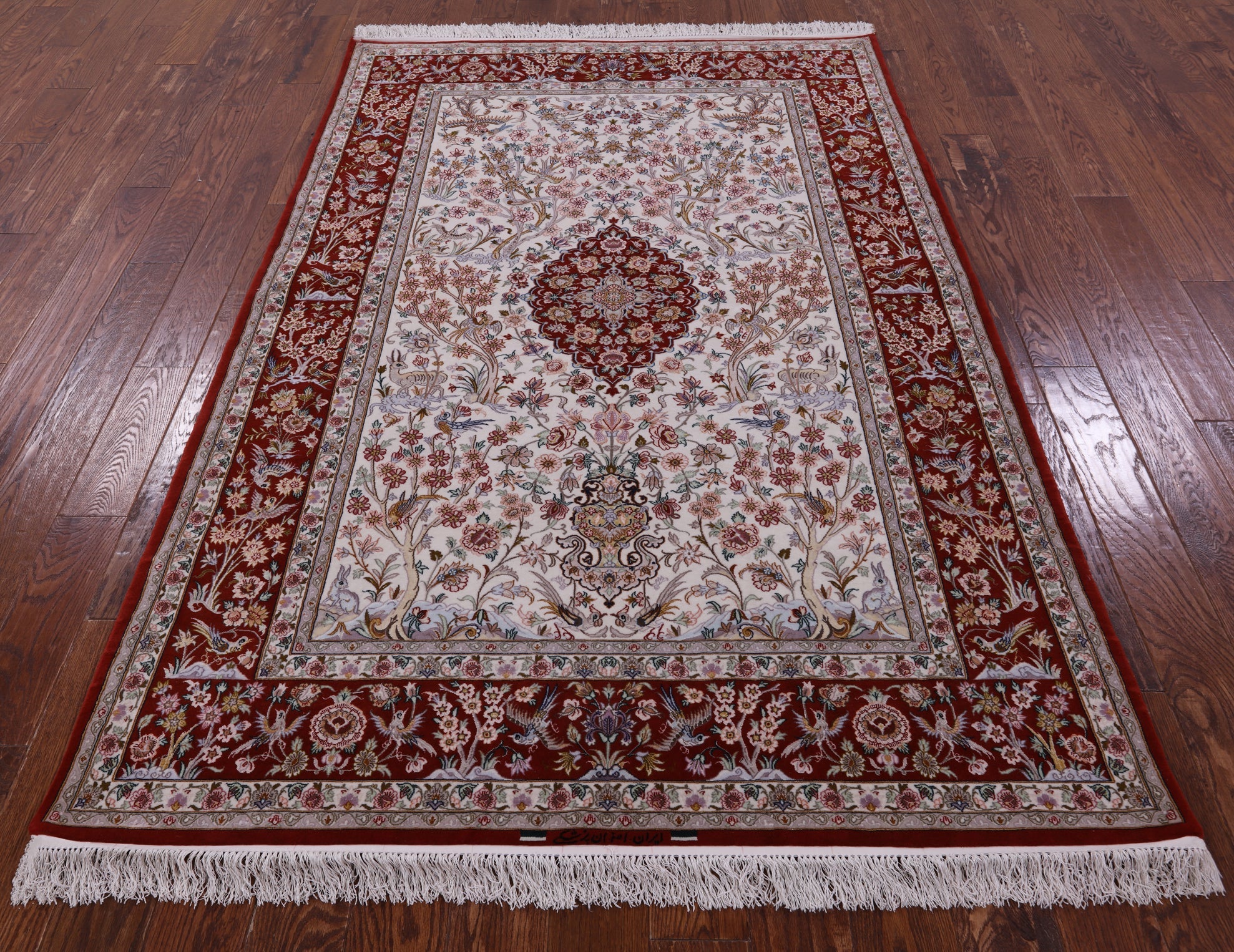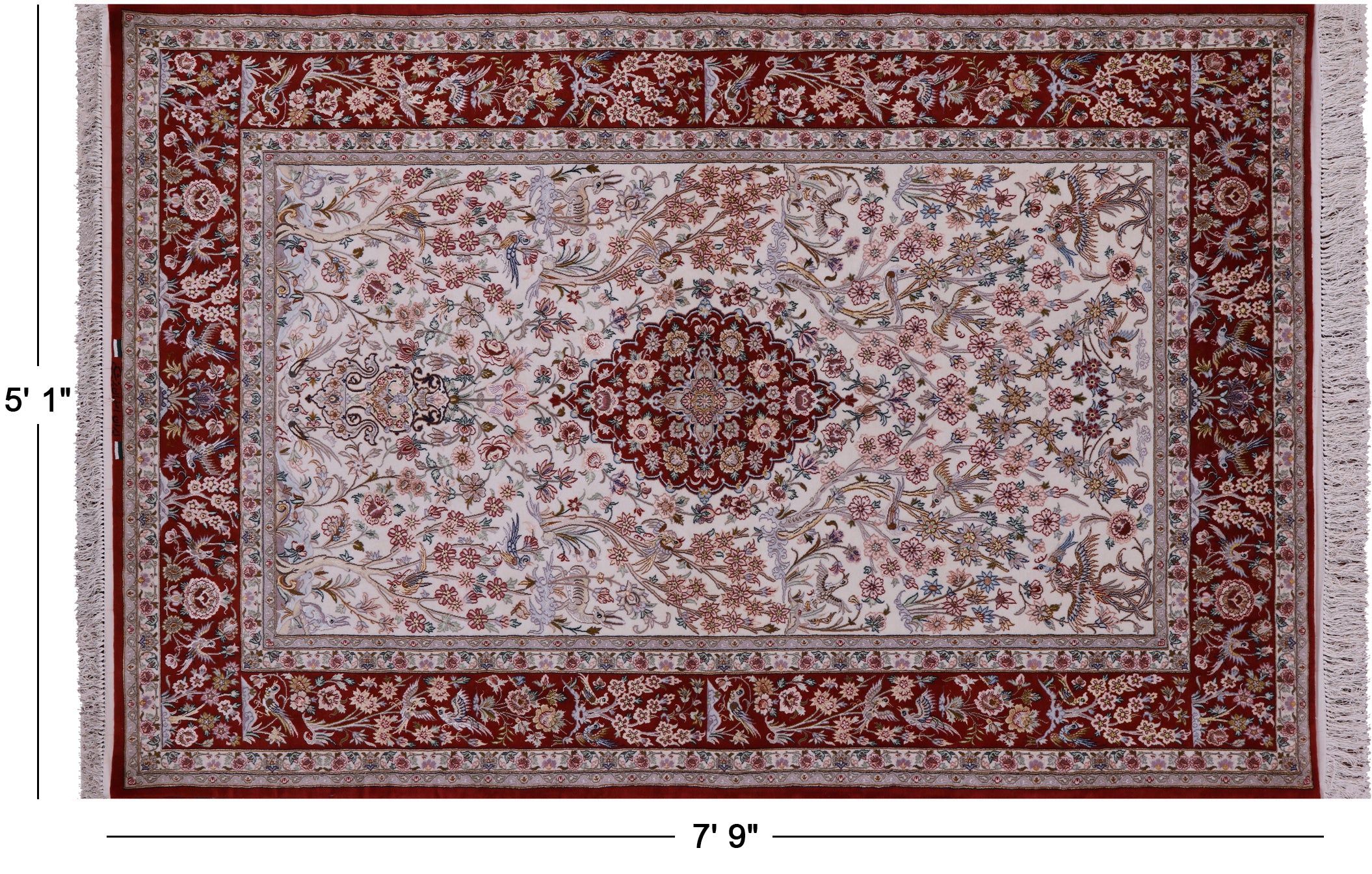 Ivory Wool & Silk Signed Isfahan Persian Rug 5' 1" X 7' 9" - SA2676