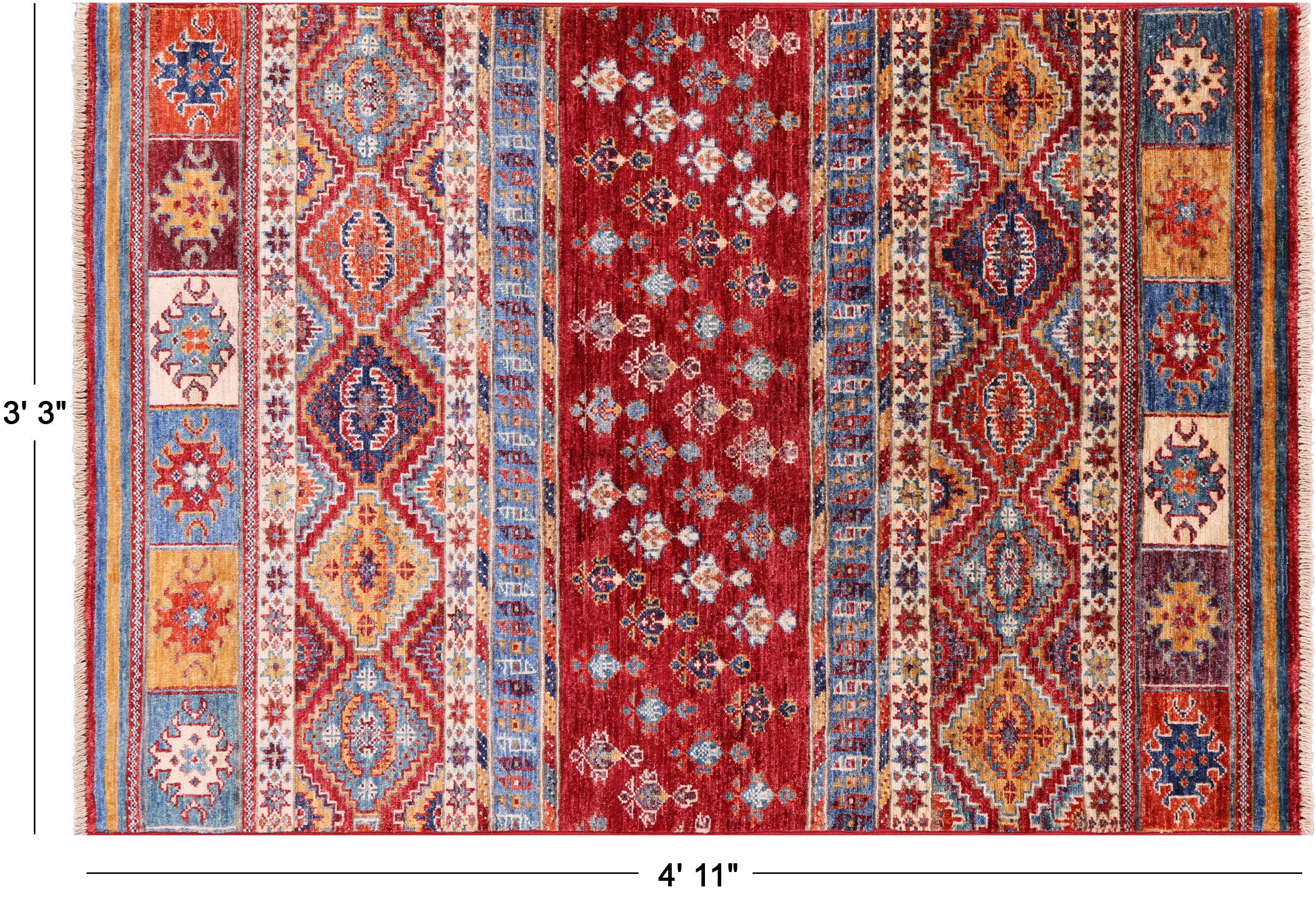 3' 3" X 4' 11" Khorjin Super Kazak Hand Knotted Wool Rug - Q11074