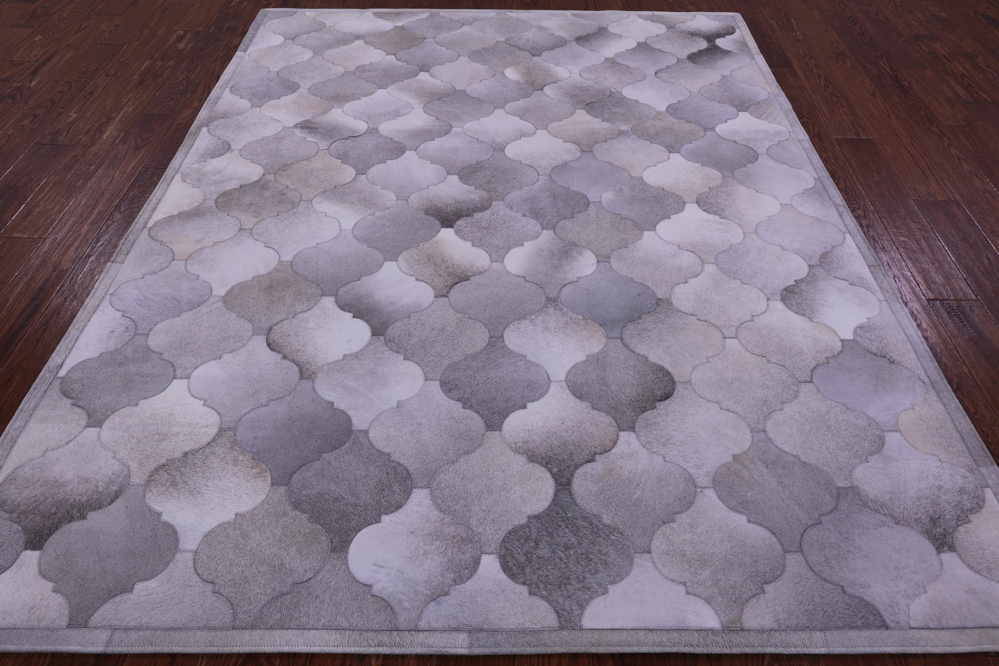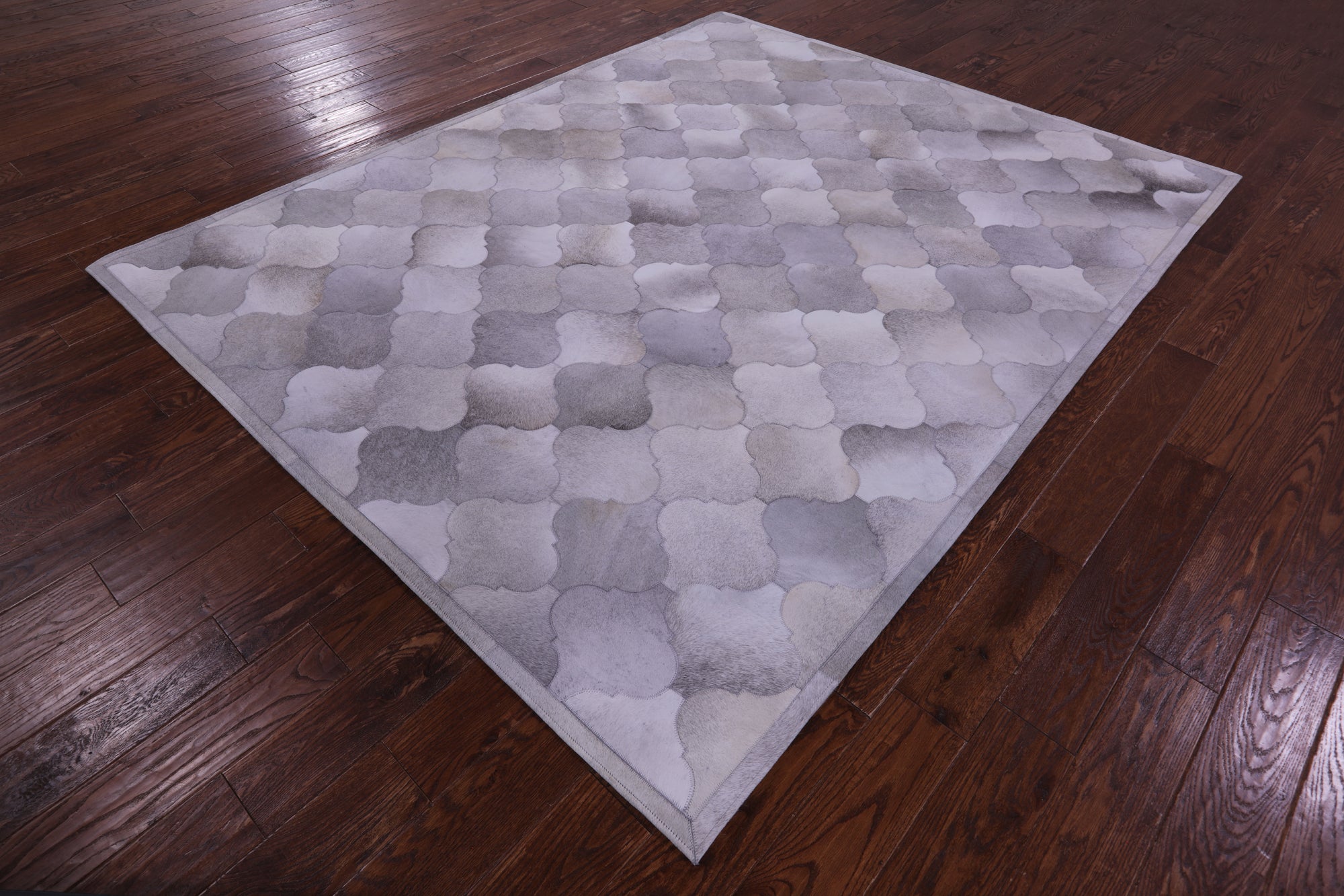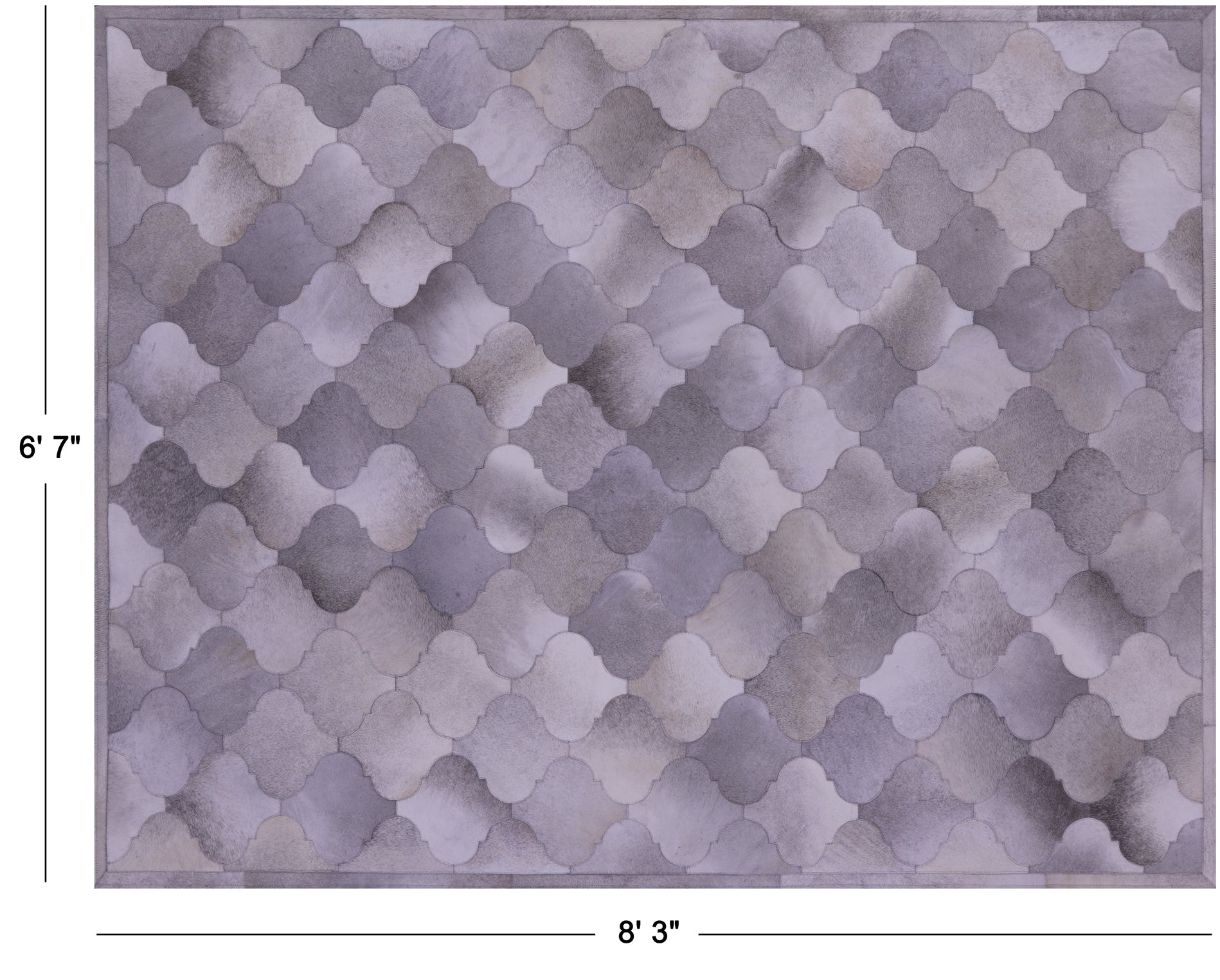 6' 7" X 8' 3" Lantern Tile Grey Natural Cowhide Hand Stitched Rug - C3470