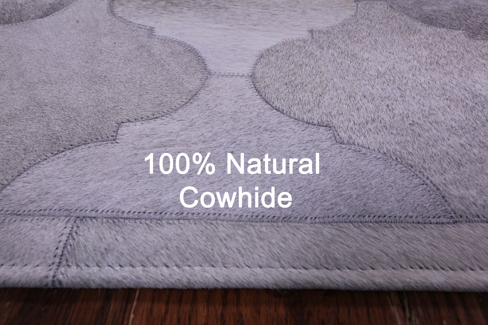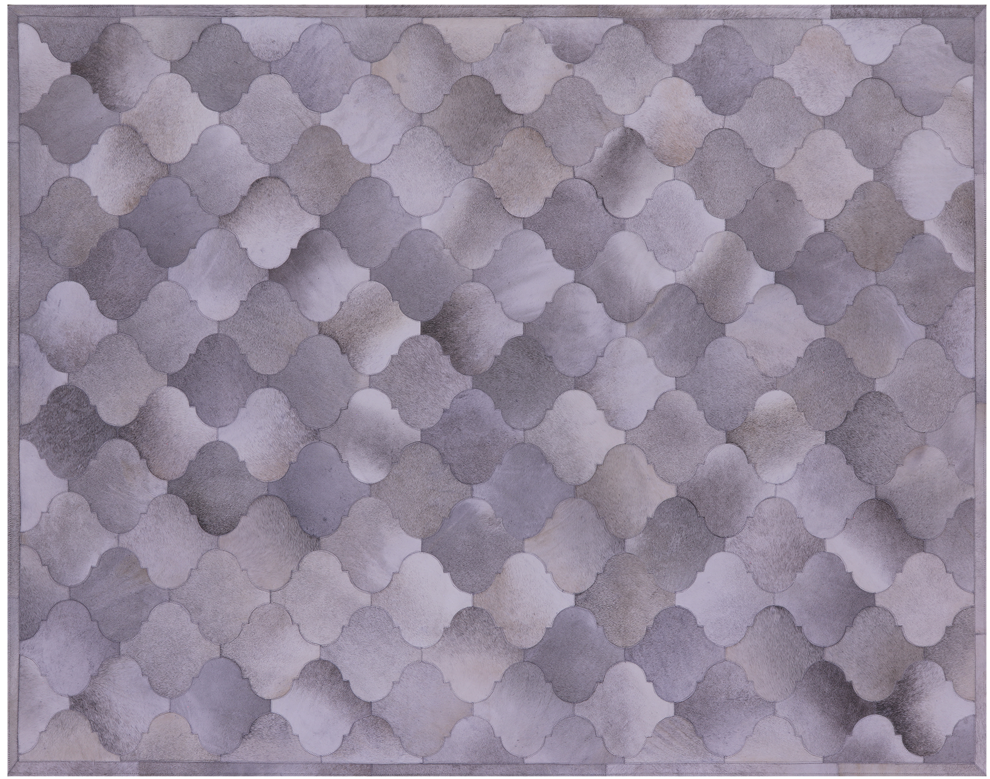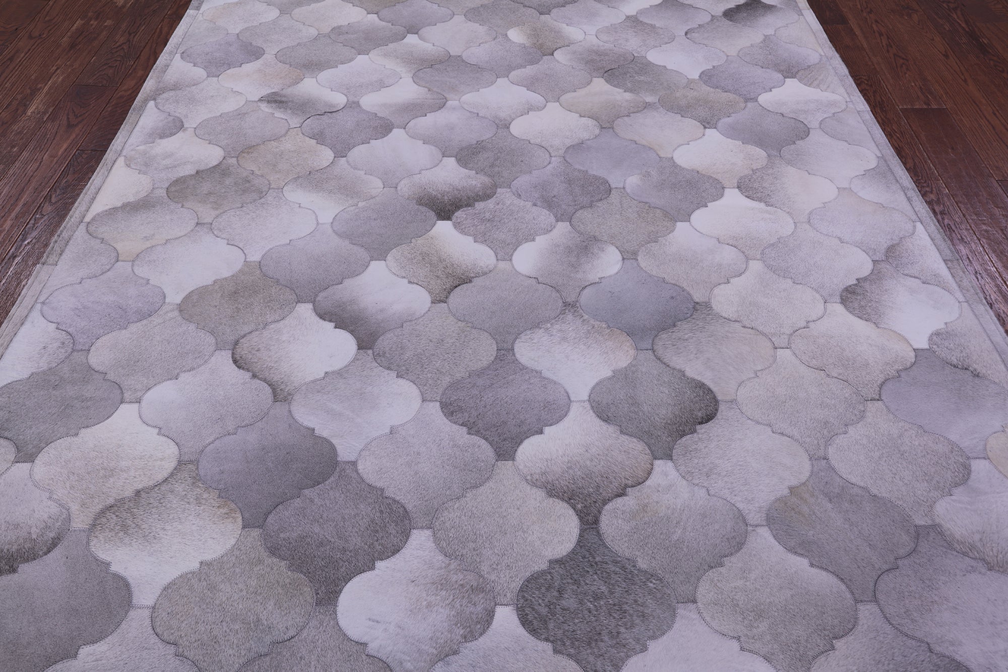 6' 7" X 8' 3" Lantern Tile Grey Natural Cowhide Hand Stitched Rug - C3470