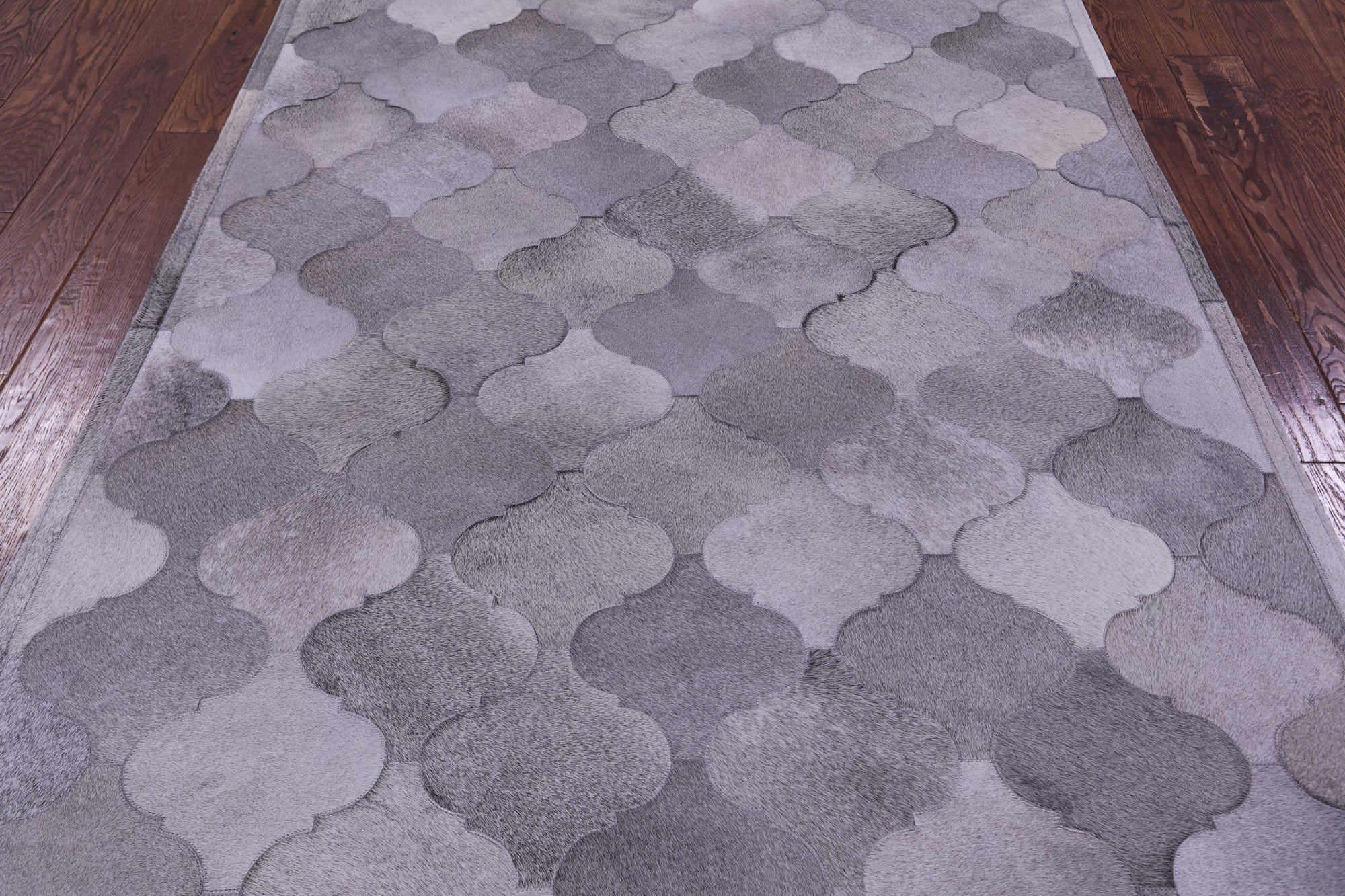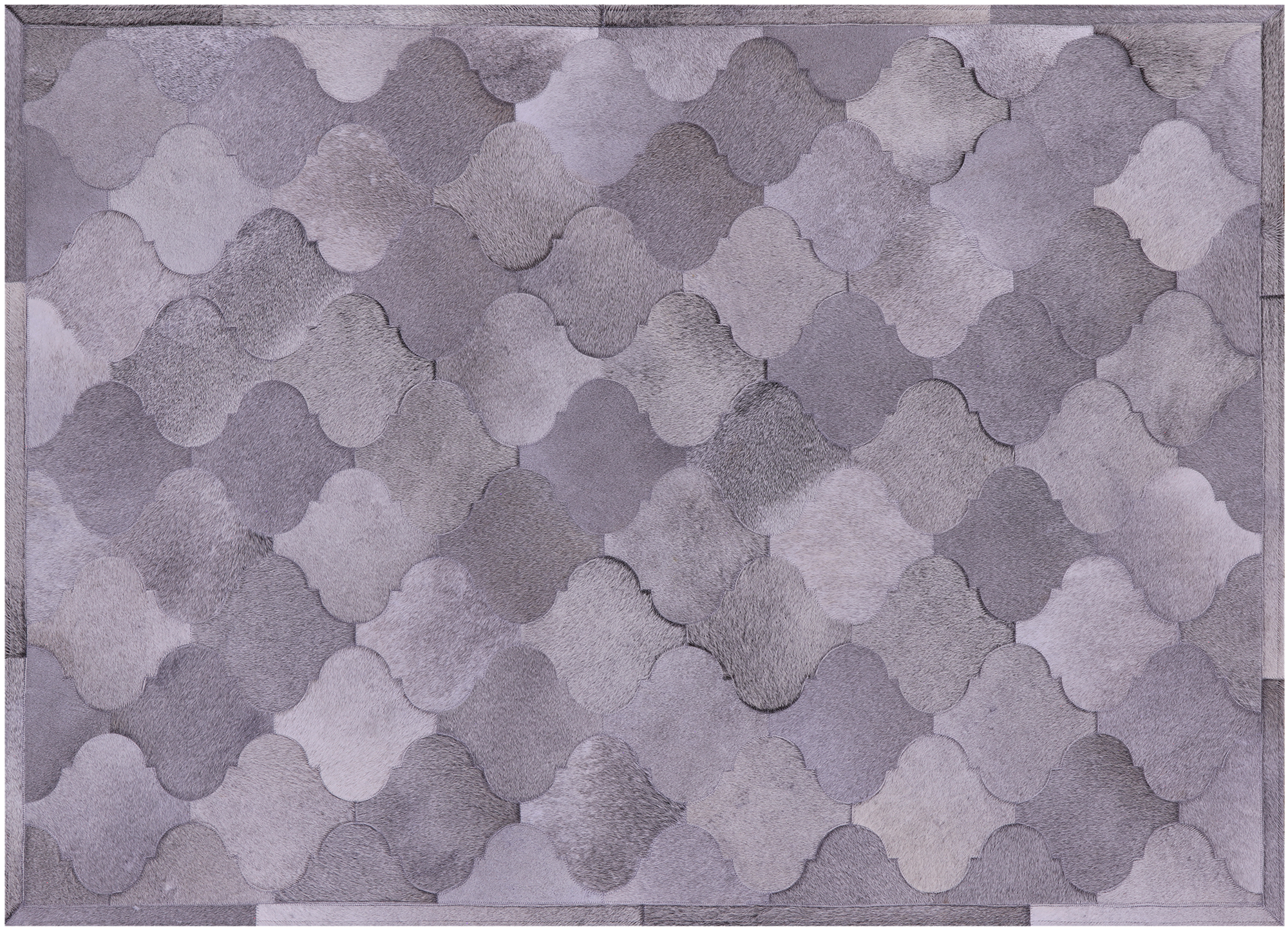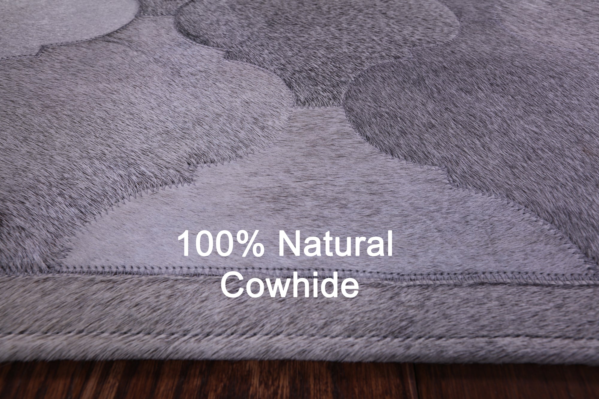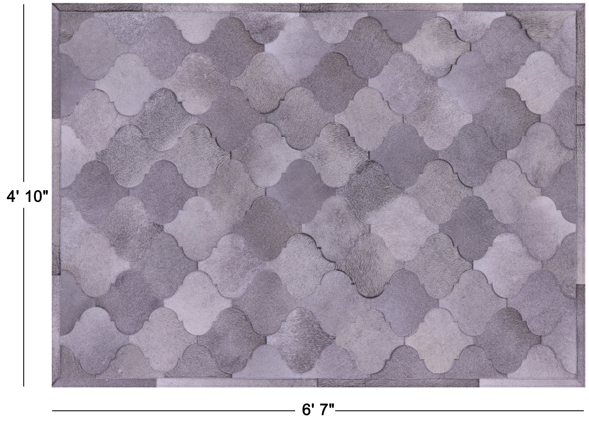 4' 10" X 6' 7" Lantern Tile Grey Natural Cowhide Hand Stitched Rug - C3492