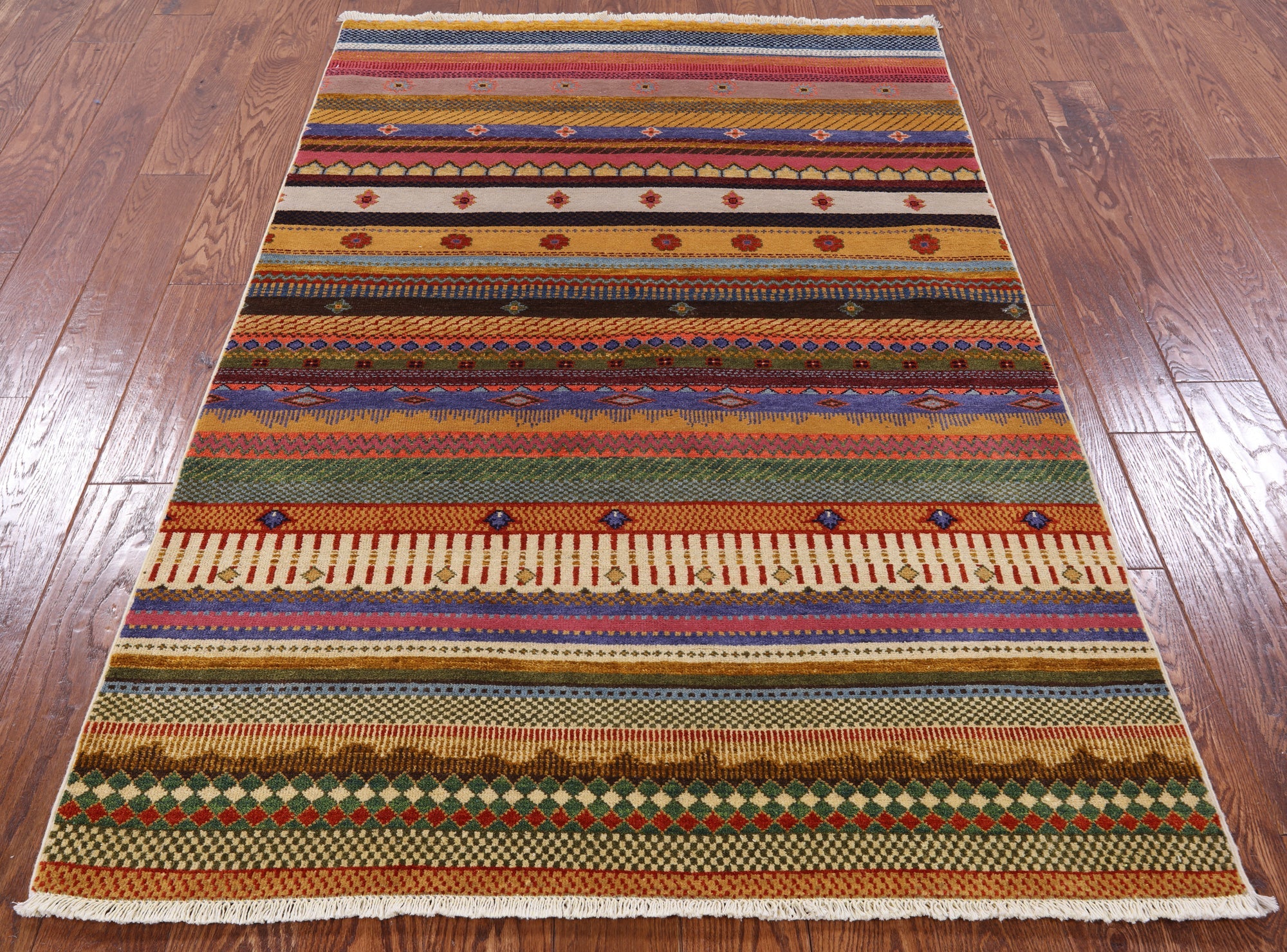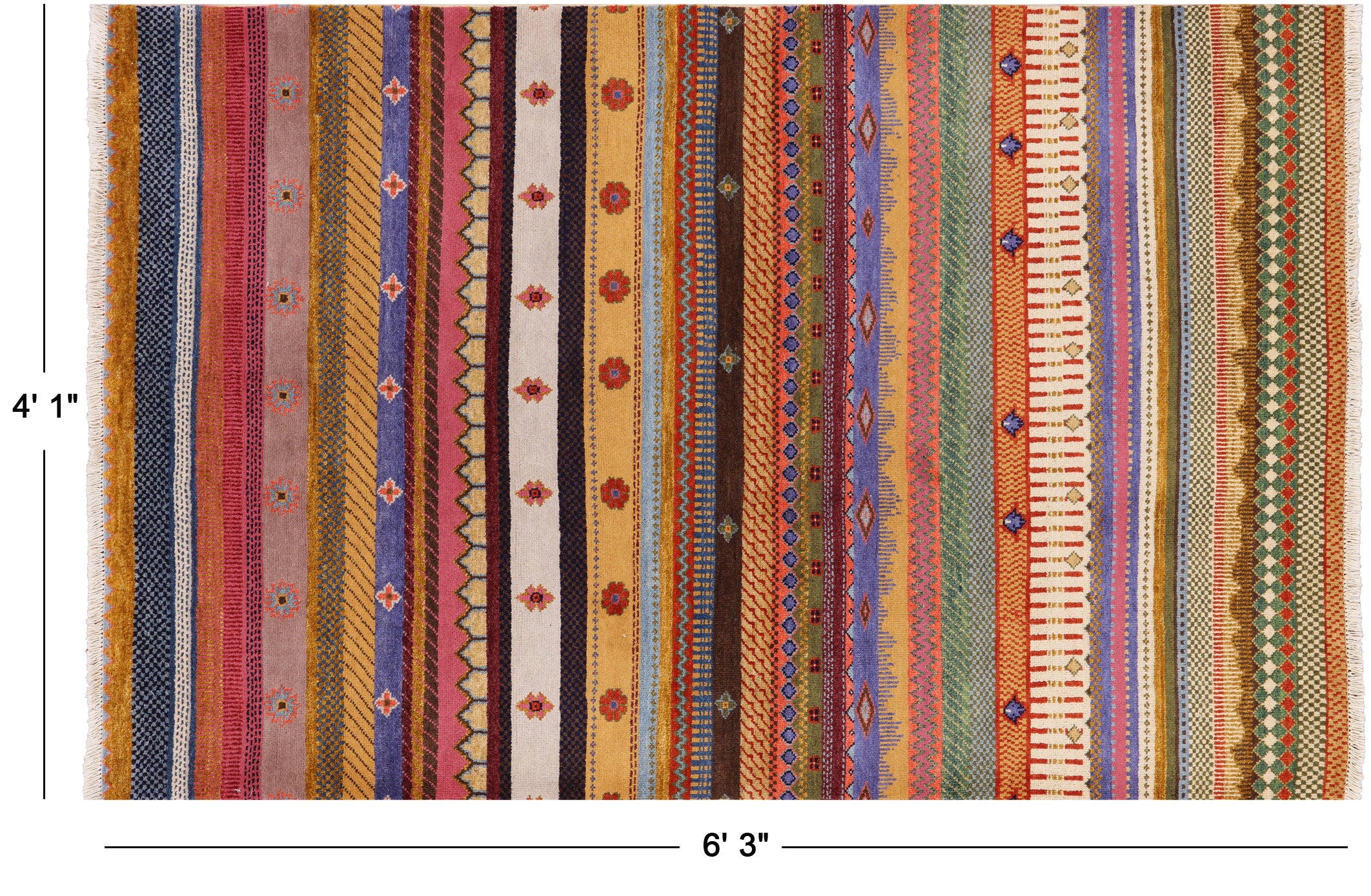 Loribaft Hand-Knotted Persian Gabbeh Rug 4' 1" X 6' 3" - P7483
