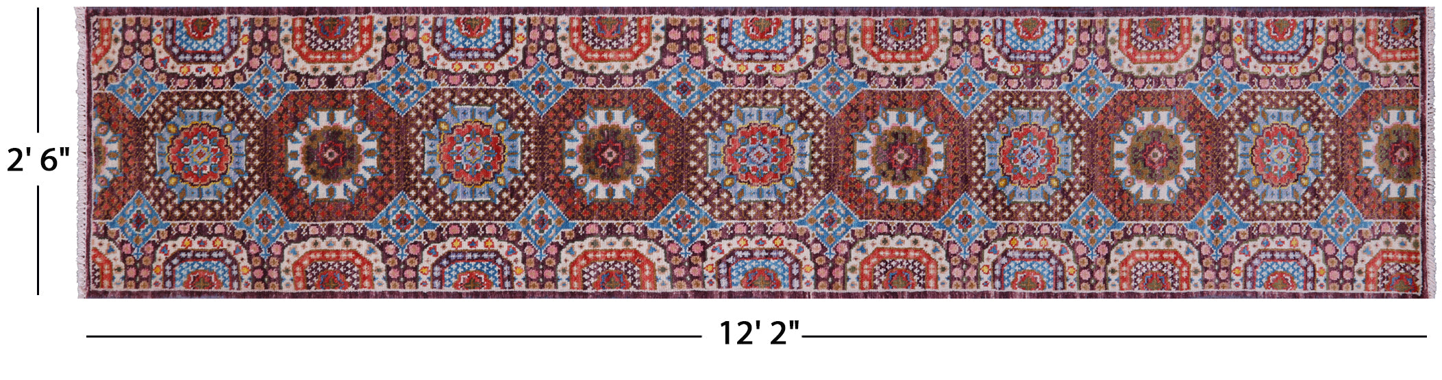 Mamluk Handmade Wool Runner Rug 2' 6" X 12' 2" - Q19361