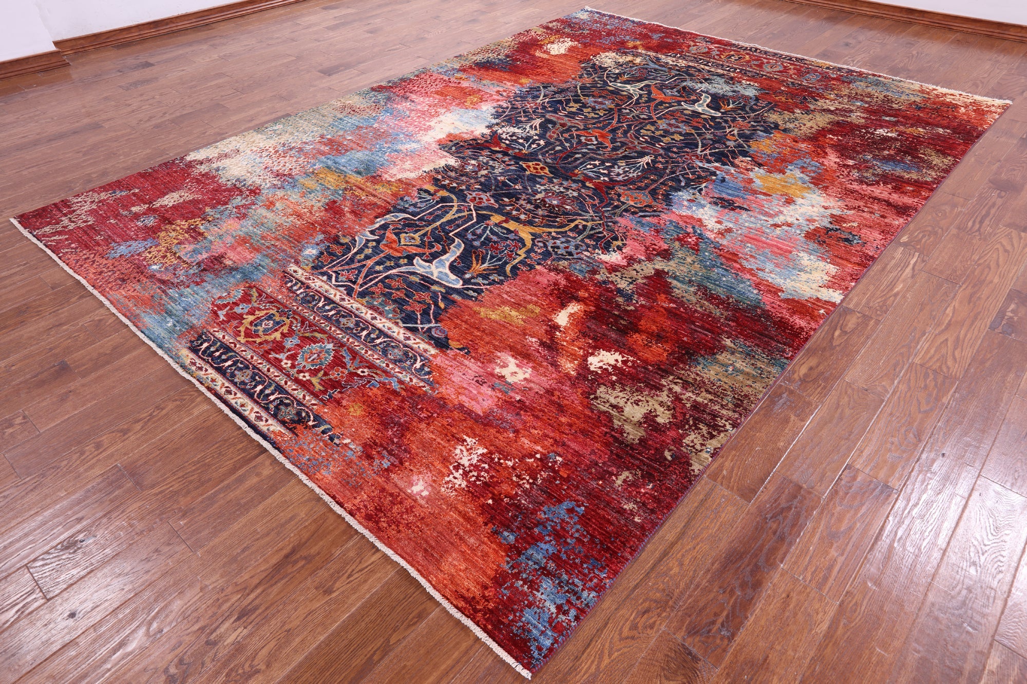 Gabbeh rugs are hand-spun wool in both the pile and the foundation, as well as all natural dyes. Simple, colorful geometric patterns, abstract scenery, child-like representations of people and animals, different colors, reds, blue, greens ,yellow, purple. Modern technology has improved the dye process to allow a wider range of colors as well as more stable and easier to care for colors.