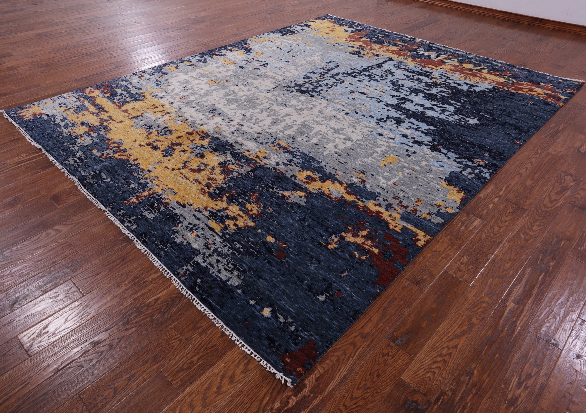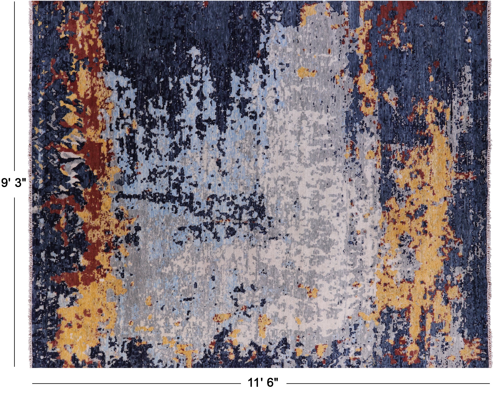 9' 3" X 11' 6" Modern Handmade Abstract Wool Rug - Q11742