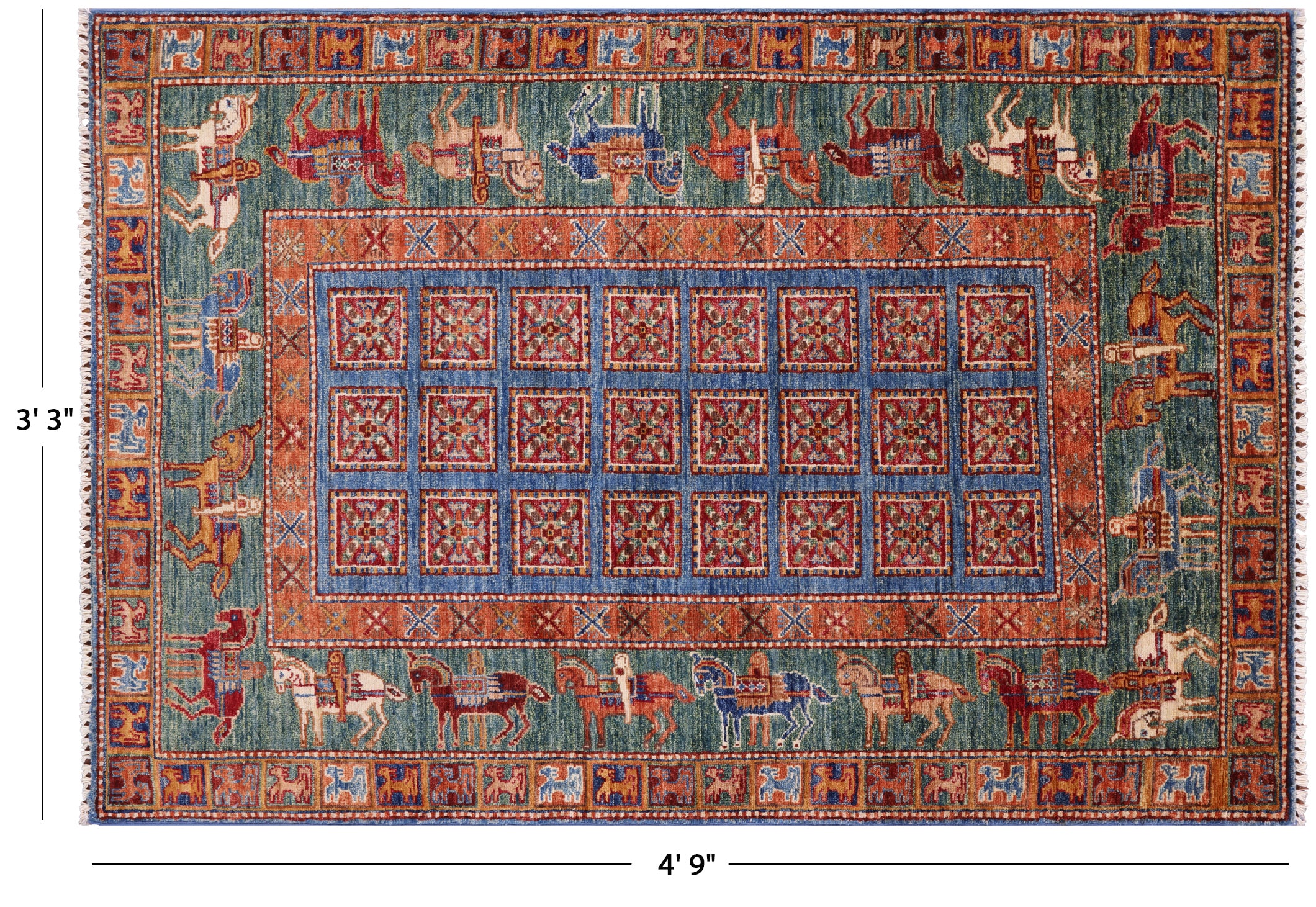 Pazyryk Historical Design Hand Knotted Rug 3' 3" X 4' 9" - Q10859