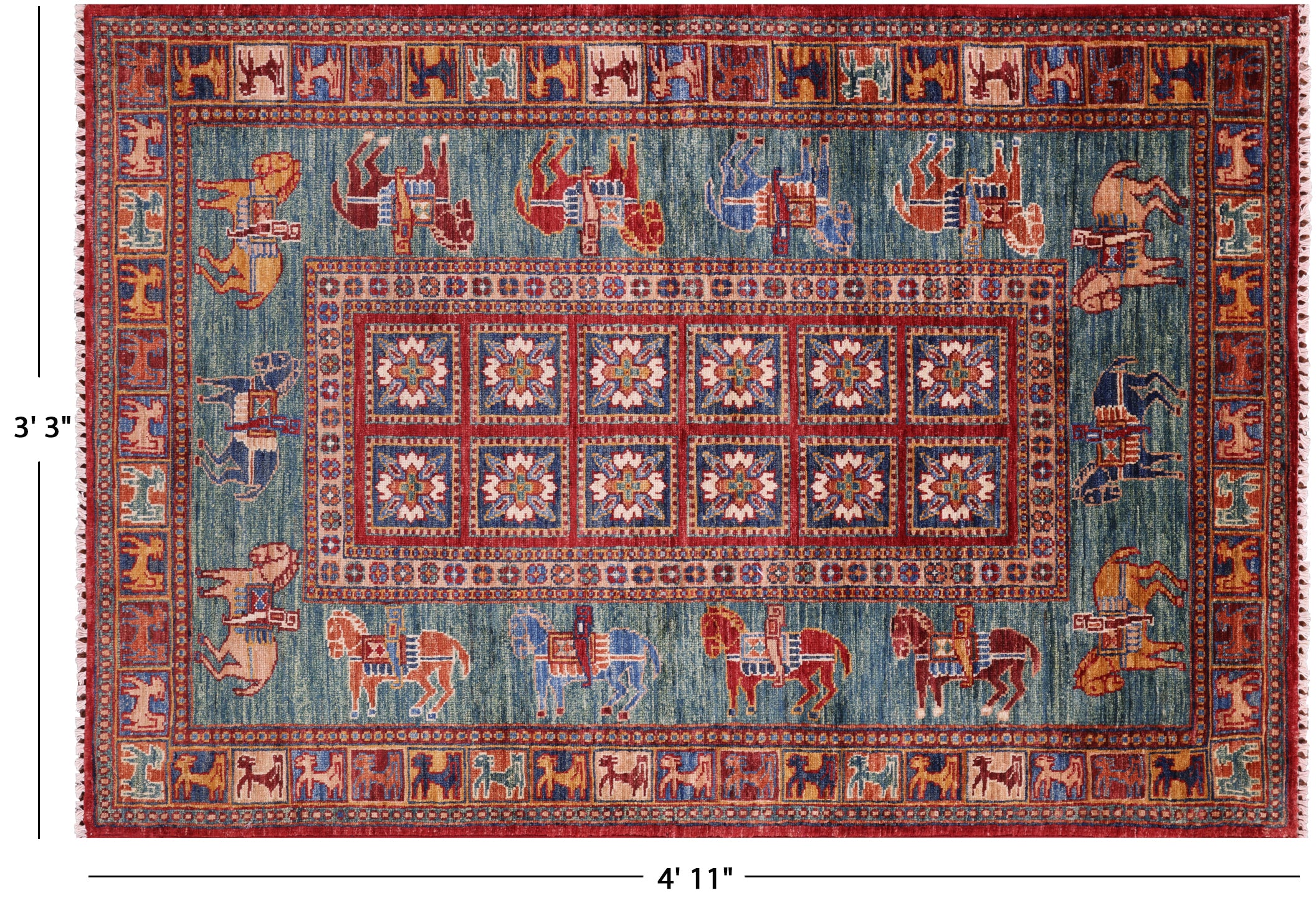 3' 3" X 4' 11" Pazyryk Historical Design Hand-Knotted Rug - Q10861