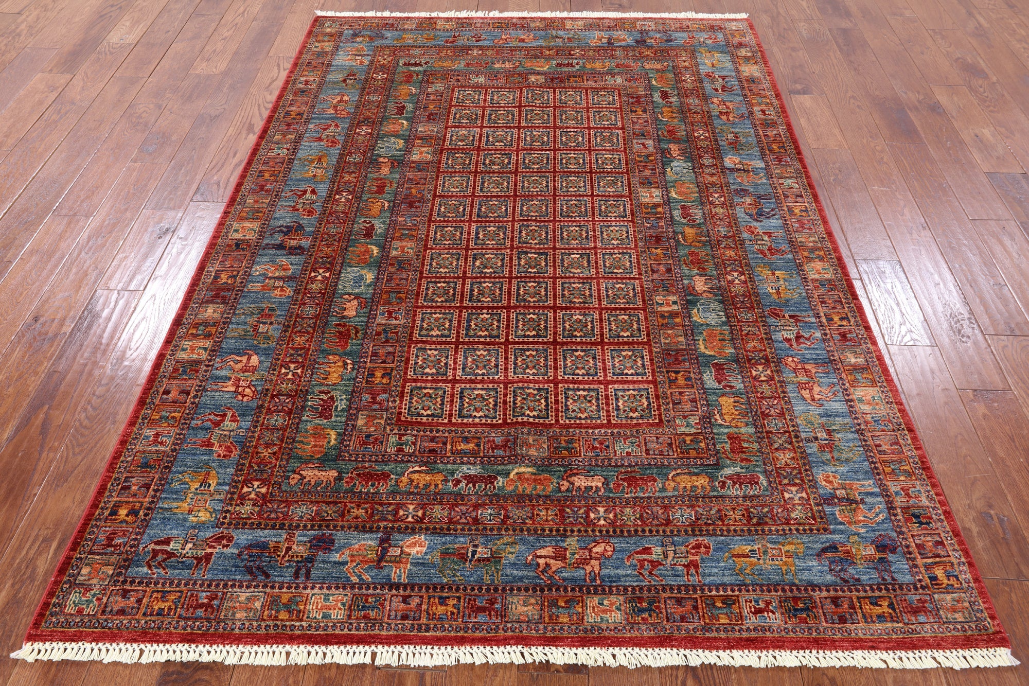 5' 10" X 8' 2" Pazyryk Historical Design Handmade Wool Area Rug - P9983 is backordered and will ship as soon as it is back in stock.