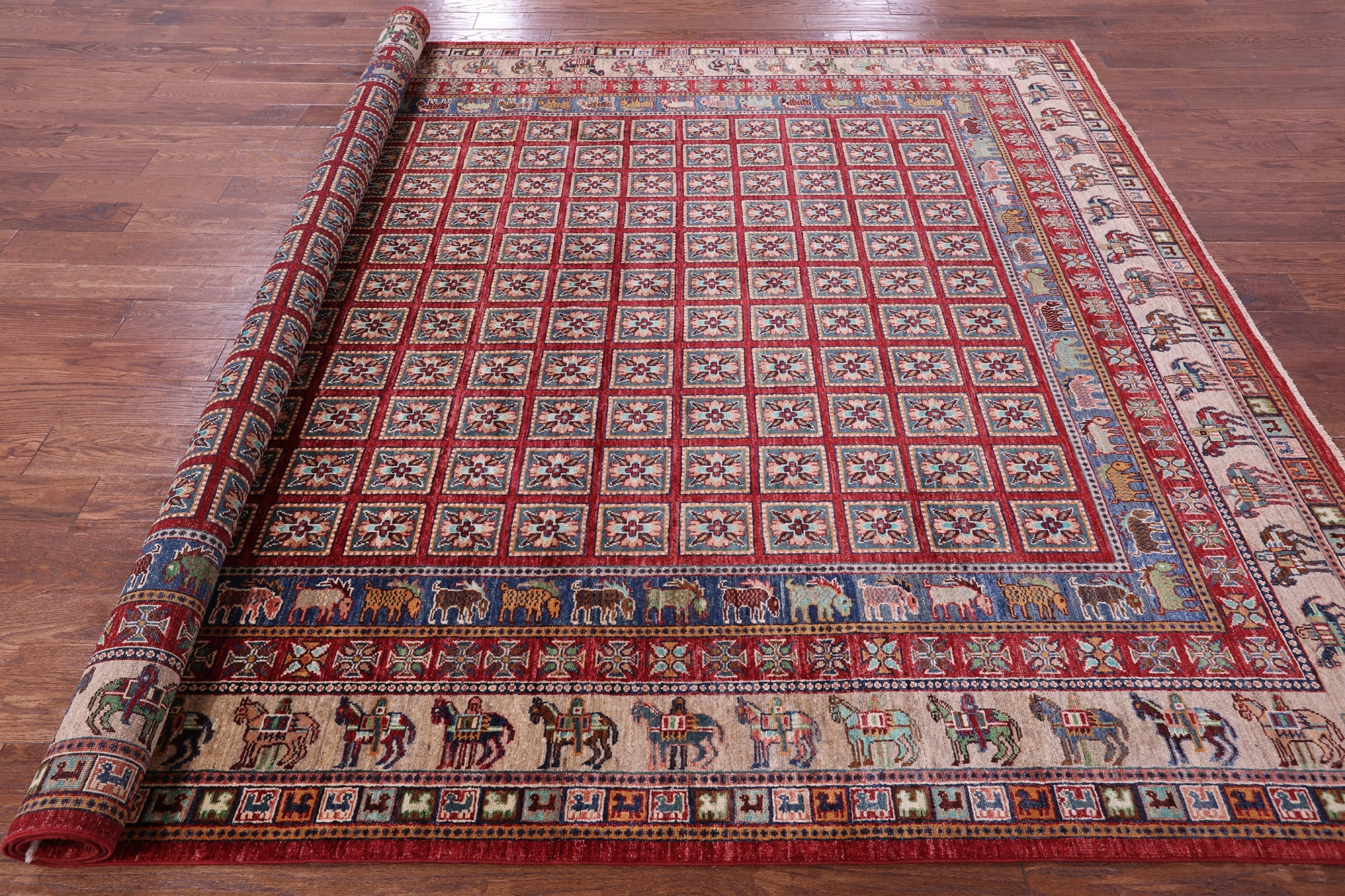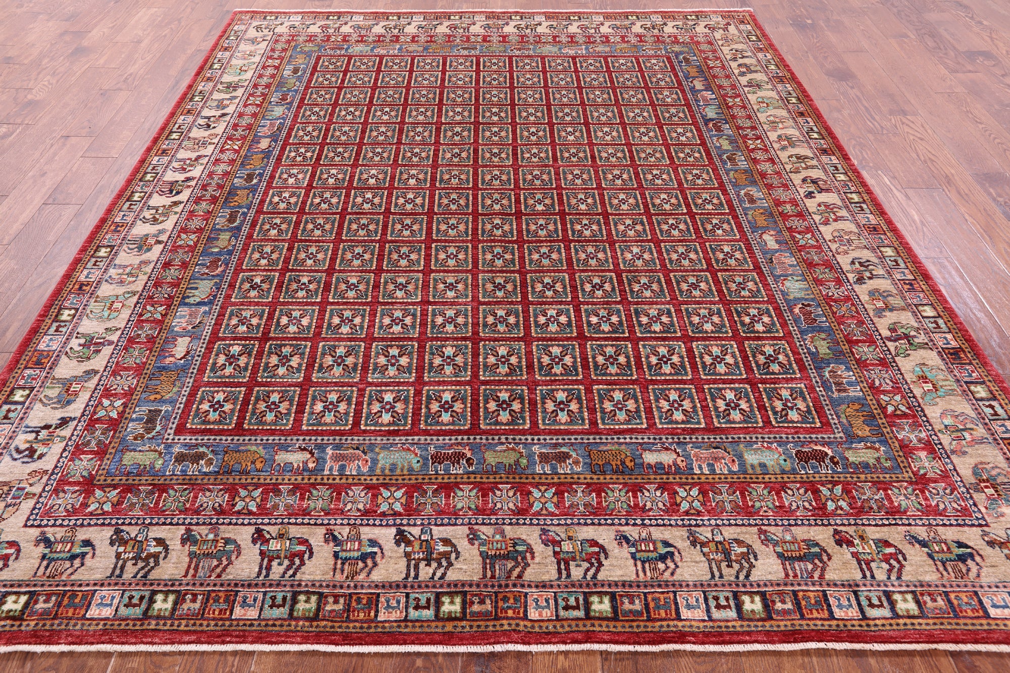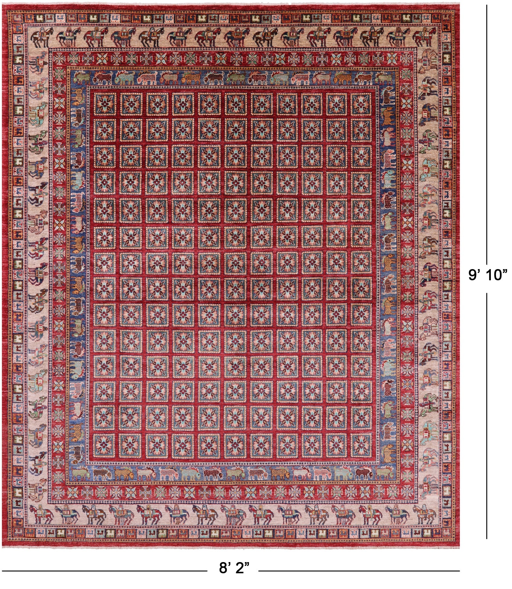 8' 2" X 9' 10" Pazyryk Historical Design Handmade Wool Rug - Q20570 is backordered and will ship as soon as it is back in stock.