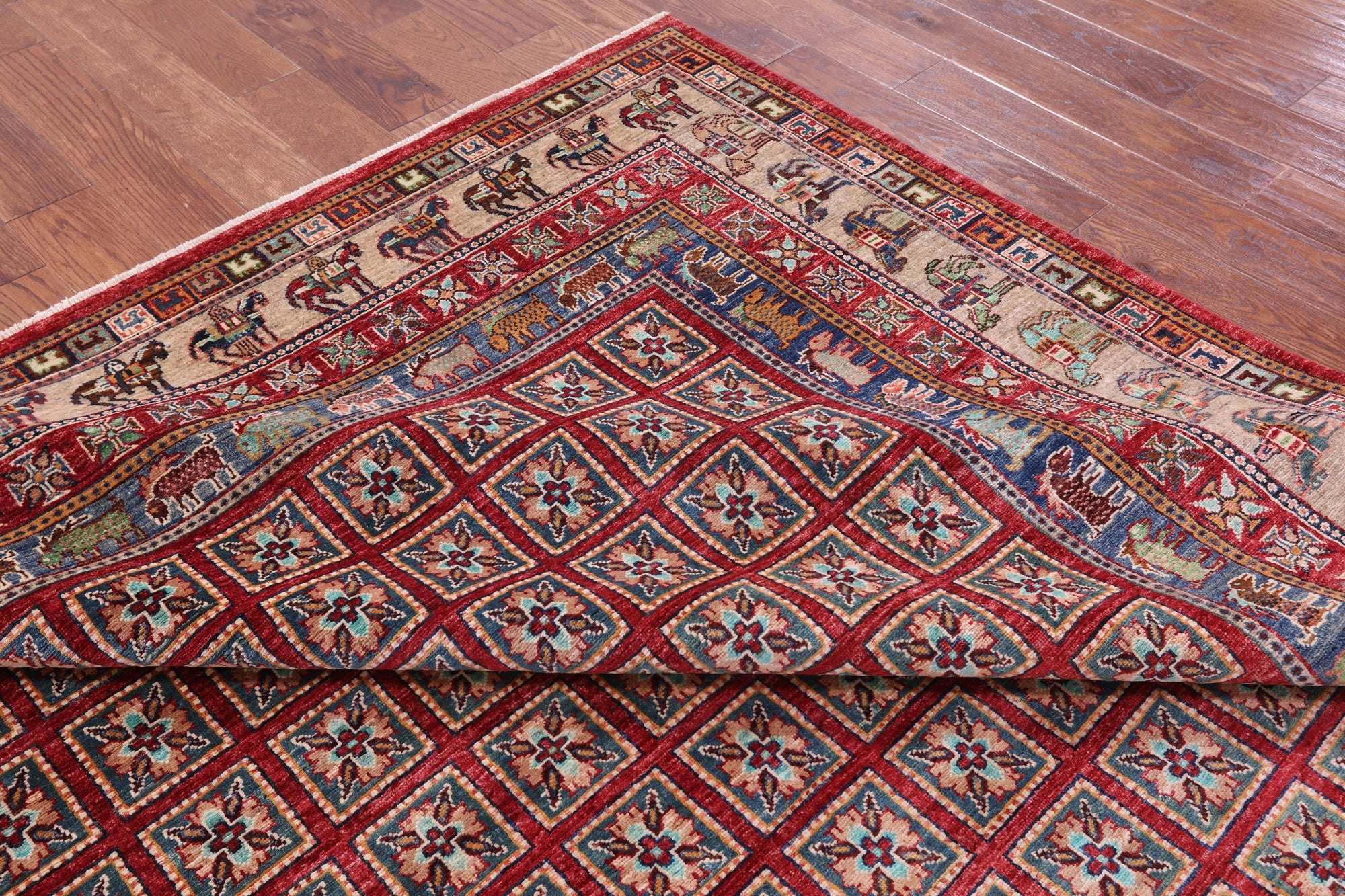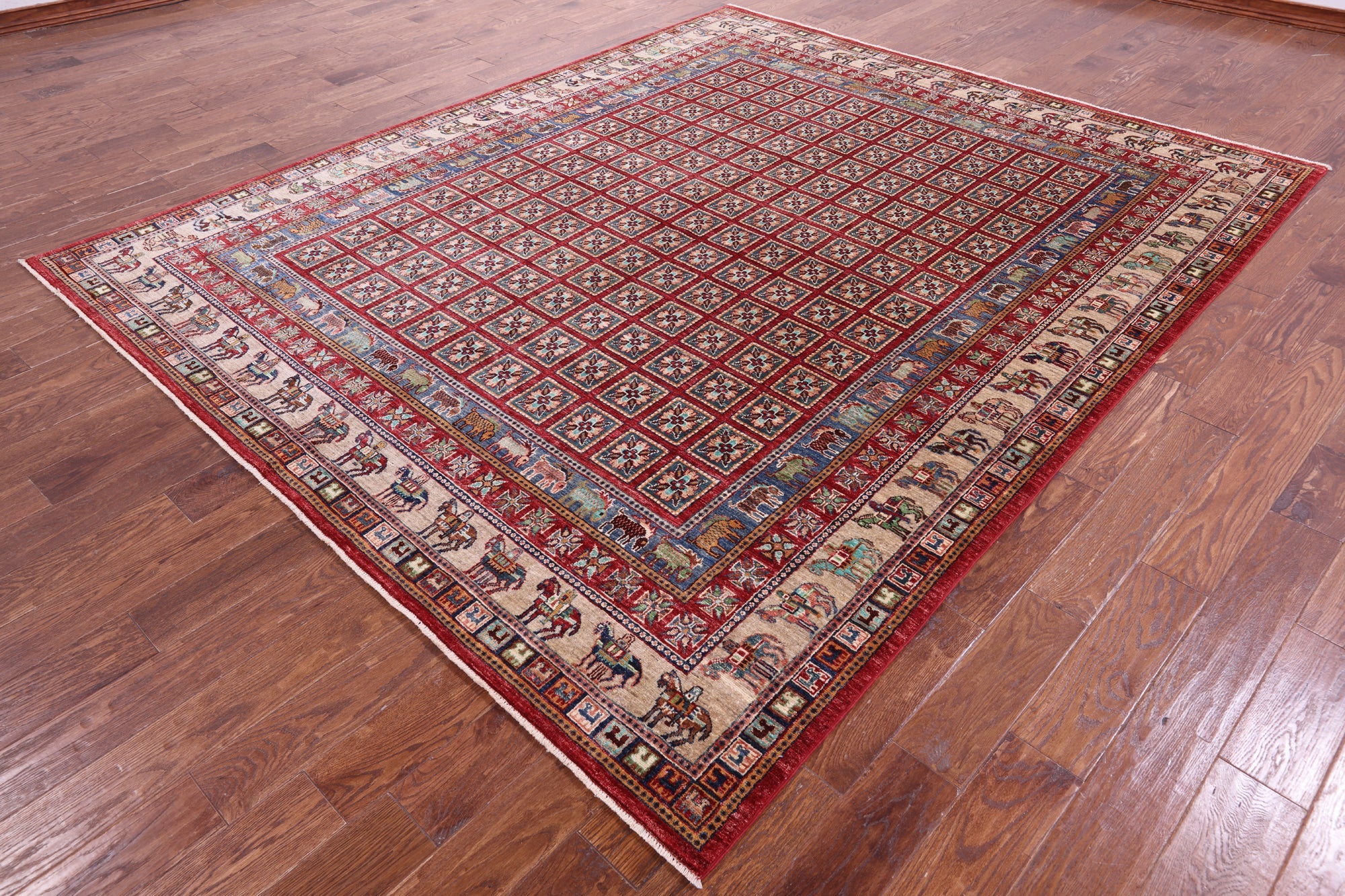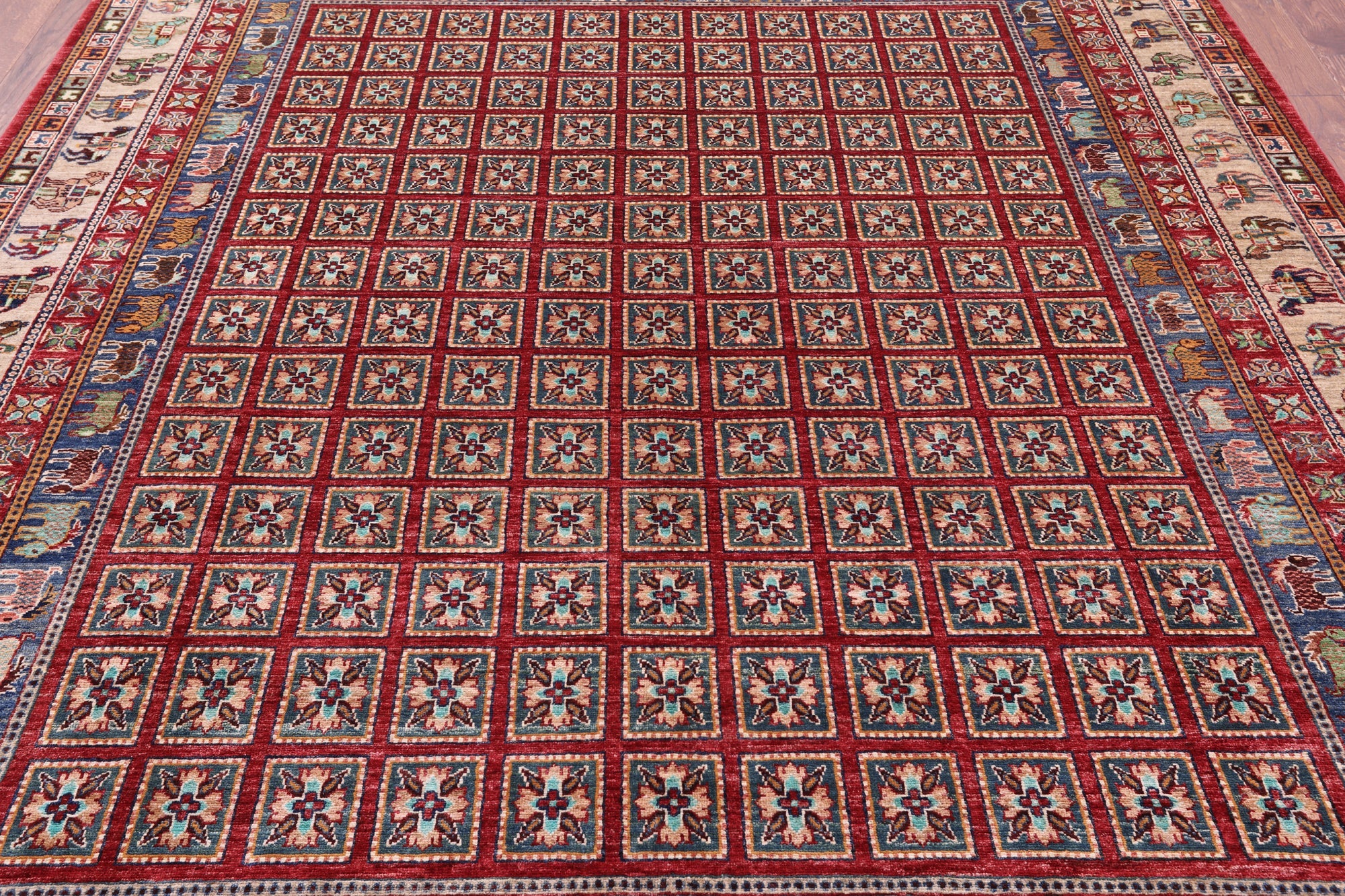 8' 2" X 9' 10" Pazyryk Historical Design Handmade Wool Rug - Q20570 is backordered and will ship as soon as it is back in stock.