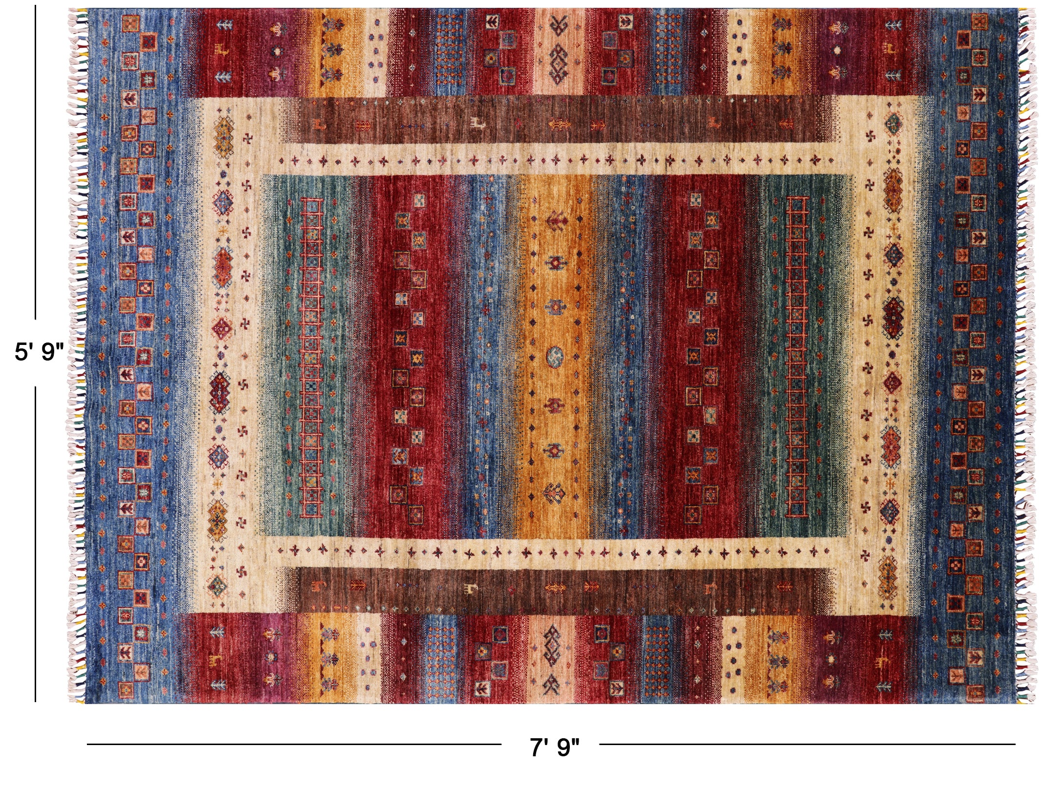 Persian Gabbeh Hand Knotted Wool Rug 5' 9" X 7' 9" - P9197