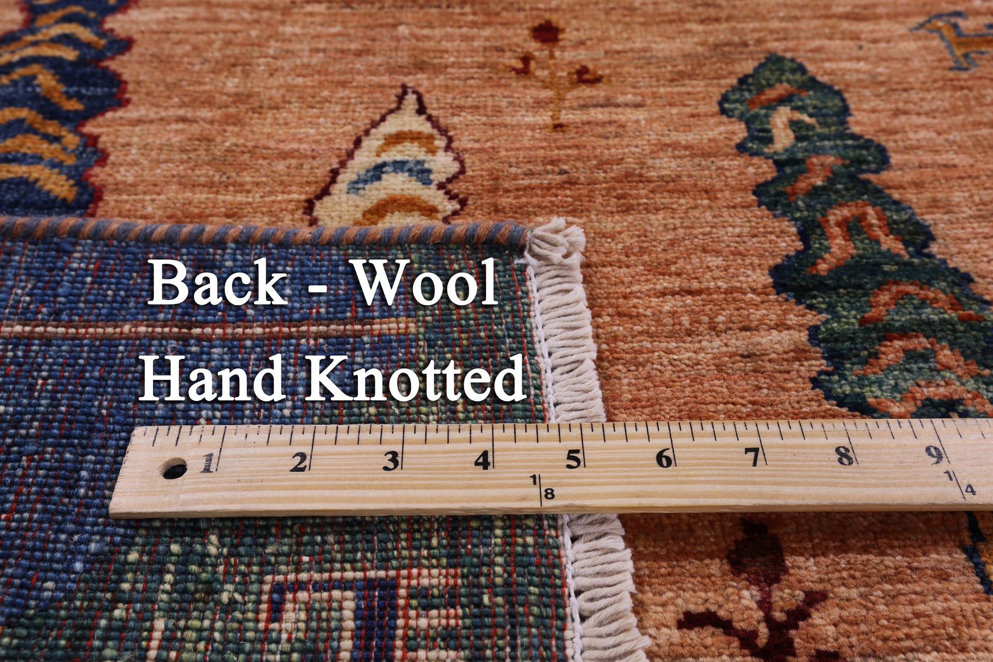 This is a genuine hand knotted cut pile rug, not tufted, hooked, or machine made. All we do is hand knotted.