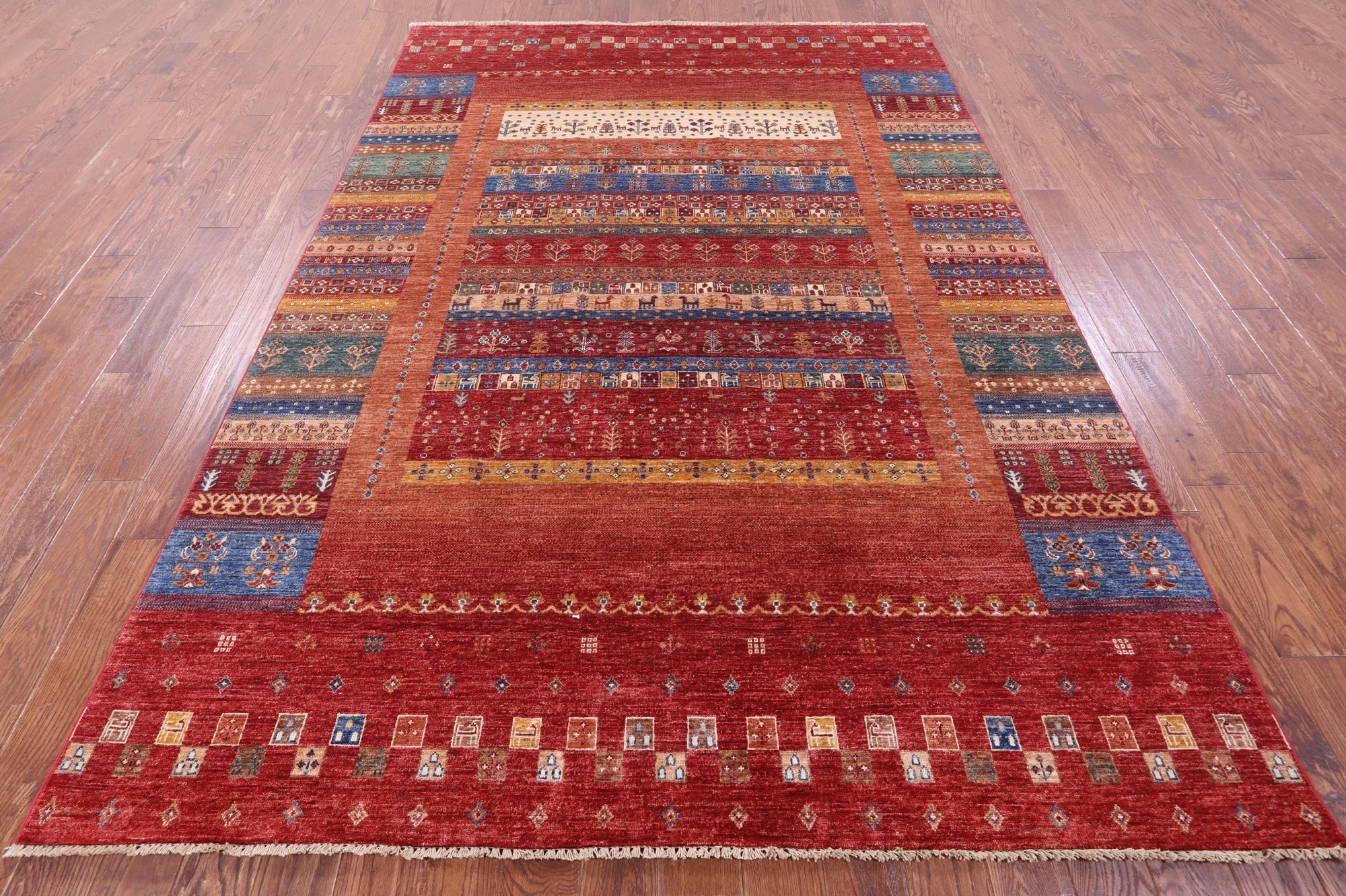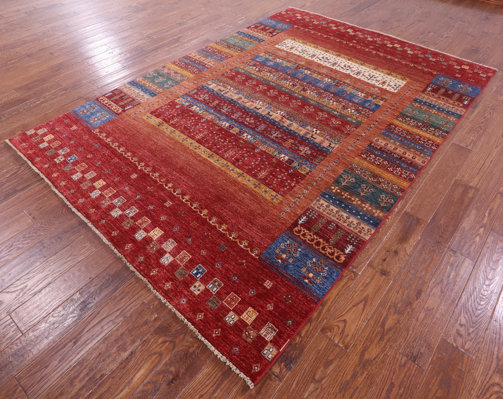 7' 0" X 10' 0" Persian Gabbeh Tribal Hand Knotted Rug - Q18273 is backordered and will ship as soon as it is back in stock.