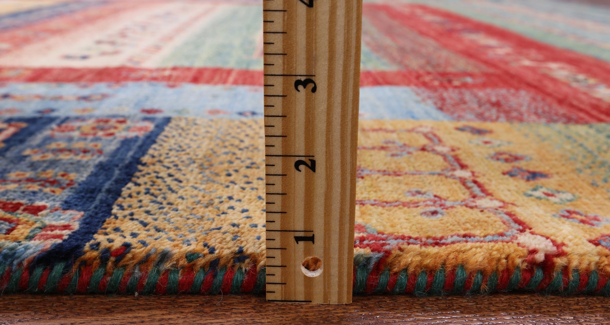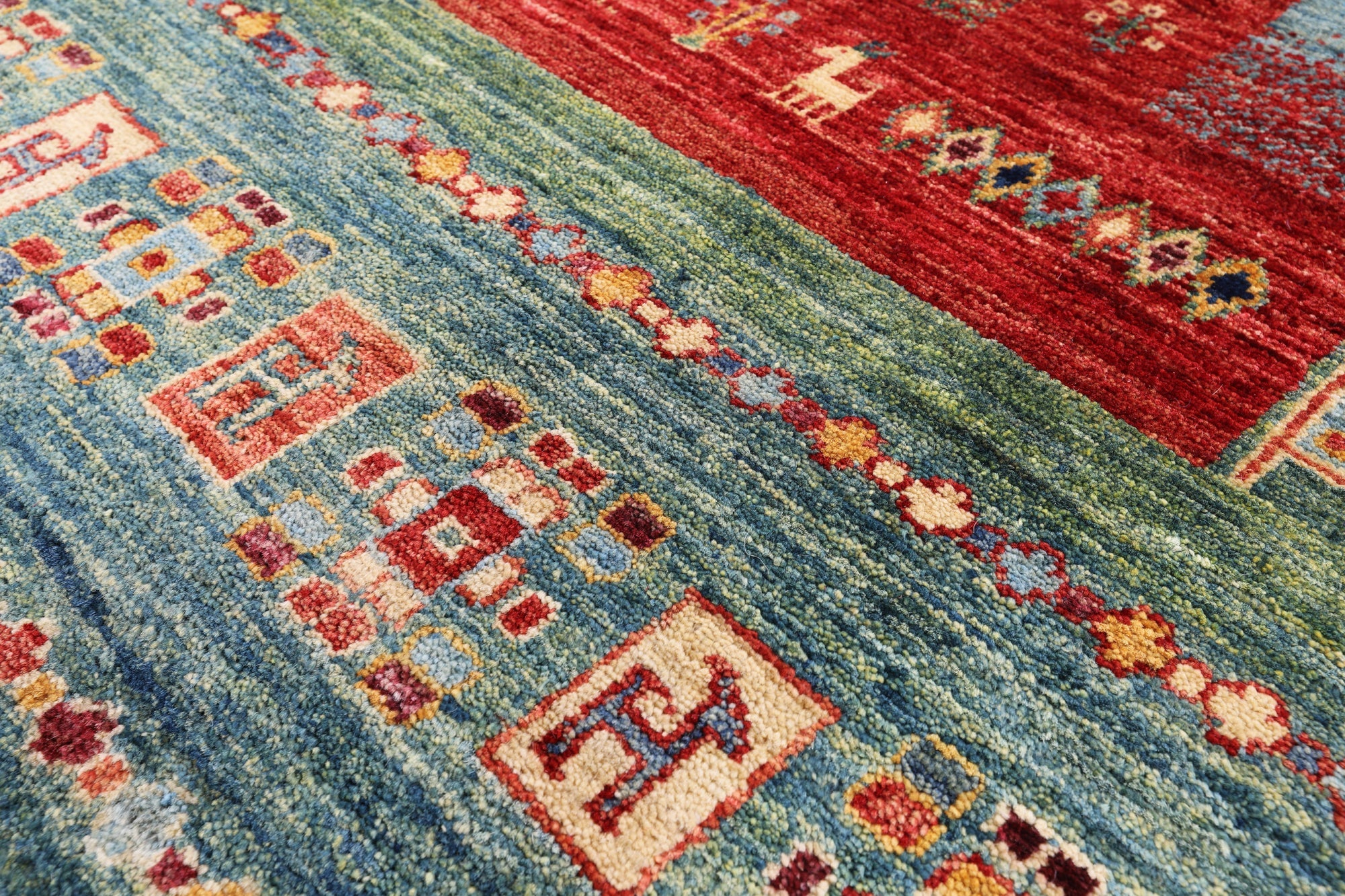 The hand-knotted Gabbeh rug epitomizes artisanal craftsmanship. Meticulously woven with naturally dyed wool, it boasts geometric patterns and tribal motifs, telling a unique cultural story. With a dense pile for comfort and a versatile aesthetic, the handmade Gabbeh rug is both a functional and artistic addition to any space.