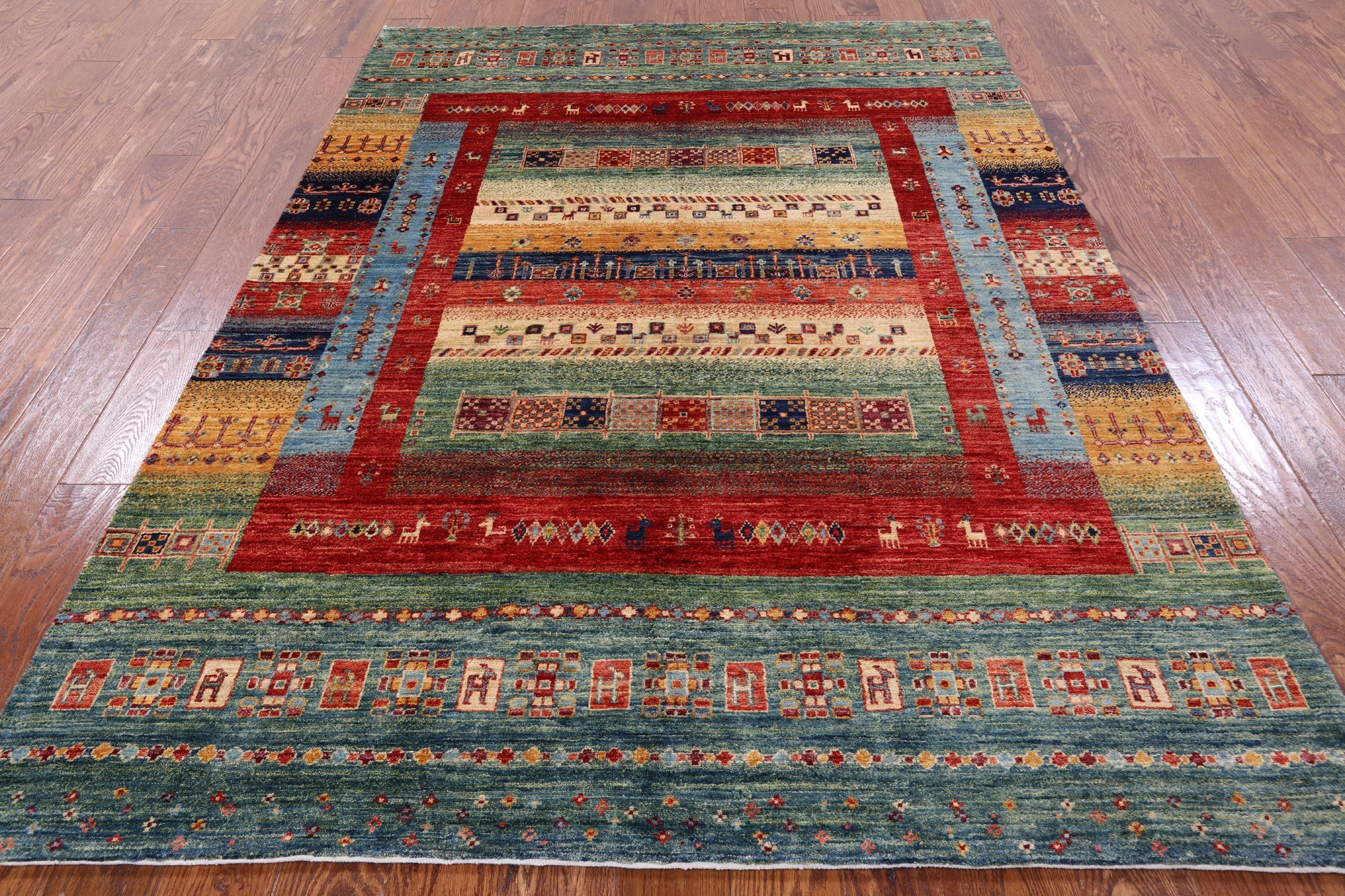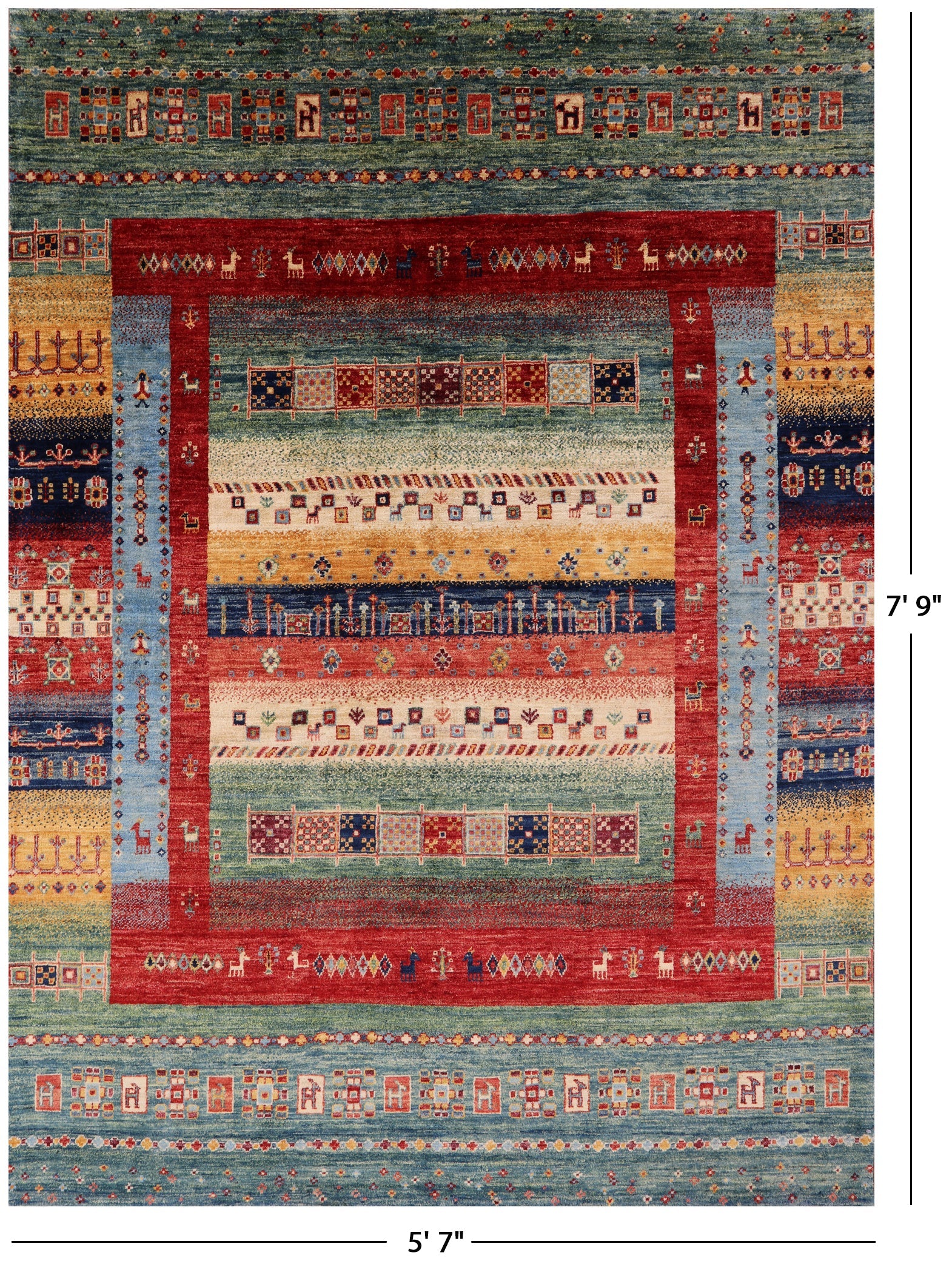 Persian Gabbeh Tribal Hand-Knotted Rug 5' 7" X 7' 9" - Q6593