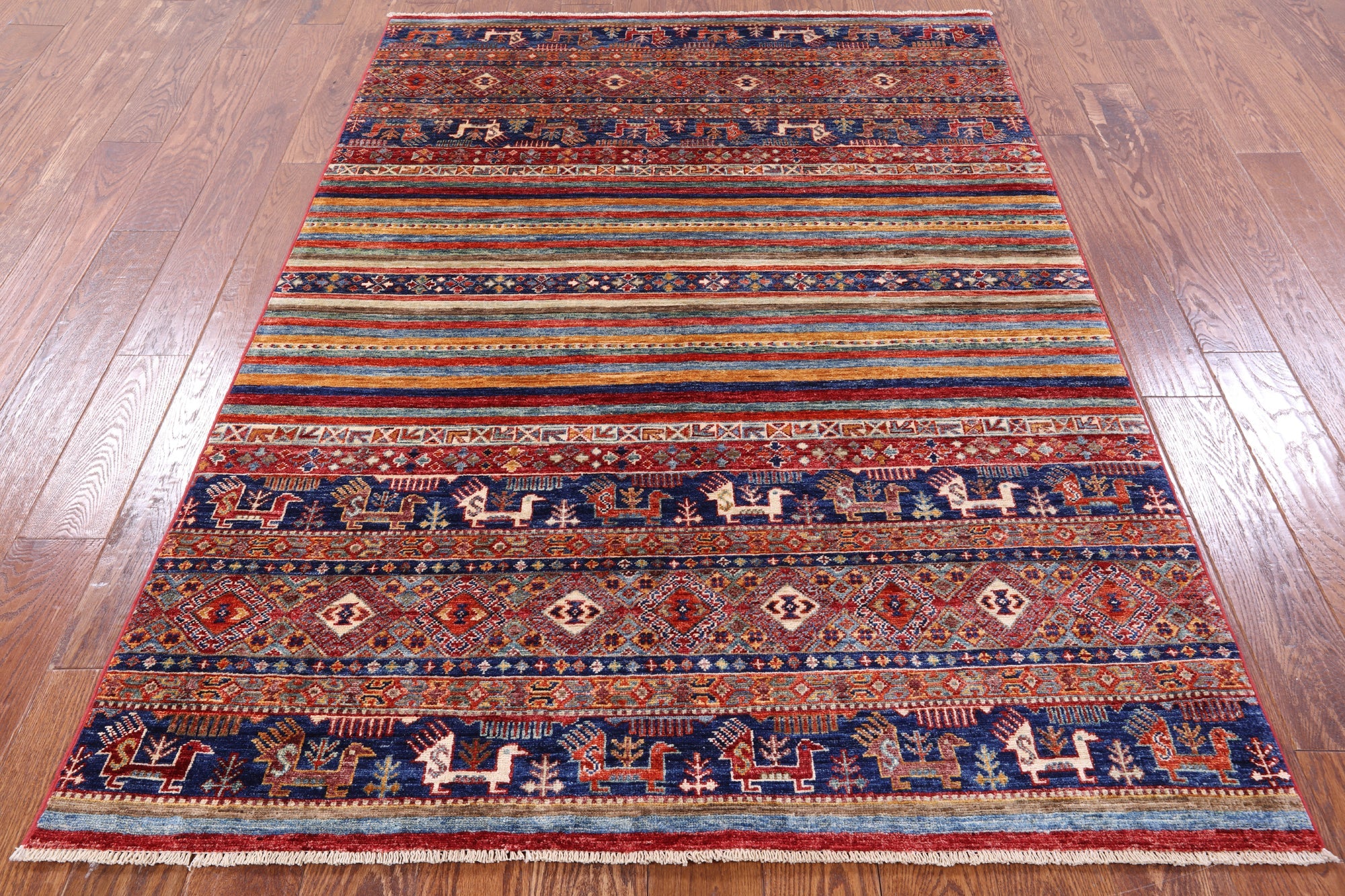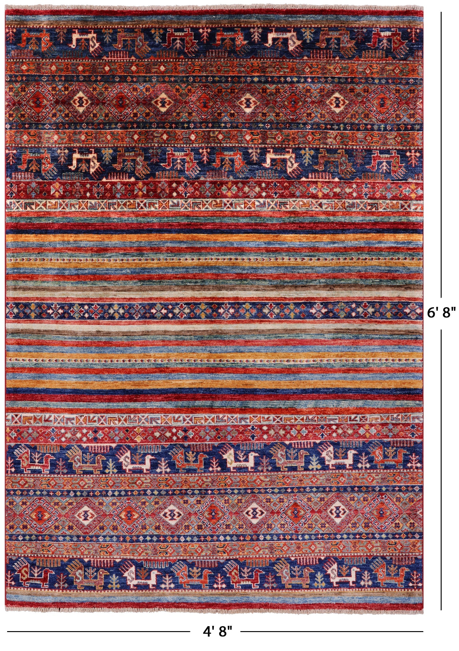 Persian Gabbeh Tribal Hand Knotted Rug 4' 8" X 6' 8" - Q8033