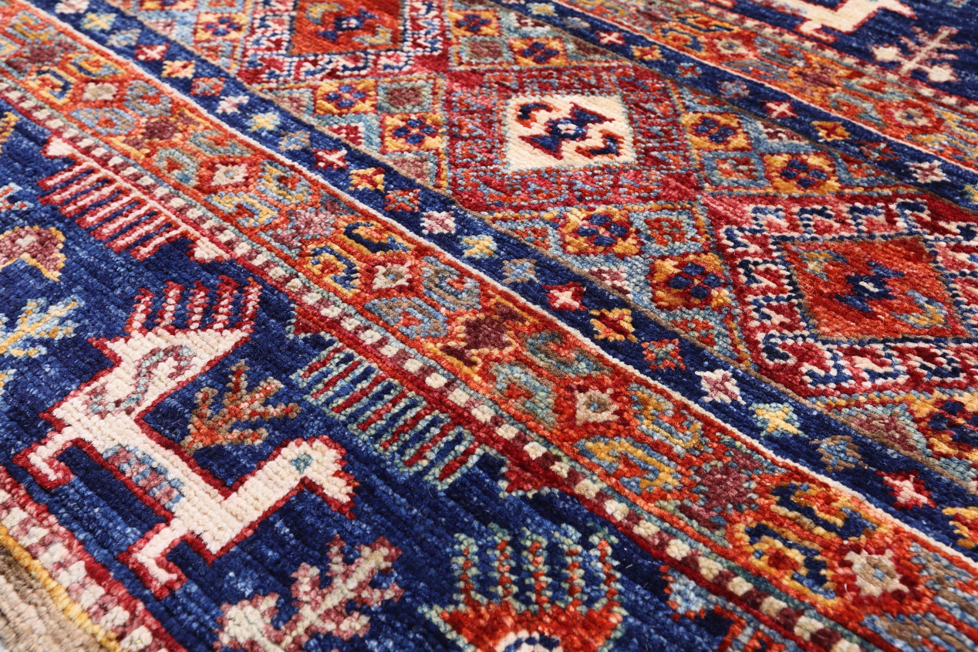 Gabbeh rugs are nothing short of simplistic and tribal, with designs consisting of primarily geometric shapes, animals, and plants. All done in a simplified way and based on the nomadic observation. Commonly brightly colored, these rugs are fun and beautiful and will add a warm touch to any home.