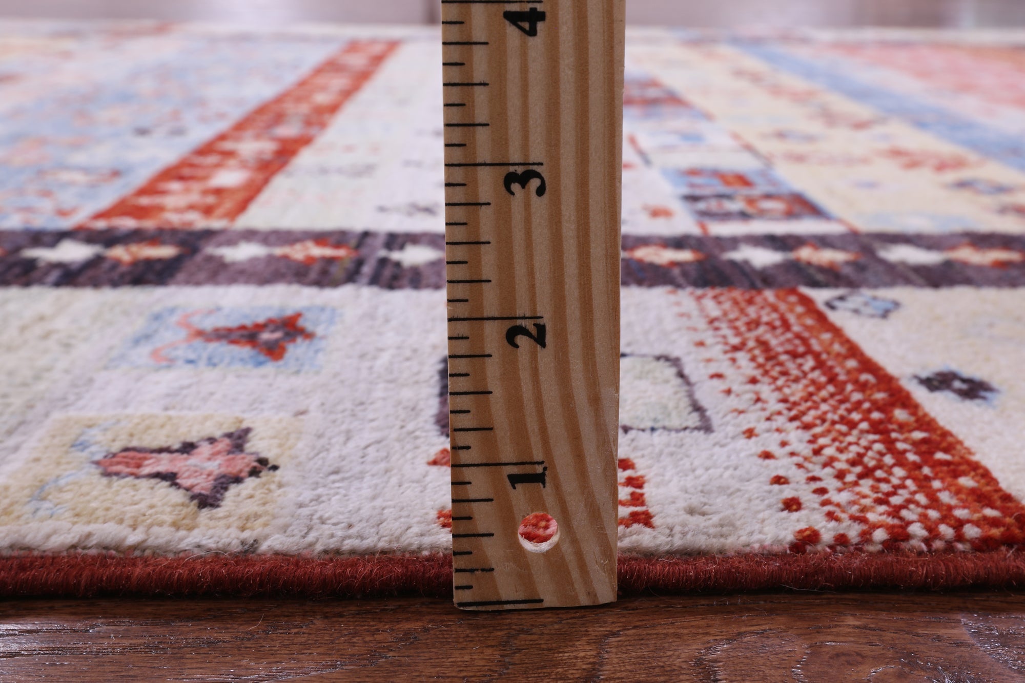 Persian Gabbeh Tribal Hand Knotted Wool Rug 5' 0" X 6' 9" - Q10375 is backordered and will ship as soon as it is back in stock.