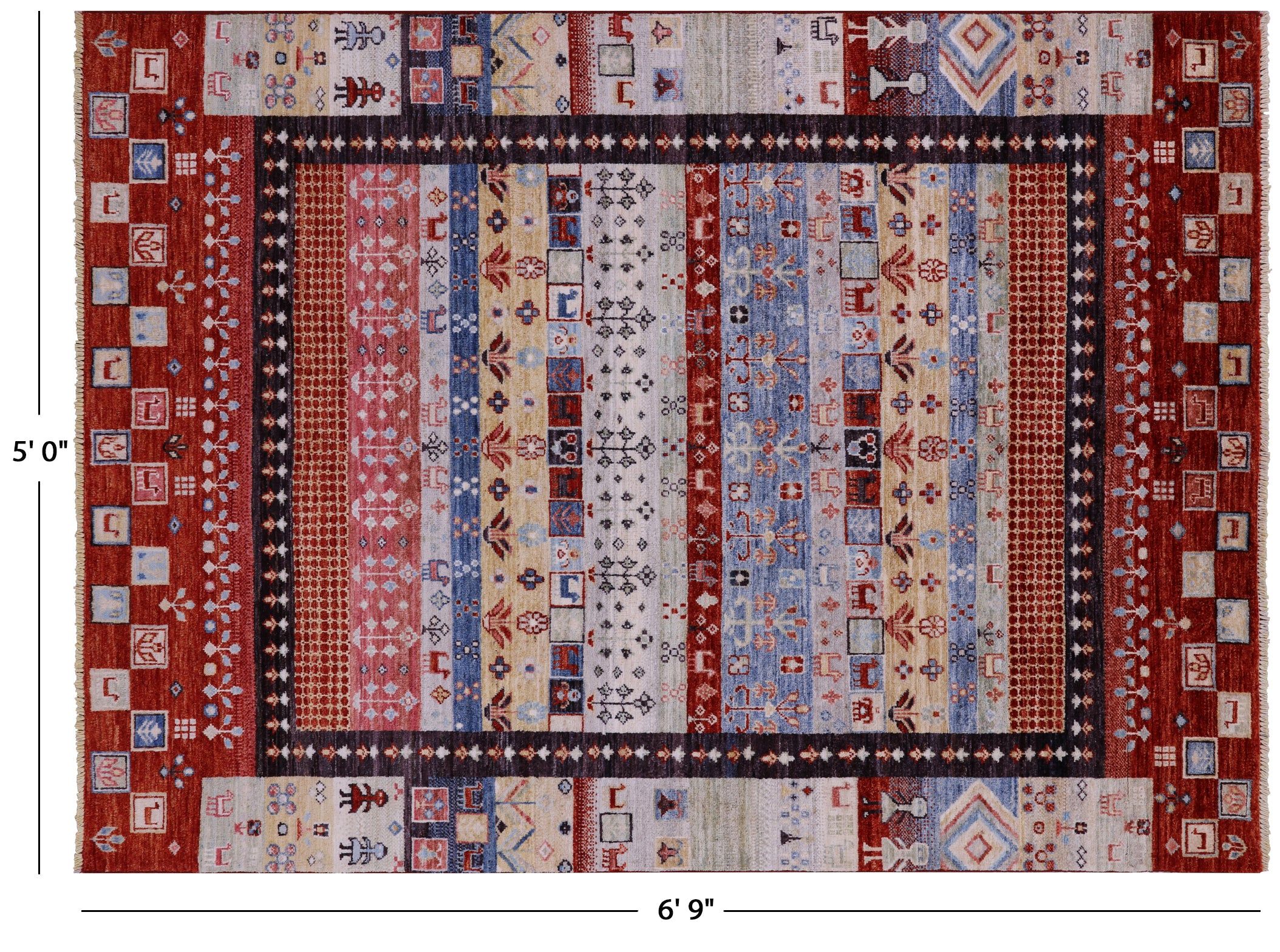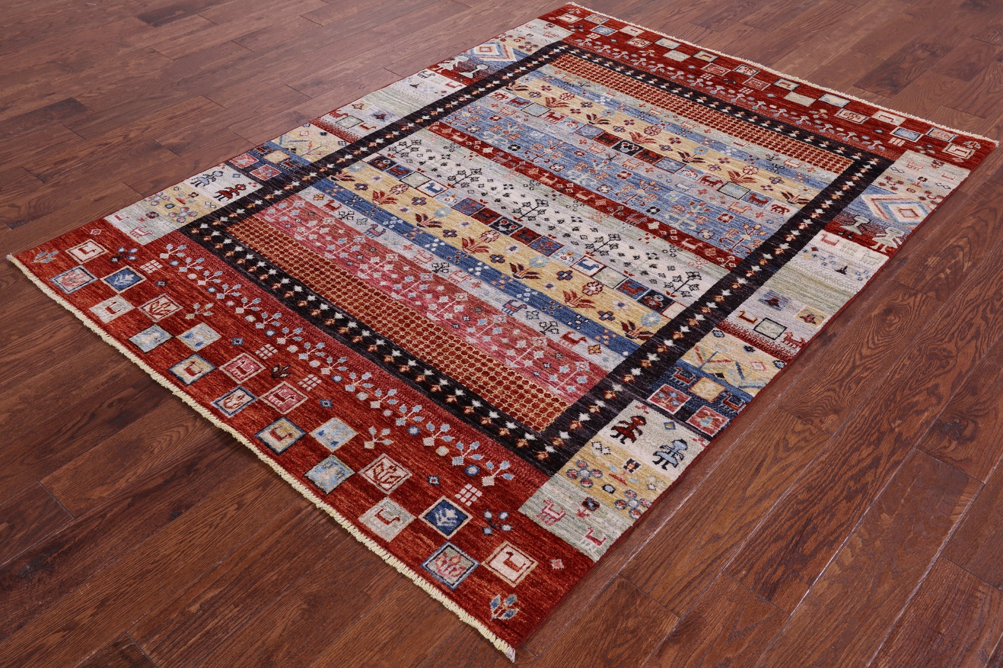 Persian Gabbeh Tribal Hand Knotted Wool Rug 5' 0" X 6' 9" - Q10375
