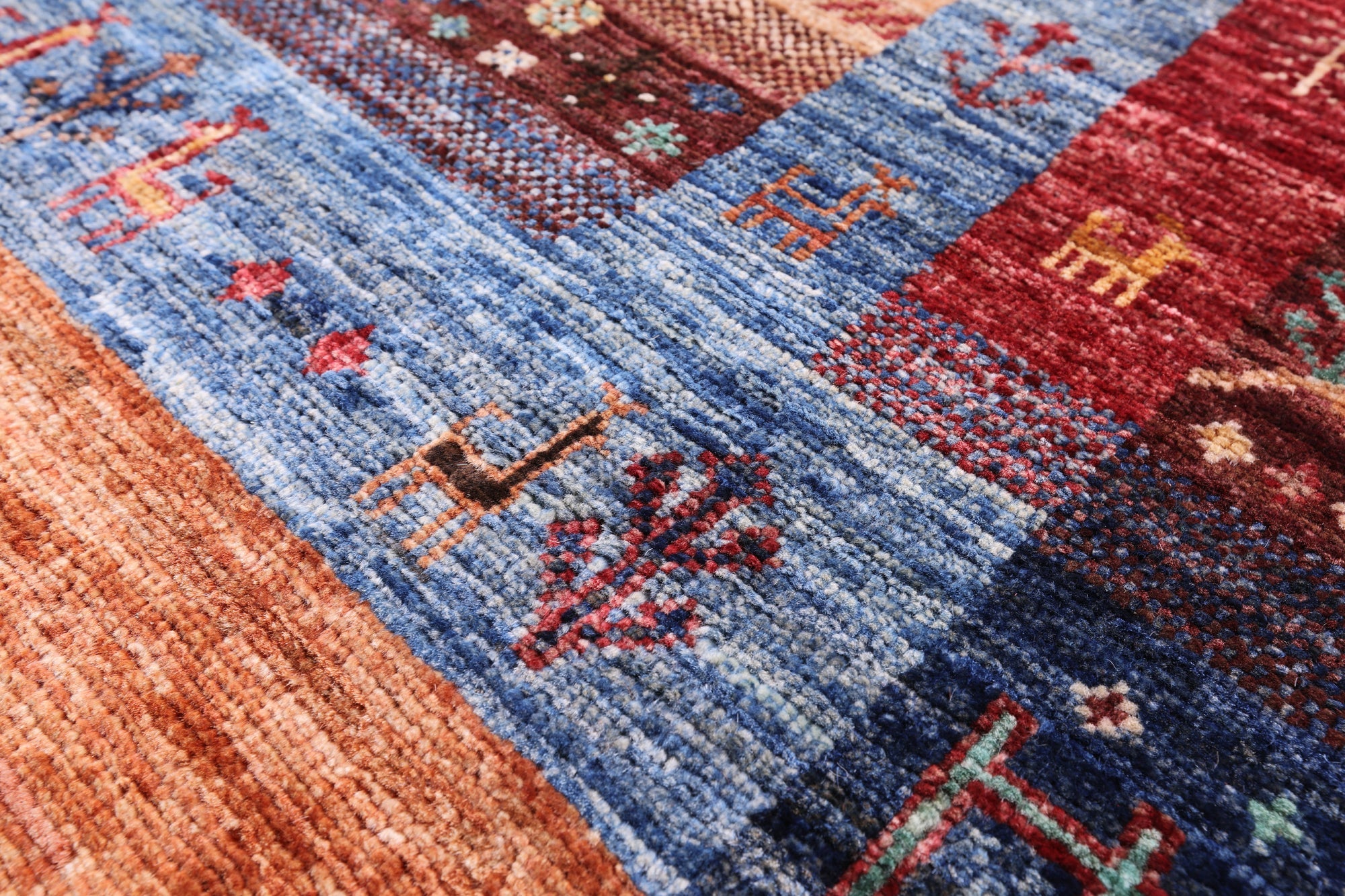 Gabbeh rugs are nothing short of simplistic and tribal, with designs consisting of primarily geometric shapes, animals, and plants. All done in a simplified way and based on the nomadic observation. Commonly brightly colored, these rugs are fun and beautiful and will add a warm touch to any home.