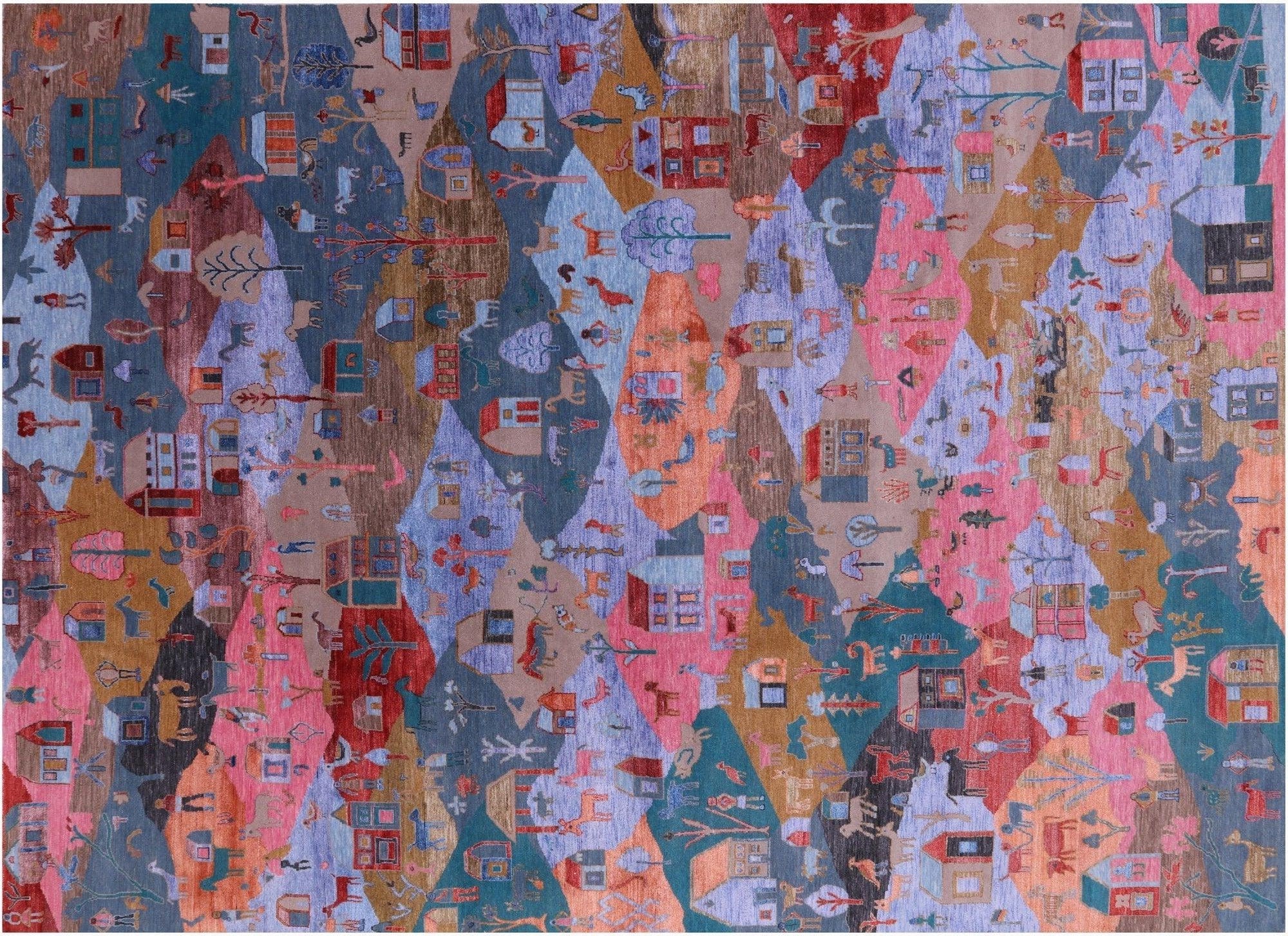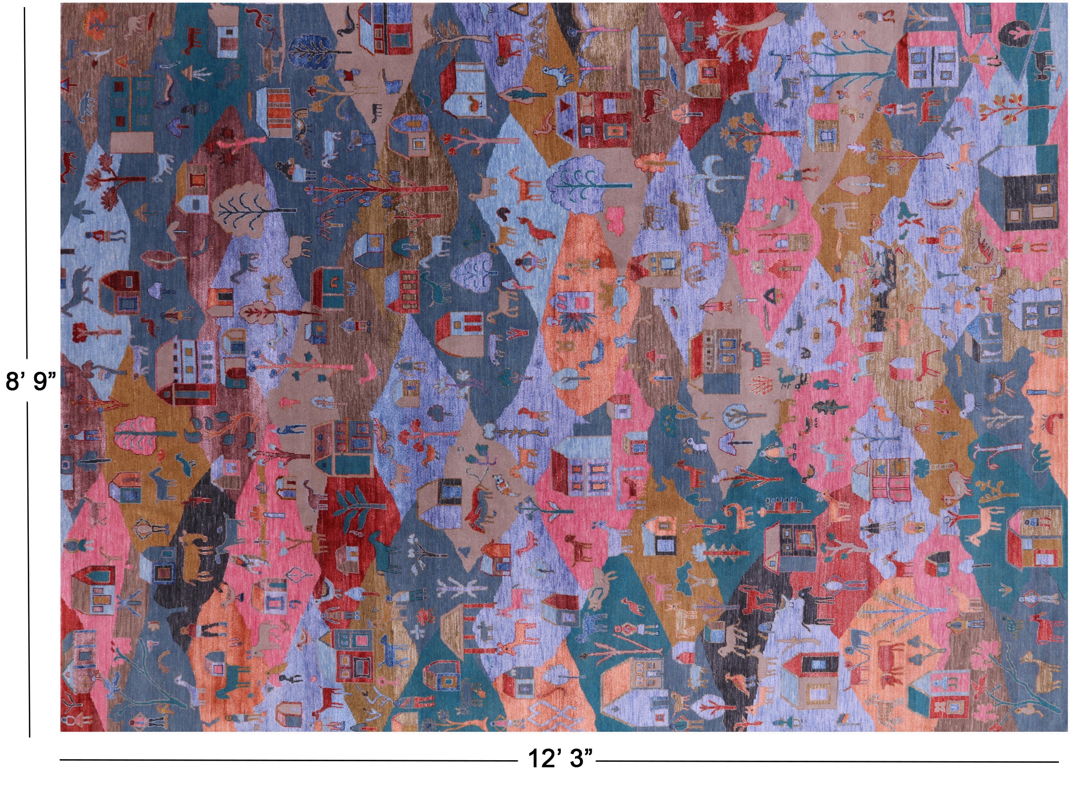 8' 9" X 12' 3" Persian Gabbeh Tribal Handmade Wool & Silk Rug - Q22606