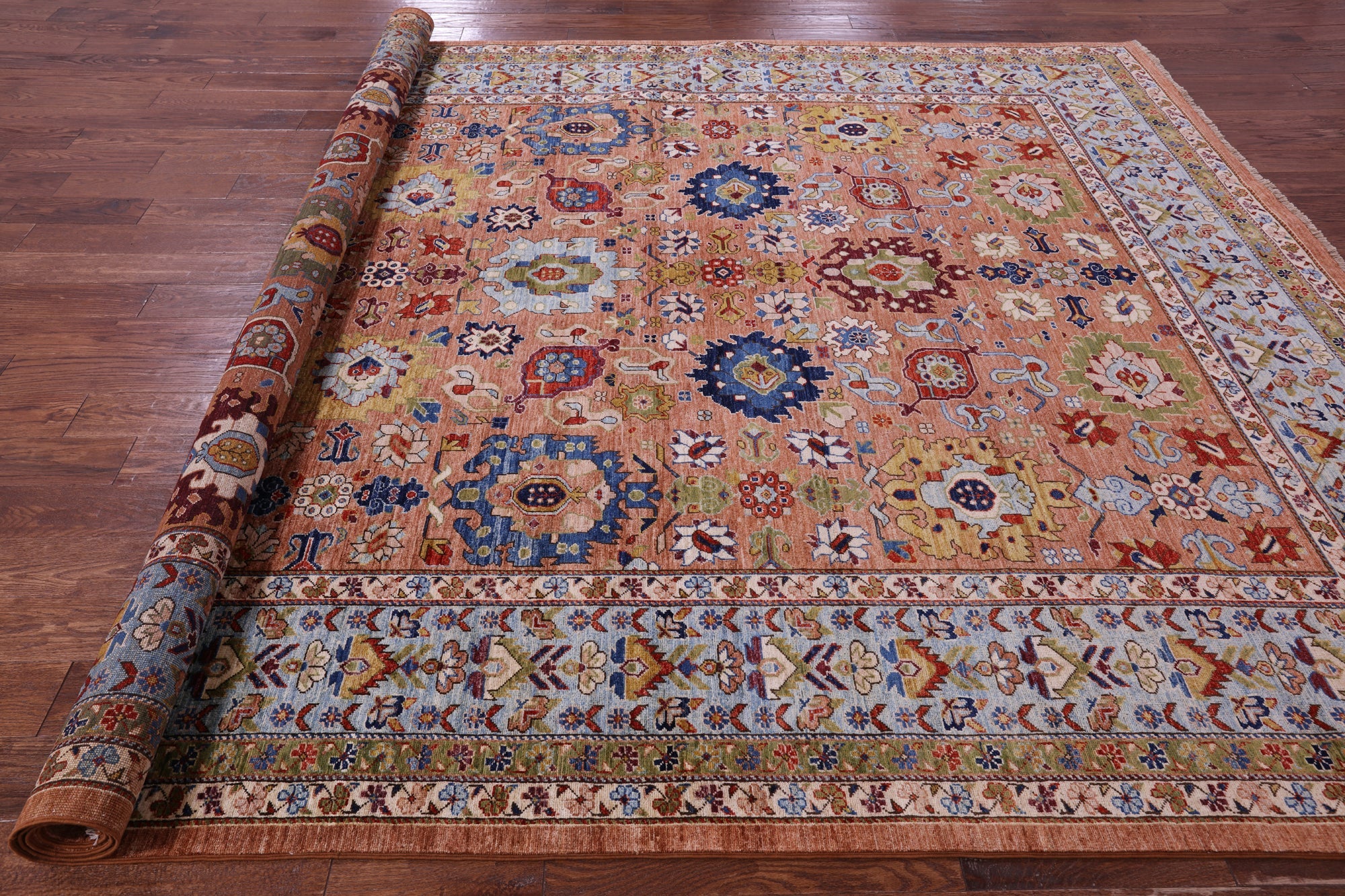 Our Persian Hand-Knotted Heriz Serapi Rug is a work of art that will add elegance and sophistication to any space. Made by skilled artisans using traditional techniques, this rug is a true masterpiece that showcases the beauty and craftsmanship of Persian rug-making.