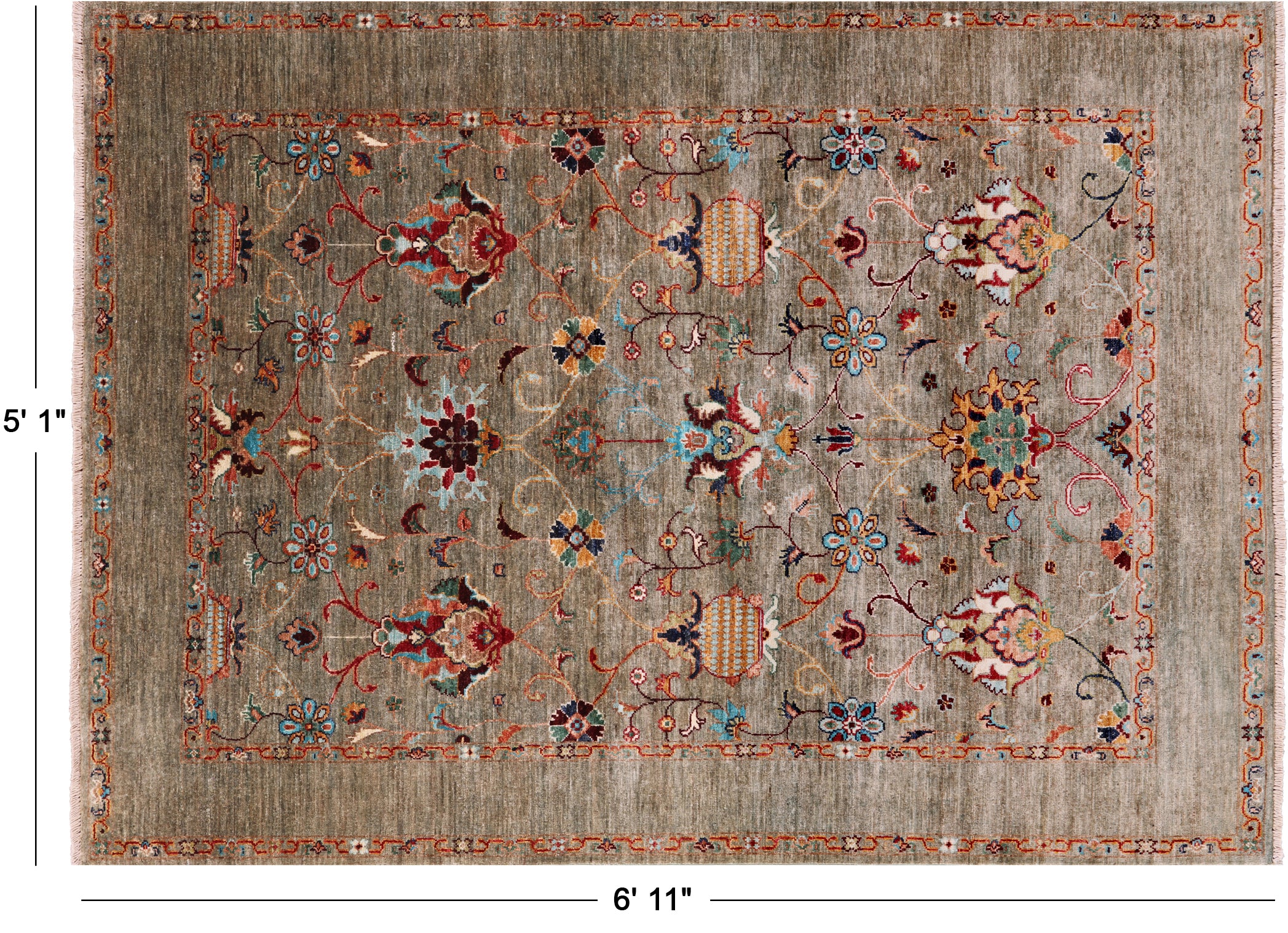 Persian Tabriz Hand-Knotted Rug 5' 1" X 6' 11" - Q16340