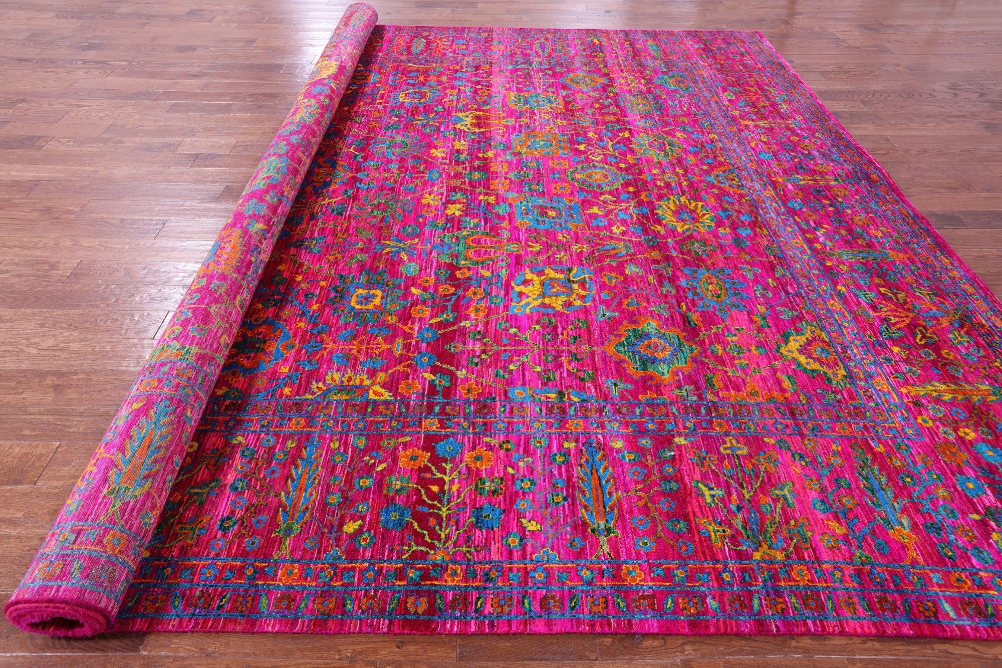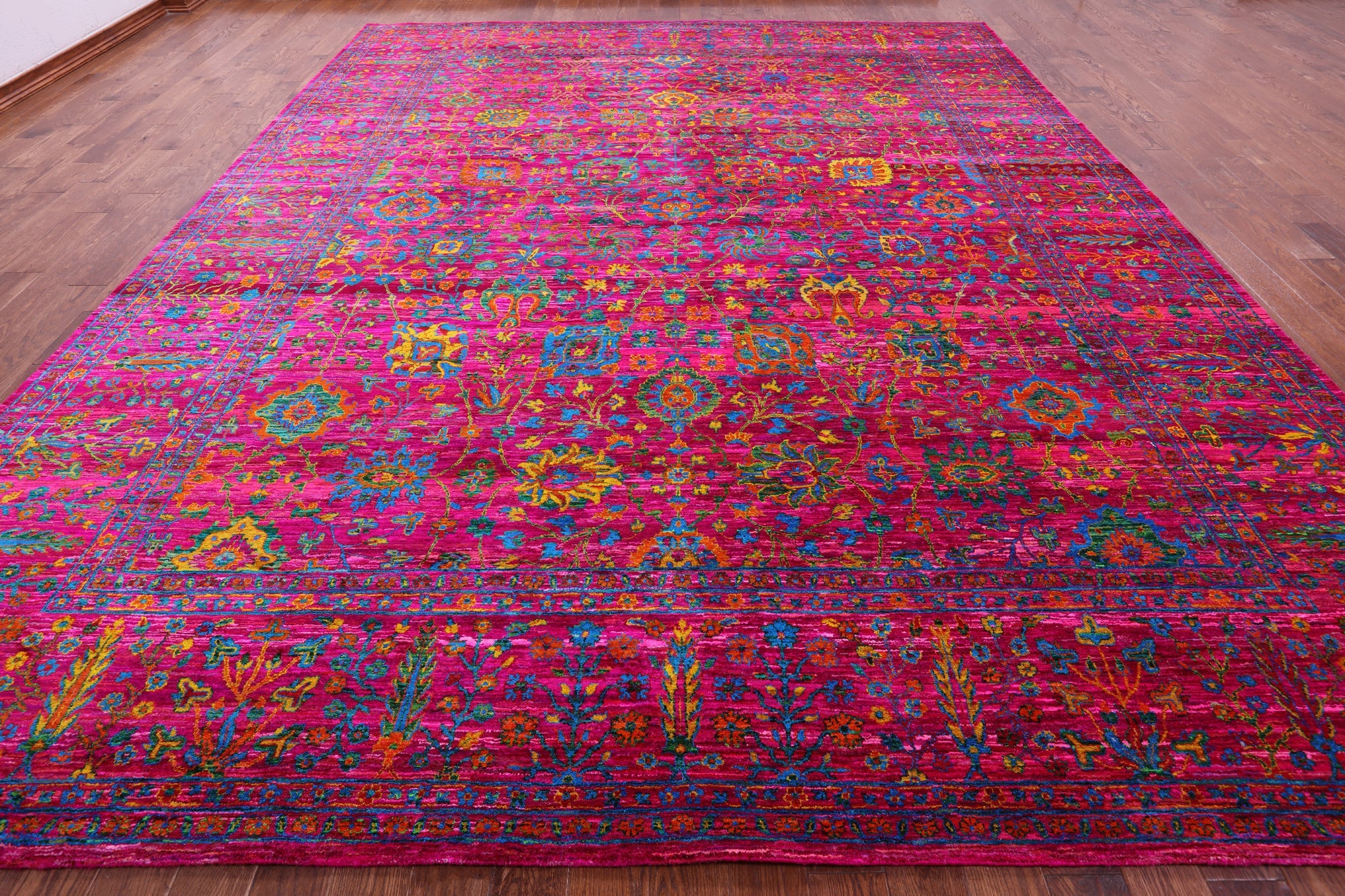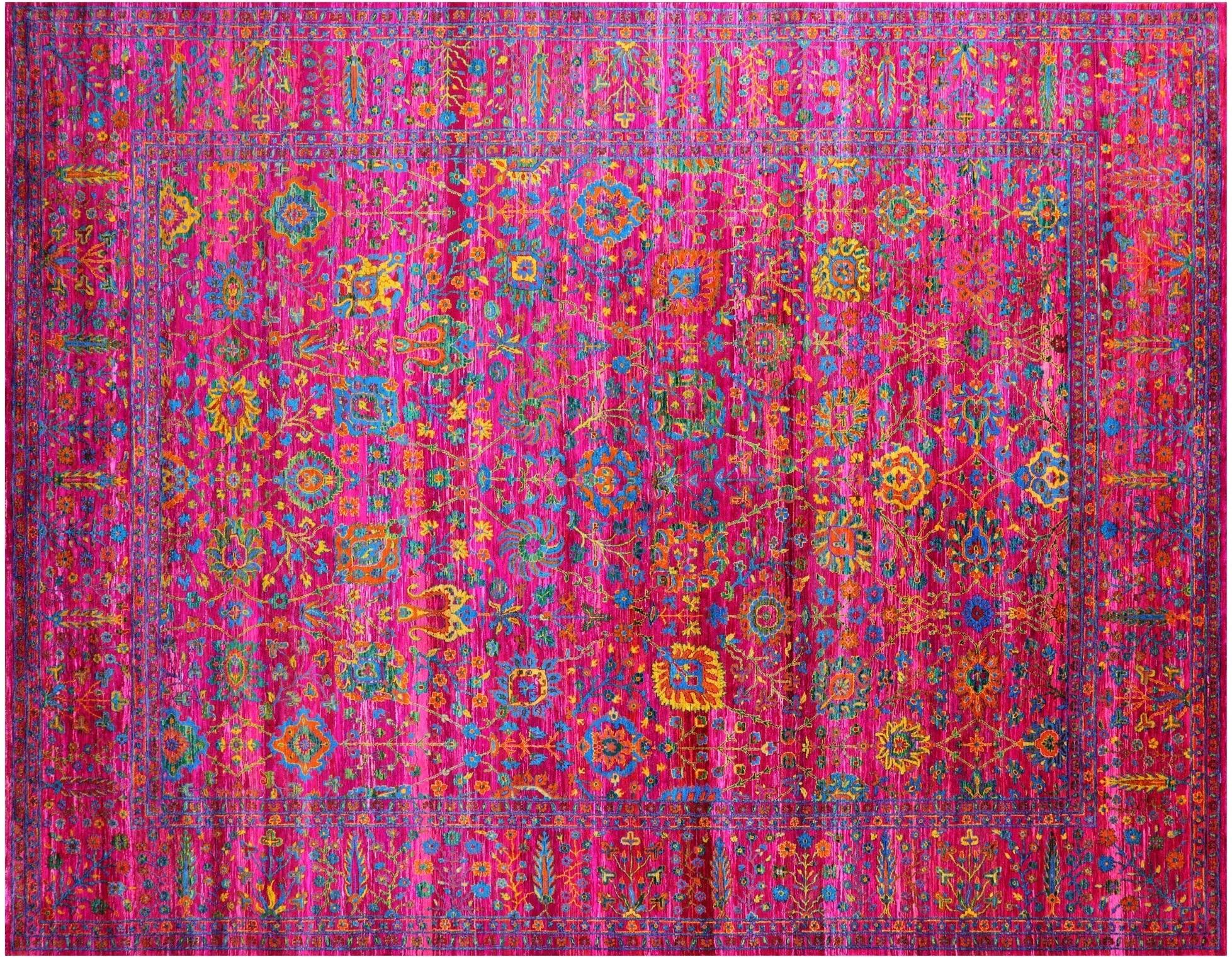 Pink 11' 11" X 15' 2" Handmade Persian Tabriz 100 % Silk Rug - Q22218