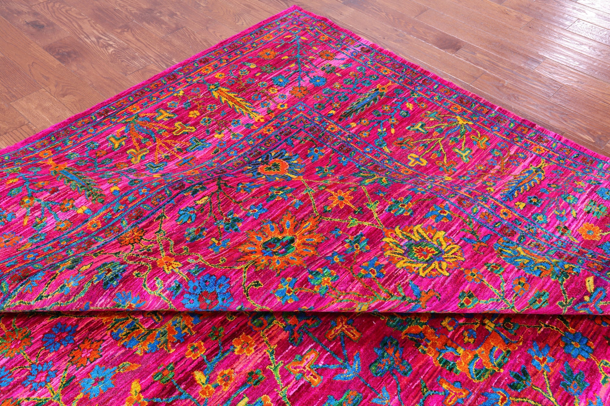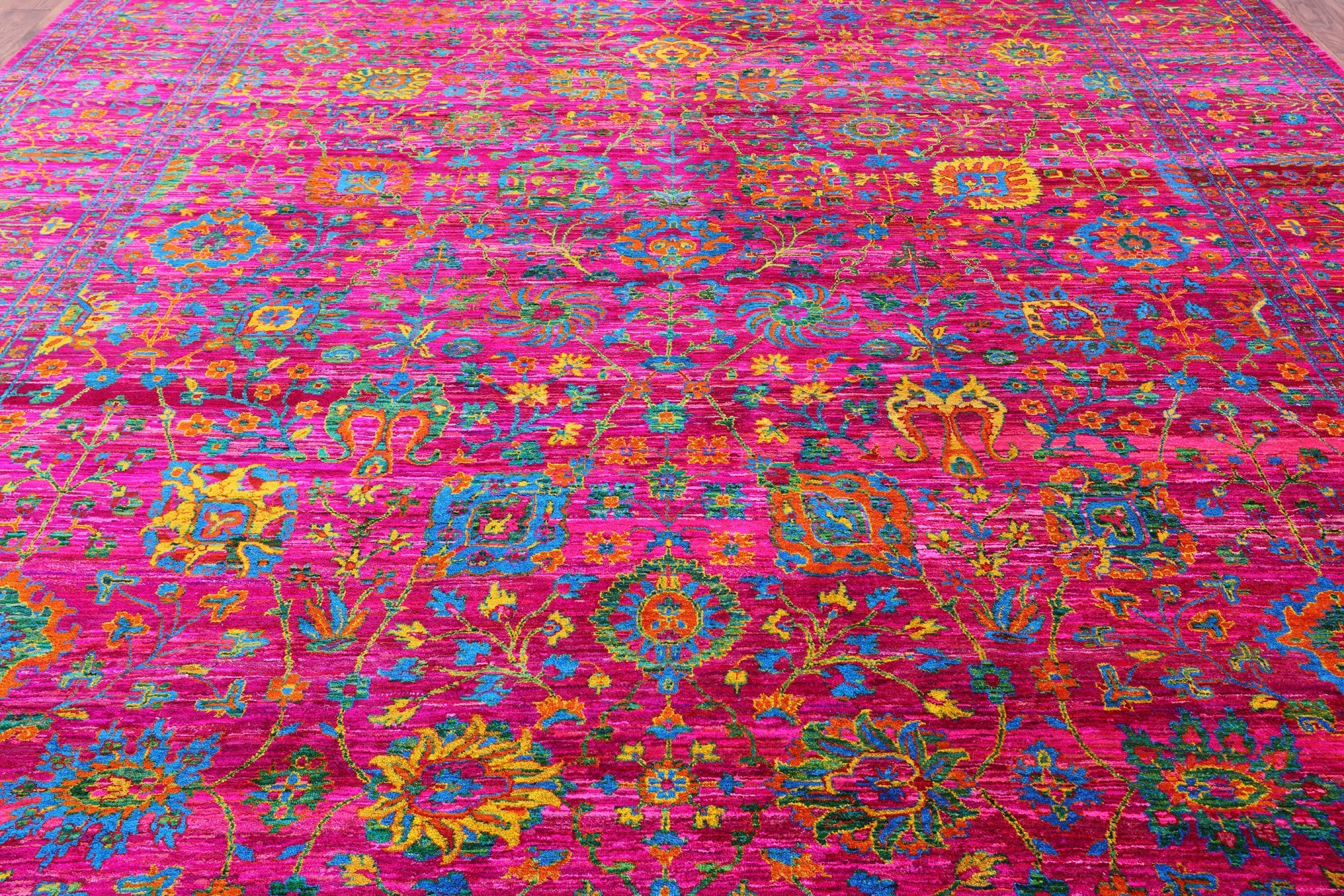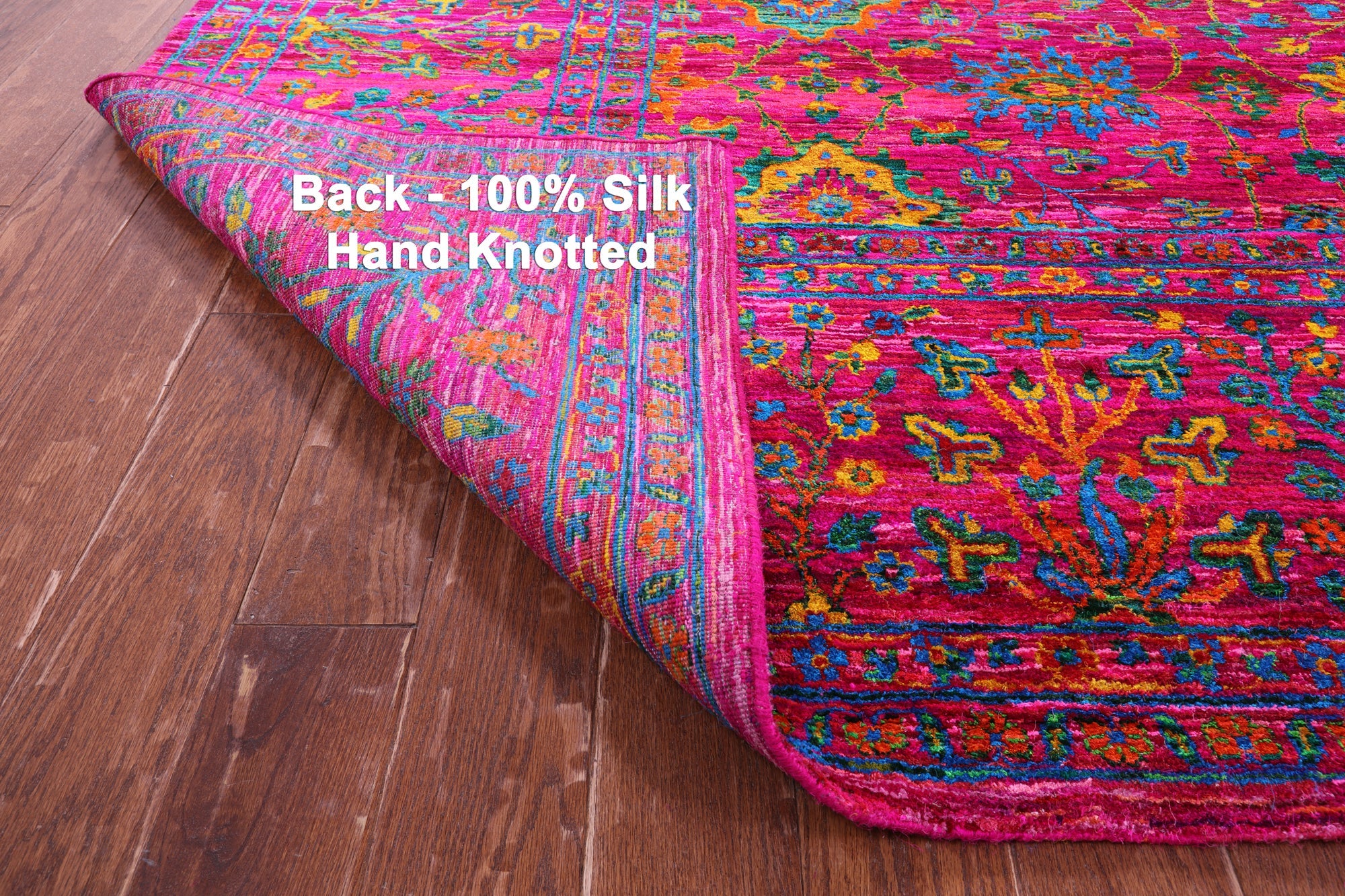 Pink 11' 11" X 15' 2" Handmade Persian Tabriz 100 % Silk Rug - Q22218
