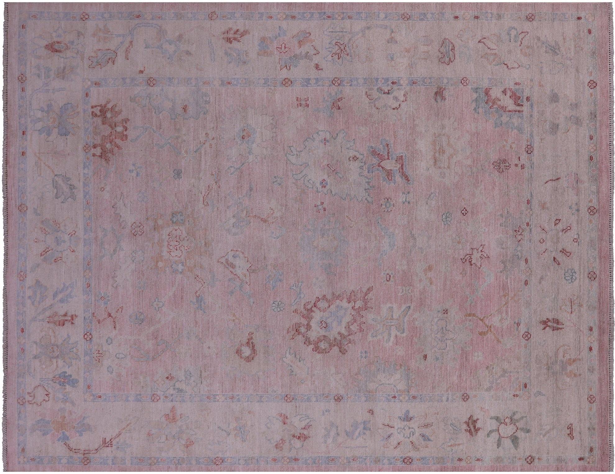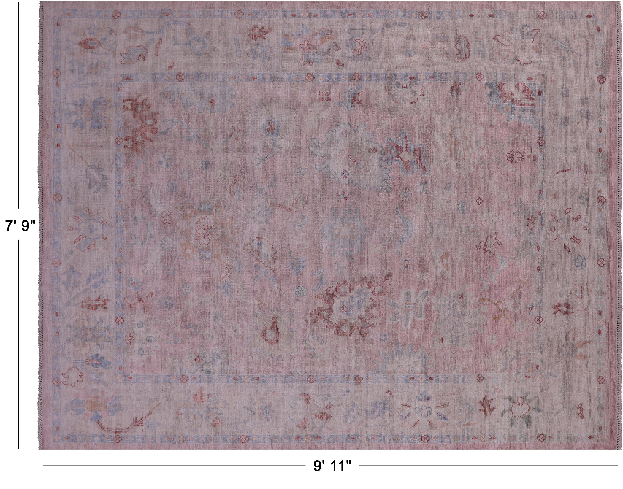 Pink 7' 9" X 9' 11" Handmade Turkish Oushak Wool Rug - Q18392