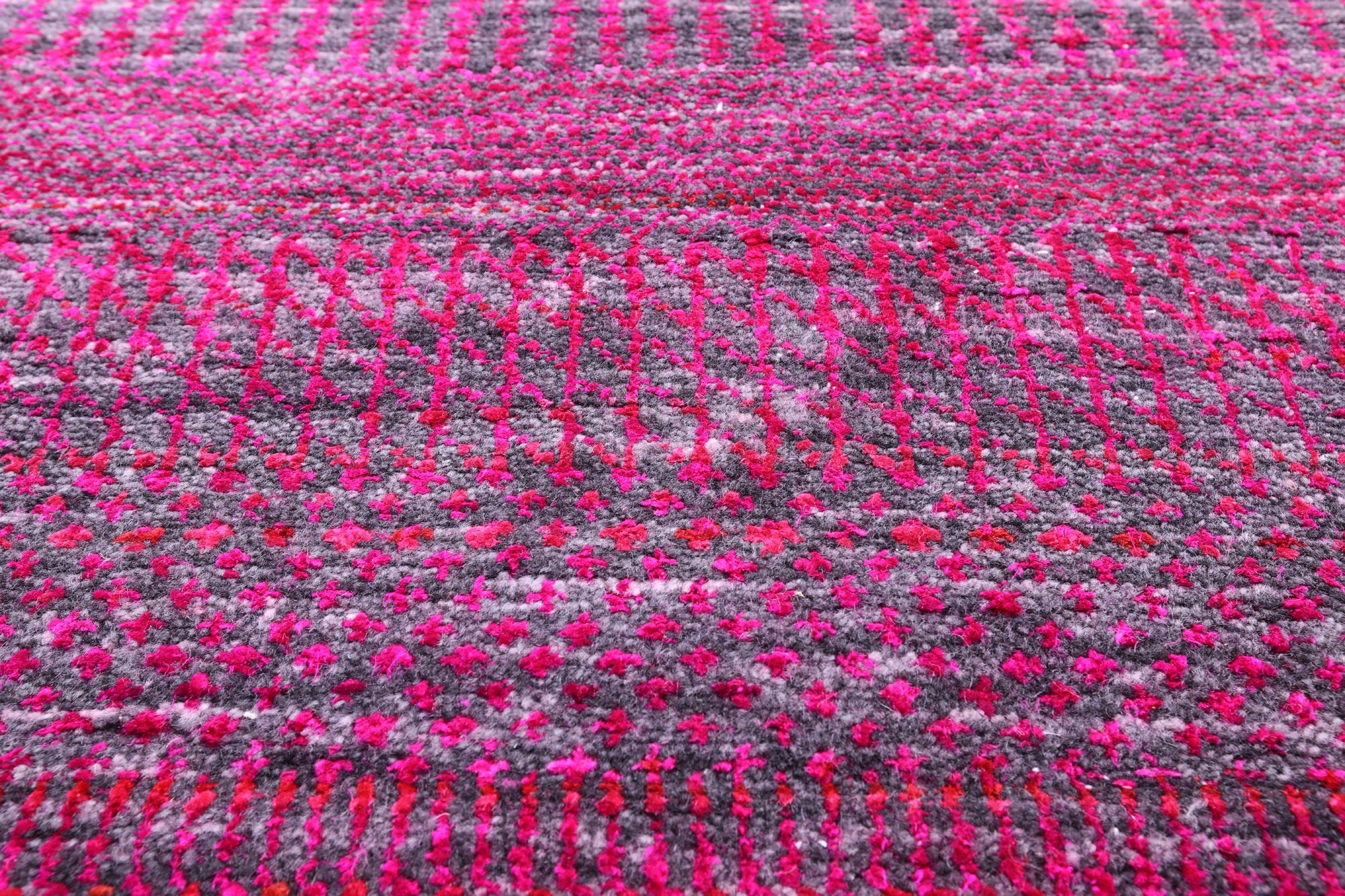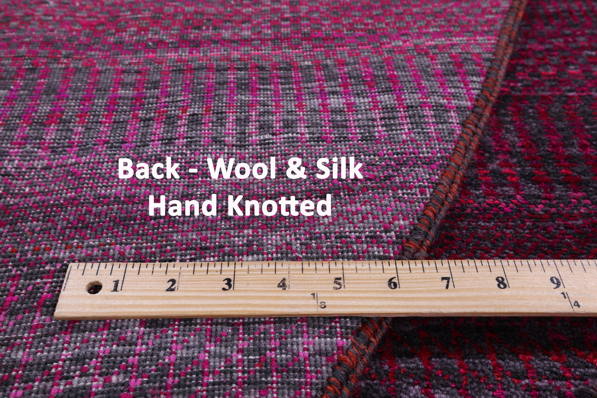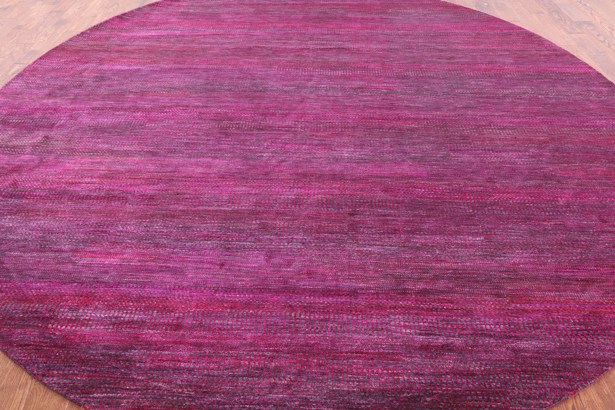 Pink 12' Round Wool & Silk Hand Knotted Super Savannah Gabbeh Rug - Q13054