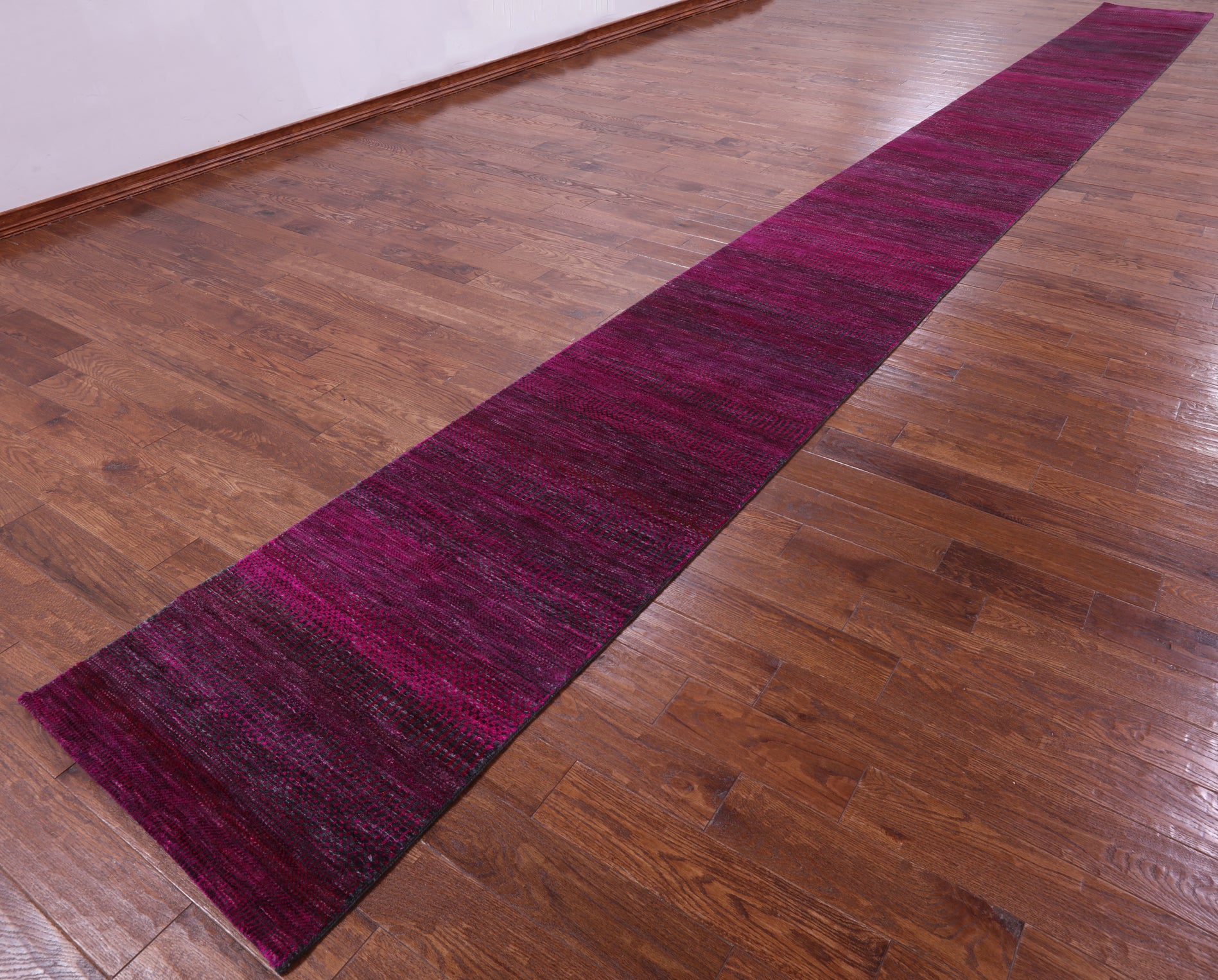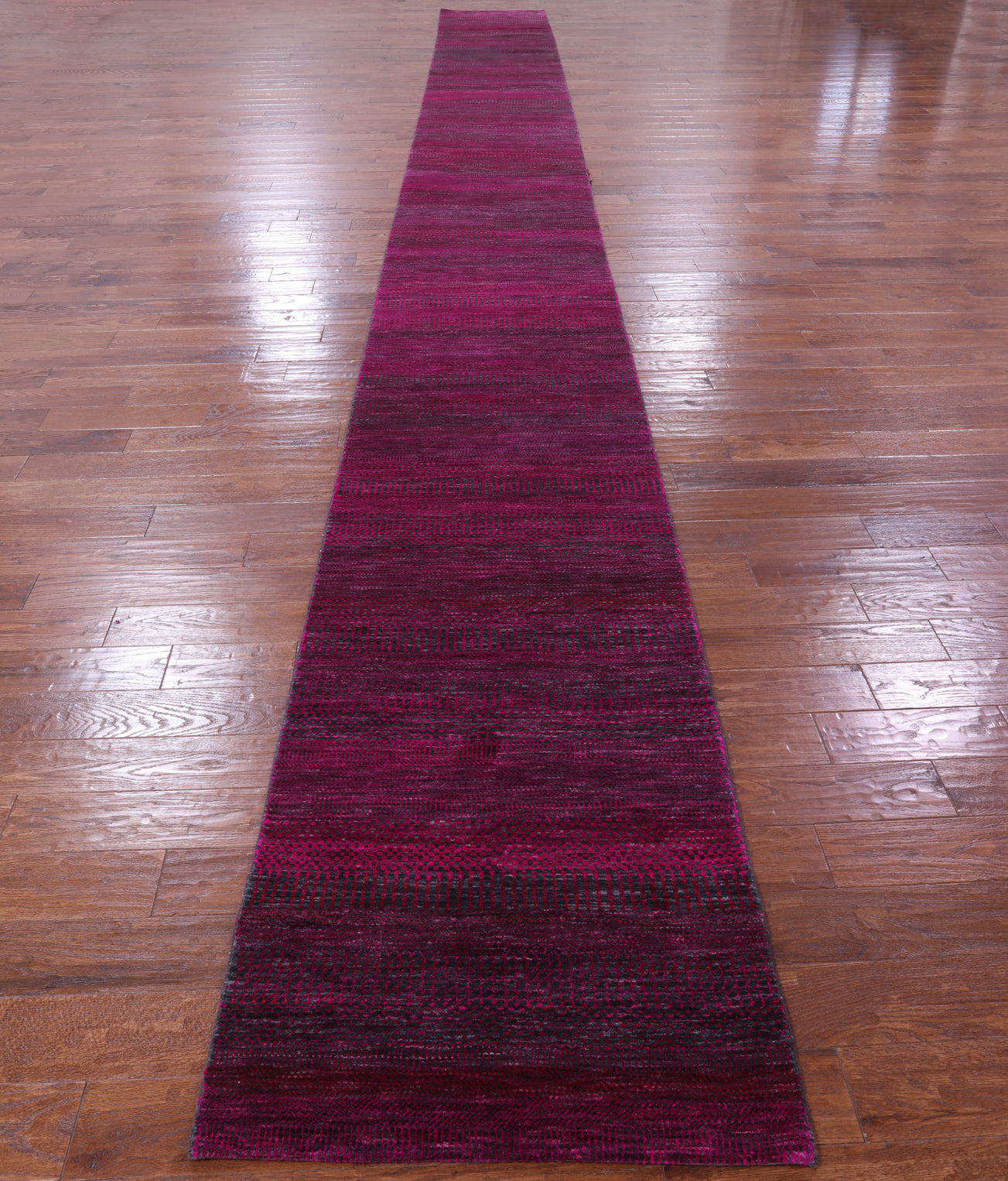 Pink 2' 7" X 27' 8" Runner Super Savannah Gabbeh Handmade Wool & Silk Rug - Q9010