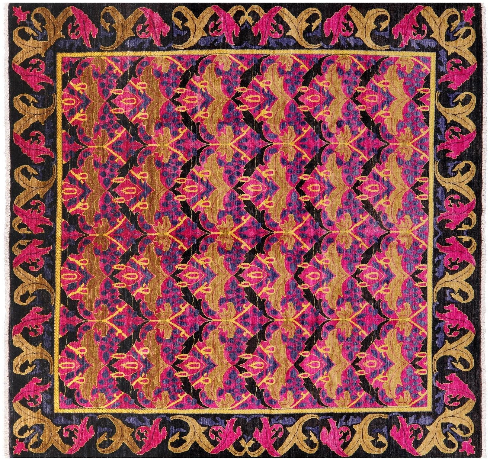 Pink 9' Square William Morris Hand Knotted Wool Rug - Q1698