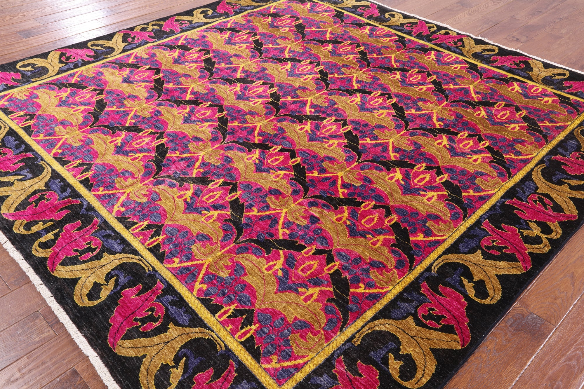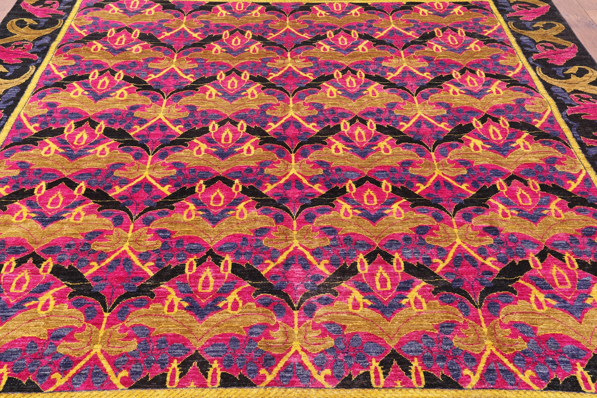 William Morris design are part of arts and crafts movement often including natural forms. These 19th and early 20th century designs are distinctive for their stylized natural forms, their symmetry and their vibrant colors. William Morris patterns are based on nature such thistles, ginkgo leaves, willow trees and flowers. These modern hand knotted rugs are woven with high quality wool, silk or both.